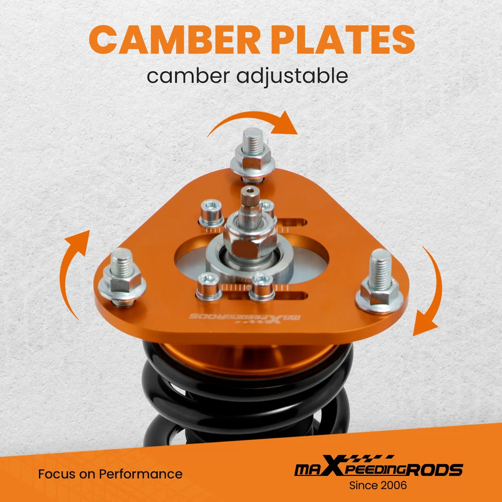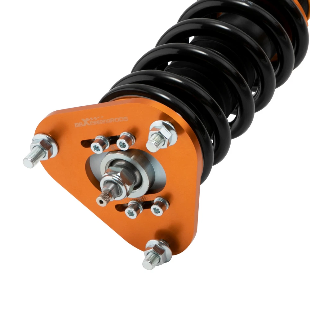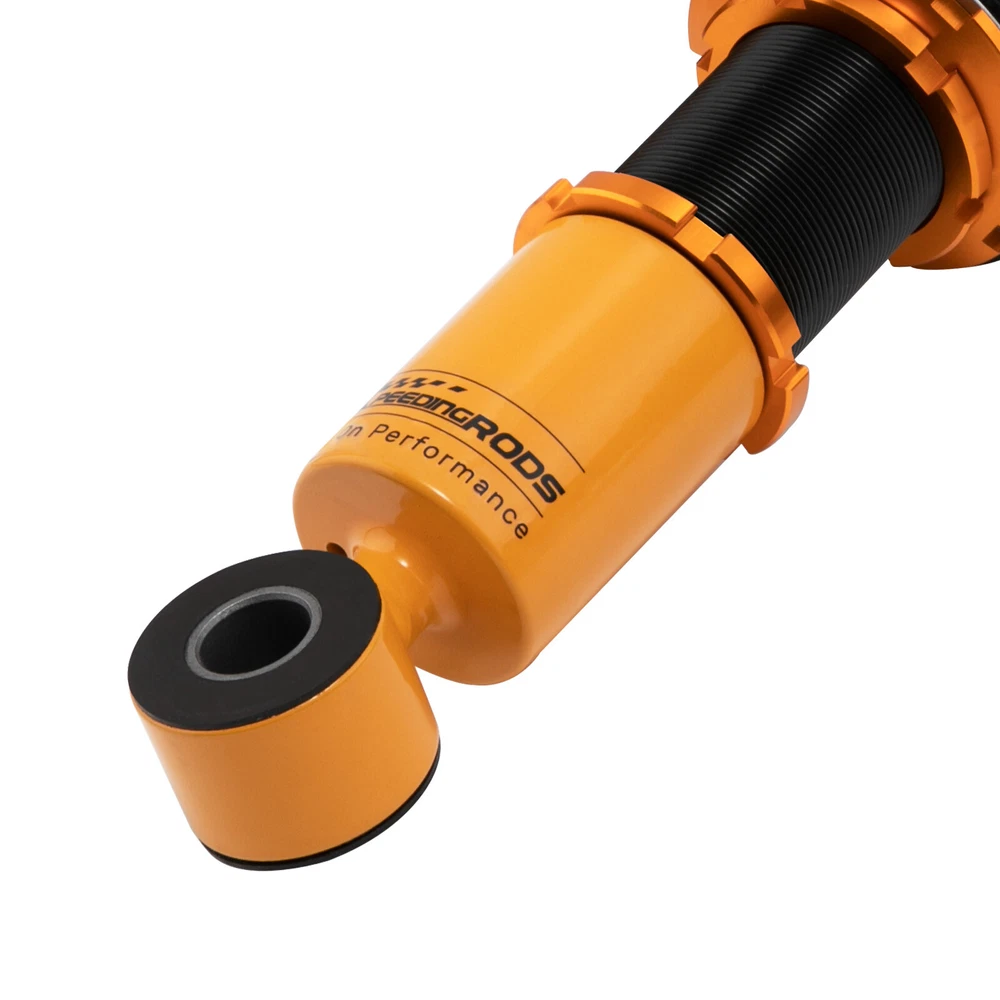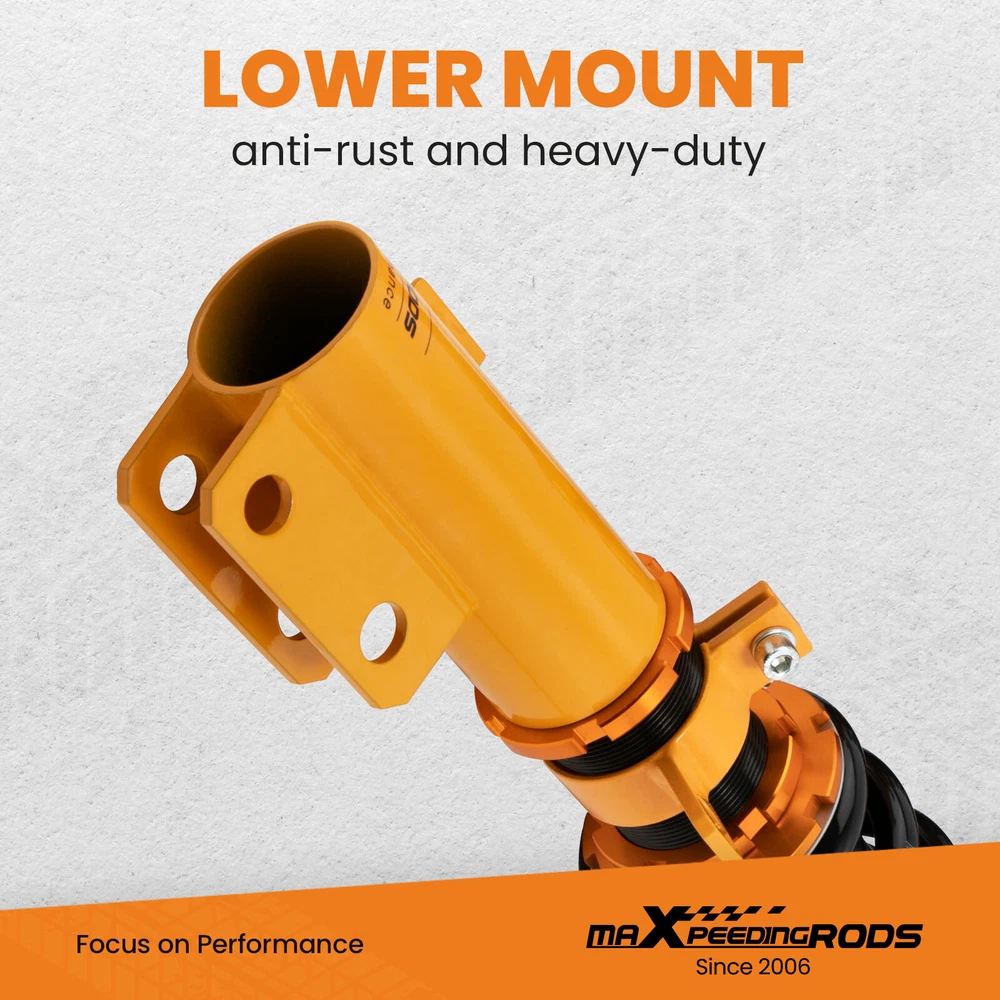 maXpeedingrods Canada Store Home About maXpeedingrods View Feedback Contact Us WHY CHOOSE US 24 Damping Levels Coilover For Toyota Corolla 9th Gen E130 _E12_ 2003-2008 Description Introduction MXR-SLC based on MXR-SNA coilovers, which is also height adjustable but adds damping adjustment ability by a knob the top of the shaft. They are also made for street use, but the 24 level rebound damping control allows you the ability to perfectly dial in your coilover setup. You will experience better ride quality in all road conditions. Application For Toyota Corolla 9th Gen. (E130) 2003-2008 USA For Toyota Corolla 9th Gen (_E12_) (01/2001-12/2007) other markets For Toyota Matrix XRS (E130) 2003-2008 Note: Please note this item does not fit for Corolla E150 "Ascent" model .Only fit Corolla Matrix E130 2003-2008 Specifications Top mount: Front camber plate; Rear rubber Damping: 24 levels rebound damping adjustable Front spring rate:12kg/mm (672 lbs/in) Rear spring rate:8 kg/mm (448 lbs/in) Adjustable height: Yes lowering 1" to 3" Spring Preload: 7-10 mm Shock type:Twin tube Color: Gold body with black spring Package included Complete coilovers assembly 2 front and 2 rear A pair wrench for height adjustment Dimension Package dimension : 62*52*22 Weight: 22500g Features 1. Quickly Install: Preload parameter is provided to save your 3-4 hours installation time. 2. Lowered height adjustment from 1" - 3" which allow lower center of gravity and also add a more aggressive stance. 3. A 24 rebound damping adjustment level allows you the ability to perfectly dial in your coilover setup. You will experience better ride quality in all road conditions. 4.Camber plate top mounts help to eliminate the need for a separate camber kit. 5.Twin-Tube structure allows sufficient stroke within the shock absorber. 6.Complete Suspension Kit of 4 Shock Absorbers & 4 Springs for an easy installation. 7.Separate height adjustment does not affect damper stroke and height can be adjusted with coilovers installed on the vehicle. 8.High Tensile performance spring - STRESS TESTED OVER 600,000 times while the spring distortion is less than 0.04%. Plus the special surface treatment improves the durability and performance. 9.Most pieces in our coilover systems, including mounts, collars and spring perches, are designed from 6061-T6 Billet Aluminum resulting in lightweight, durable and rust resistant components. 10.Steel shock bodies with special surface treatment to improve the durability. 11. Full rebuildable Notice * Professional installation & alignment suggested. * Please check our store for other auto parts you may be interested in. Other items you might also like Coilovers Coil Spring Shock Strusts For Mitsubishi Lancer (CX/CY) 2008-2016 24 Ways Adjustable Damper Coilovers For Lexus IS300 IS200 JCE10L GXE10 1999-2005 Street Coilovers Suspension For Nissan S13 Silvia 240SX 200SX 180SX 1989-1998 24 Damping Level Coilover For Honda Civic 4-door Sedan FA1 FA2 FA3 FA4 FA5 06-11 24 Ways Adjustable Damper Coilover For Honda Civic EJ EK EM 96-00 Acura Integra Pair Front Coilover Shock For Nissan S13 Silvia 180SX 200SX 240SX 1989-1994 Coilover Lowering Kit For Toyota Celica 2000-2006 GT GTS ZZT230 1.8 VVTL-i 190 Coilovers Kit Coil Spring Struts For Mitsubishi Lancer CX/CY 2008-2016 Outlancer 24 Ways Adjustable Damper Coilover For Toyota Corolla E140 E160 E170 2014-2019 2 Pcs Rear Active to Passive Shocks Conversion Kit for Cadillac SRX 2004 - 2009 Height Adjustable Coilover Lowering Kit For BMW 3 Series E90 E91 E92 E93 05-13 maXpeedingrods T6 Adjustable Damper Coilover For Jaguar XJ8 XJR X358 2007-2009 About MaXpeedingrods Shipping Policy Returns Policy