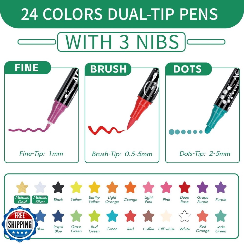 $ 10.5696-Color Dual Tip Brush Marker Set with Fine & Broad Tips for Art & Lettering