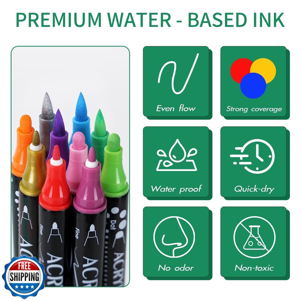 24 Colors Acrylic Paint Markers Pens, Permanent Dual Tip Acrylic Paint Pens Set(Fine+Round+Brush)Diverse Nib for Rock Painting, Fabric, Stone, Wood, Glass, Canvas, Ceramic, DIY Making Arts and Crafts Features 【Acrylic Paint Pen】IJIANG Each acrylic paint markers is great for personalized DIY projects on rocks, canvas, wood, ceramic, stone, plastic, eggs, scrapbook pages, and paper 【Acrylic Paint Marker】IJIANG Acrylic paint pens dual tip features vibrant colors, including fine tip (1mm) + brush tip (0.5-5mm) + round tip (2-5mm) 【Dual Tip Markers】IJIANG Acrylic markers requires no shaking or pressing - just uncap and start creating (Each acrylic paint pen features a numbered cap) 【Rock Painting Kit】IJIANG Whether you're outlining small areas or filling in large spaces, each acrylic paint offers excellent control and creative freedom 【Painting, Drawing & Art Supplies】IJIANG With smooth ink flow, excellent coverage, and a waterproof, quick-drying formula, our paint pens are perfect for creating long-lasting artwork. The non-toxic, odorless ink makes them safe for both kids and adults to use Shipping Free & Fast Shipping: We offer free shipping to most of the USA with a normal delivery time of 3-7 days. However, due to the current situation, additional delivery time (up to 3 weeks) may be required for some items. Alternative Carriers: We may use alternative carriers (e.g., USPS, FedEx, UPS) to ensure your package arrives safely and on time. Due to the use of multiple carriers, we are unable to provide a tracking number automatically. Handling Time: Orders are processed and shipped within 1-2 business days of receiving cleared payment. Shipping Restrictions: Shipping to Alaska, Hawaii, Puerto Rico, Guam, and other US territories may incur shipping charges or delivery restrictions. Please contact us before ordering, or your order can be refunded/cancelled. State Restrictions: Certain items may not be shipped to California due to state regulations. Contact for Tracking Updates: If you require tracking updates or have any concerns about the delivery of your order, please feel free to contact us, and we will be happy to assist you. Return Policy 30-Day Hassle-Free Returns: If you are not completely satisfied with your purchase, you can return the item for free within 30 days of receiving it for a full refund or exchange. Easy Return Process: Contact us, and we will provide you with a prepaid return shipping label and detailed instructions. No Restocking Fee: There are no restocking fees for returns. However, the buyer is responsible for return shipping costs if the return is not due to a seller"s error. Refund Processing: Refunds will be processed within 1 business day of receiving the returned item in its original condition. Feedback Your feedback is extremely important to us. We strive to provide the best products and customer service possible. If you are satisfied with your purchase, please take a moment to leave us a positive review. If you have any concerns or issues with your order, please contact us before leaving negative feedback. We are committed to resolving any problems and ensuring your satisfaction. Contact Us If you have any questions or concerns, please feel free to reach out to our customer support team. You can contact us through the eBay messaging system. We are available Monday to Friday, 9:00 am to 5:00 pm EST, and we will do our best to respond to your inquiry within 24 hours. Thank you for supporting our small family business!