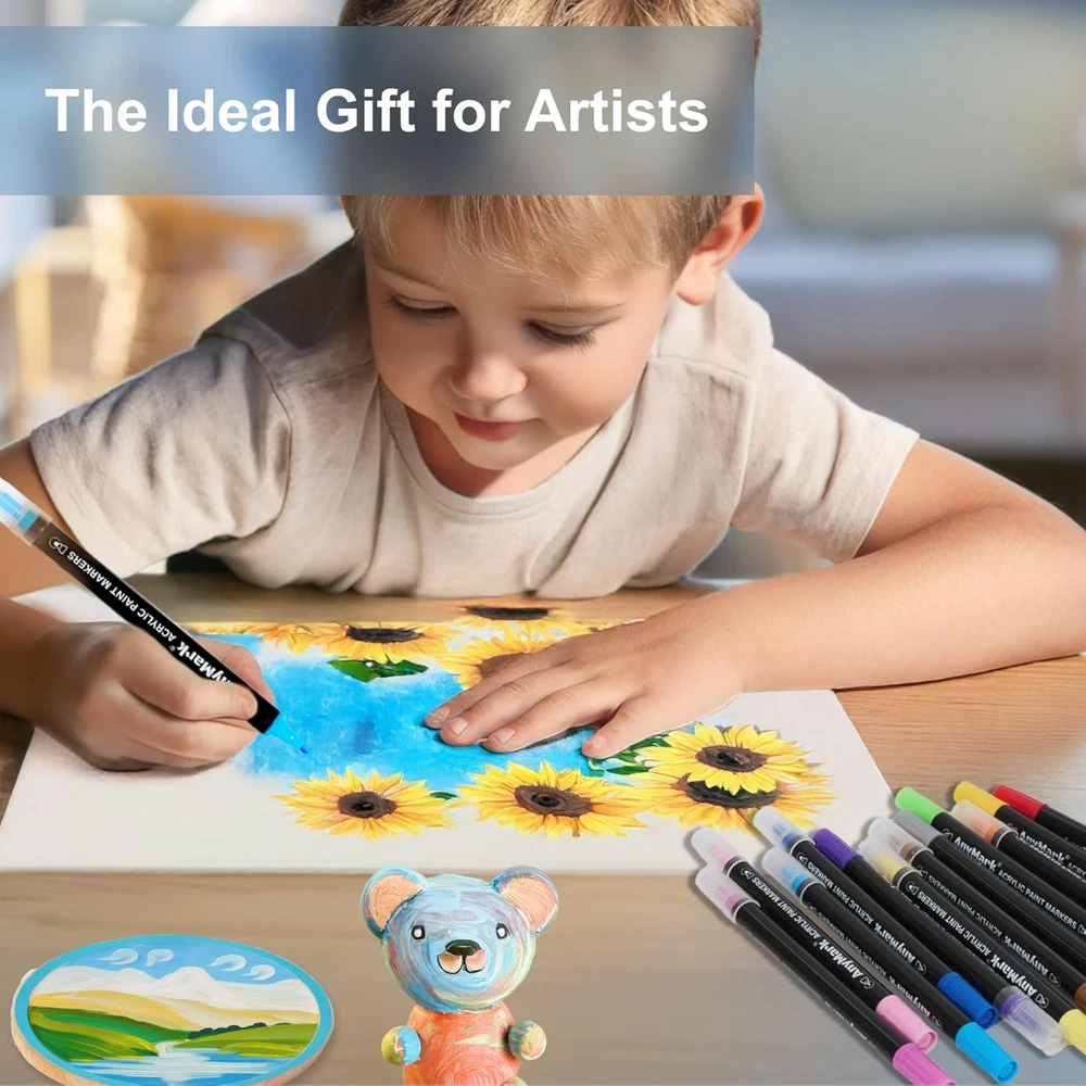 These acrylic paint markers are amazing! The dual tips make them super versatile—perfect for bold strokes or fine details. The colors are vibrant, and they work smoothly on so many surfaces like stone, wood, and glass. Great for crafts, calligraphy, or DIY projects. Highly recommend for artists of any level!