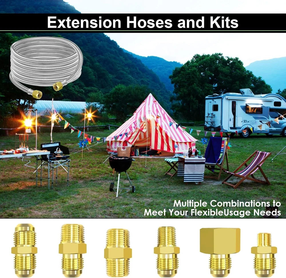 24 FT Extension-High Pressure Braided Gas Line Hose Propane Conversion Kit fo... 【MEFUN Upgraded 24 FT 350 PSI high-pressure Propane extension Hose】24ft stainless steel propane high pressure extension hose upgrade to come with powerful 6 different couplings adapter fitting: 3/8" NPT Male x 3/8" NPT Male, 1/2" Female NPT x 3/8" Flare Male, 3/8" NPT Male x 3/8" Flare Male, 3/8" Flare Male x 3/8" Flare Male, 1/4" NPT Male x 3/8" Flare Male, 1/8" NPT Male x 3/8" Flare Male, 【Premium Material】24ft 3/8" female flare fittings on both ends and 6 different types of adapters fittings kit of this 3/8" propane hose are made of 100% Solid Brass to ensure secure and durable for long-lasting to use. The 24ft 3/8” Female Flare propane hose is made of durable stainless steel braided with anti corrosion, anti-aging, air tightness, heat-resistance, flexibility features. This propane extension hose with CSA Certification, ensures air tightness and stability. 【Wide Compatibility】This 24FT 350 PSI high pressure propane extension hose has female 3/8" ends on both sides, connect an appliance equipped with a 3/8" male flare fitting. For extending the propane tank line on your LP appliance and fire pit table. Compatible with RV, gas grill, stove, propane heater, portable fire pit,griddle, propane generator, portable generator, propane smoker, burner and more. 【Standard Fittings】This 24FT 350 PSI high pressure propane extension hose with 6 different types of adapter adapters. Excellent 3/8" Propane Hose Conversion Adapter Kit for easy storage and portability, flexible use and space saving. This 12ft Braided Stainless Steel High Pressure Propane Extension Hose comes with a standard connector kit to take all your worries away. For RVs Best choice, travel trailer. 【Packaging】The kit includes: 1* 24FT 350 PSI High Pressure Propane extension Hose + 6* Brass Adapters+1* Wrench +1* Roll Sealing Tape + 1* Buckle Velcro. If you are not satisfied with the product after purchase, please contact us and we will provide a refund or replacement. Our Customer Service will solve your problems within 24 Hours. Shipping We offer FREE shipping on all orders! We ship within Three business days of payment, usually sooner. Local pickups and combined shipping options are not provided at this time. Return You can return a product for up to 30 days from the date you purchased it. Any product you return must be in the same condition you received it and in the original packaging. Please keep the receipt. Payment We accept payment by any of the following methods: PayPal Please pay as soon as possible after winning an auction, as that will allow us to post your item to you sooner! Feedback Customer satisfaction is very important to us. If you have any problem with your order, please contact us and we will do our best to make you satisfied. Contact Us If you have any queries, please contact us via ebay. We usually respond within 24 hours on weekdays. Please visit our eBay store to check out other items for sale! Thank you for shopping at our store.