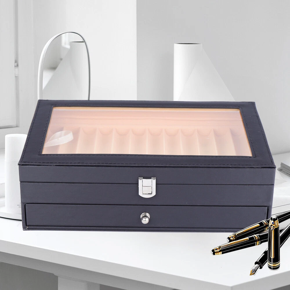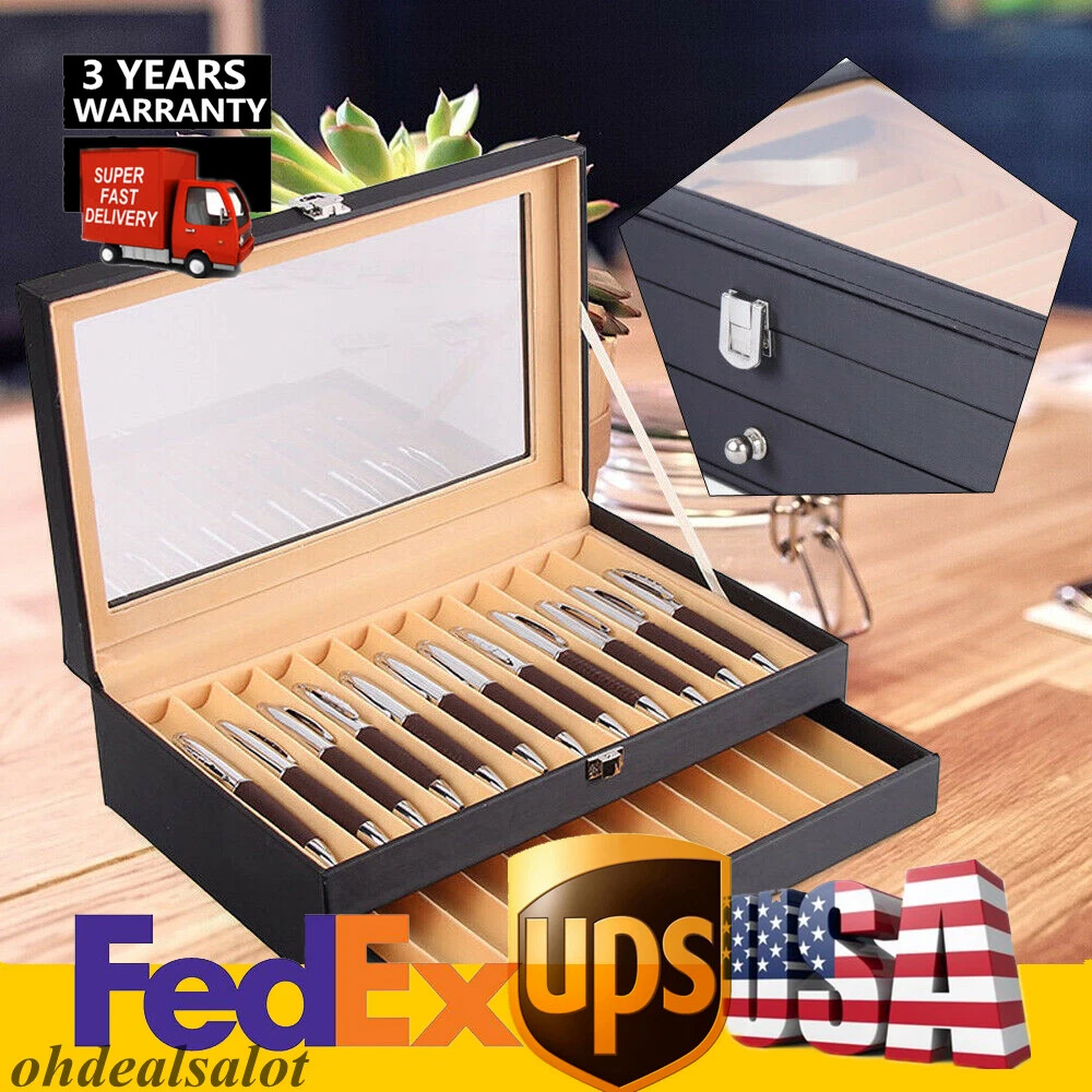24 Fountain Pen Leather Display Box Holder Organizer Storage Collector Case NEW
