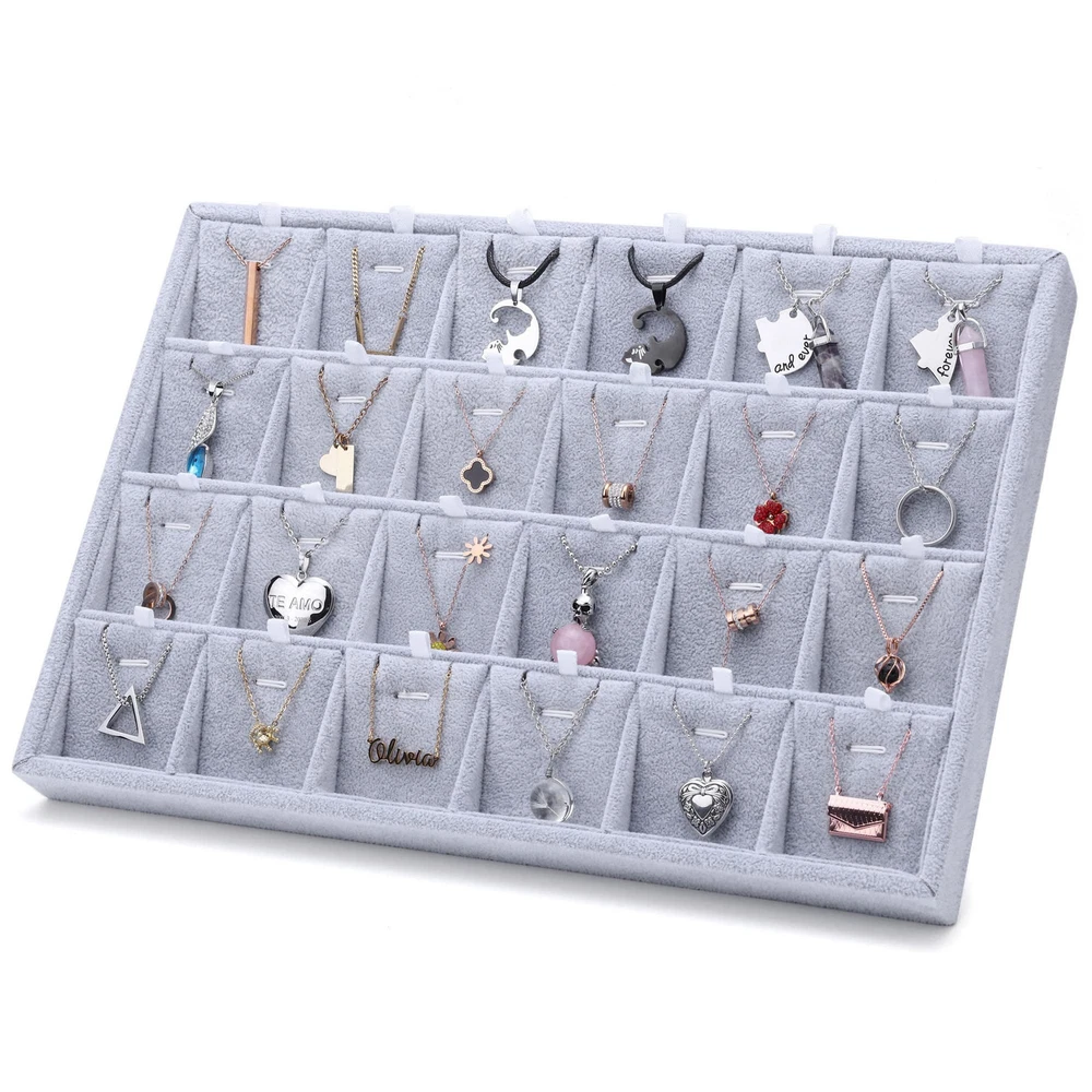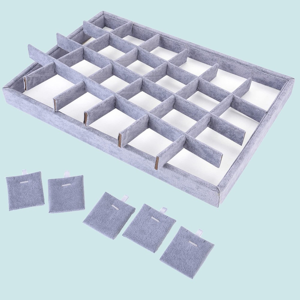 24 Grids Stackable Jewelry Tray Organizer with Removable Dividers, Velvet Jew...
