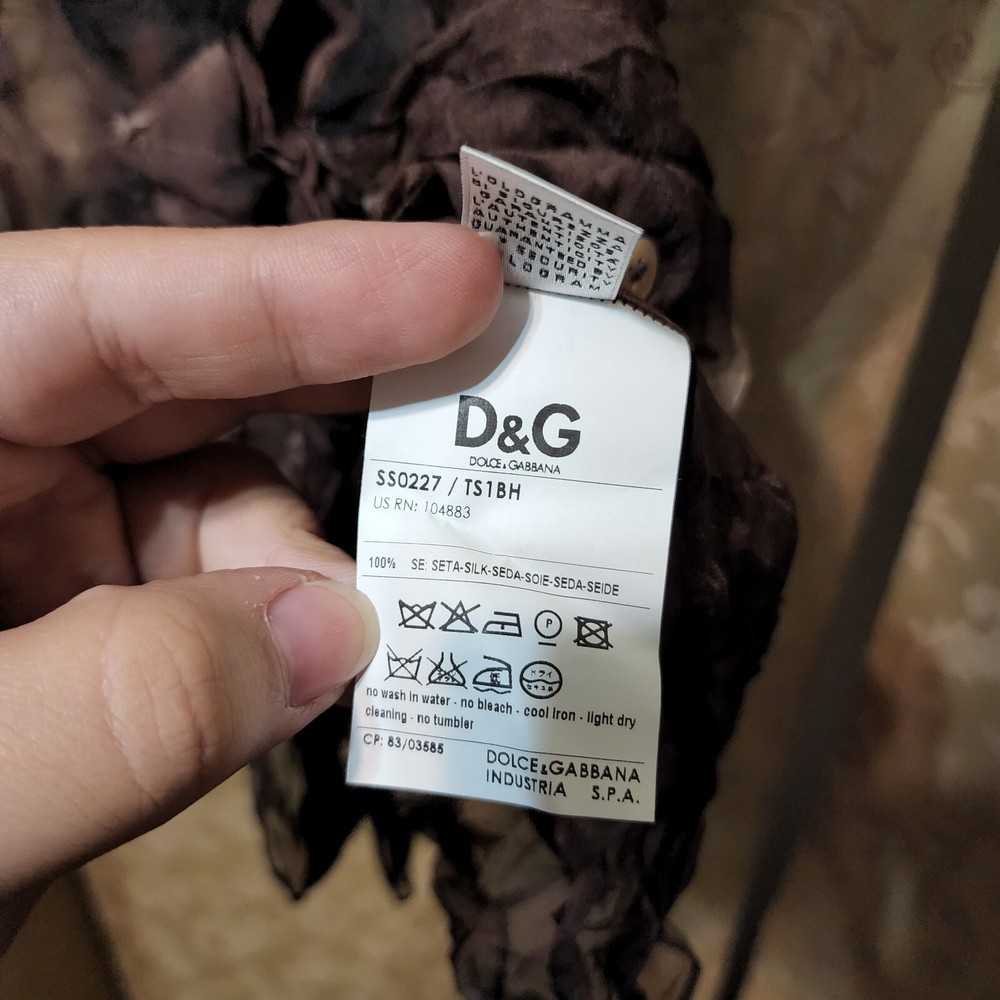 D&G Top Size: 40 PLEASE MAKE SURE YOU GO THROUGH ALL THE PICTURES TO VERIFY ITEM SIZE AND FABRIC CONTENT (IF AVAILABLE). WITH ALL THE LISTINGS I MAKE, SOMETIMES I MAY MAKE A MISTAKE IN TYPING IN THE SIZE. ALSO, PLEASE NOTE THAT TAG SIZE MAY NOT BE TRUE TO SIZE ON ALL ITEMS. SOME ITEMS MAY RUN LARGER OR SMALLER SO ALWAYS REFER TO MEASUREMENTS BELOW. COLORS MAY VARY DEPENDING ON MONITOR/CAMERA SETTINGS. Approximate Measurements (taken in inches with item laid flat) Bust: 15 1/2 Pre-Owned, some edges are raw and prone to fraying, but otherwise in good condition! Most of the information you may need is in the pictures (material, washing instructions, size, etc.) General Information: Please read carefully PLEASE MAKE SURE YOU GO THROUGH ALL THE PICTURES TO VERIFY ITEM SIZE AND FABRIC CONTENT (IF AVAILABLE). WITH ALL THE LISTINGS I MAKE, SOMETIMES I MAY MAKE A MISTAKE IN TYPING IN THE SIZE. I try my best to describe each item. I thoroughly check each piece for stains, tears, or any defects but do keep in mind these are pre-owned pieces and may have some gentle wear/imperfections. I always check each piece one more time before shipping it off. If I notice a major flaw I will send you a message, refund your money, and send a request to cancel the transaction. I want you to be happy with your purchase, and I try my best to inspect each item really well, but I'm only human and may miss something. Most of my items are pre-owned, so I do not know the history of the item. They have *NOT* been professionally cleaned and may come accompanied with some smells/scents (perfume, laundry detergent scents, musty due to storage, etc). This applies to NWT/NWOT items as well as they are stored together with pre-owned items. If you have a very sensitive sense of smell or allergies, please be aware before bidding/buying, and if this is going to be an issue I?d kindly ask you not to bid/buy from me. Please also note that due to the volume of clothing, I do not always wash clothing prior to shipping. Some items may be wrinkled. It is the buyer's responsibility to wash items prior to wearing. In order to keep shipping costs as low as possible, items may be crammed into the bubble/poly mailer so please be careful when opening your item. I cannot be accountable for damages made to the item after it has been received. Your item will probably need to be ironed/pressed. If this is going to be an issue, please send me a message saying you want your item to be shipped in a bigger envelope or box and I will send you a special shipping quote. If you need your item by a certain date, please ASK BEFORE BUYING so that you can make sure I can accommodate your request. I don?t ship on weekends. If you need specific measurements, please try to ask as soon as possible. I have lots of items so it may take a while to find the piece you're asking about. Measurements are approximates and taken as best as my measuring tape allows. If you have doubts or need me to measure something a particular way, please contact me and I will try to accommodate your request to the best of my ability. Payment is expected within 3 days. If you need more time, please contact me so I know and there should be no problem. Buyer is responsible or any/all shipping charges associated with the transaction, and I cannot be held accountable for items lost in shipping. If there is an issue, please contact me *before* leaving negative feedback. I?m sure we can work things out :) All sales are final -- no refunds, no returns so please ask questions before placing a bid. I am not liable for ill fitting, shopper's remorse, item not meeting your expectations, etc. I am human and do try to list many details and apologize if I overlook something. Please use the zoom function to help you make your choice. Any problems you may encounter MUST be communicated to me within 24 hours of item's receipt. NO EXCEPTIONS!! I may ask for an e-mailed photo of possible discrepancy/problem to document the issue in question. If the item is accepted for return, buyer is responsible for the return shipping fee and a refund minus original shipping charge will be issued. **INTERNATIONAL BUYERS** You should be able to calculate shipping costs for each listing. Import duties, taxes and charges are not included in the item price or shipping charges. These charges are the buyer's responsibility. Please check with your country's customs office to determine what these additional costs will be prior to bidding. Also please note that packages shipped First Class International can take up to a month for delivery depending on your countries customs. On average most customers receive packages within two weeks. If there is anything I need to know in order to have your item reach you sooner (e.g. attach packing slip to outside of package) please let me know and I will try to accommodate your request.