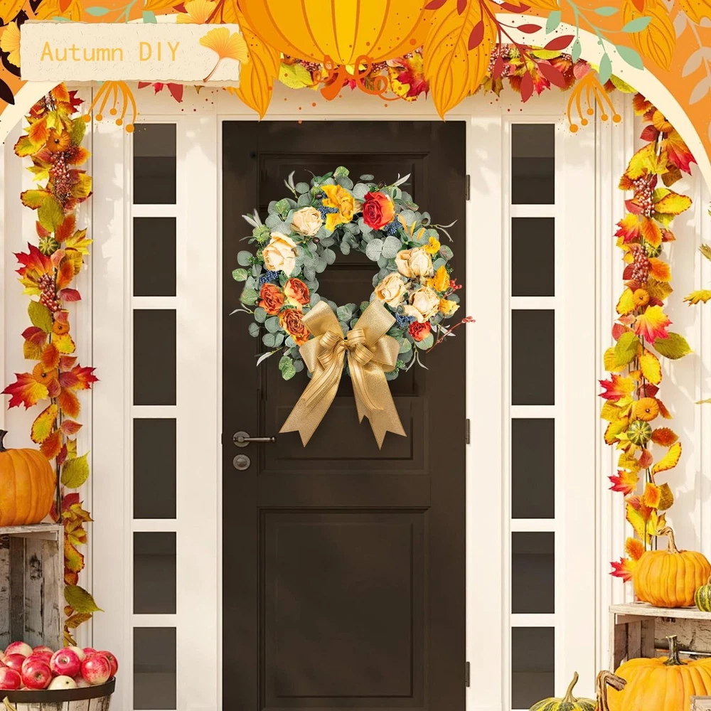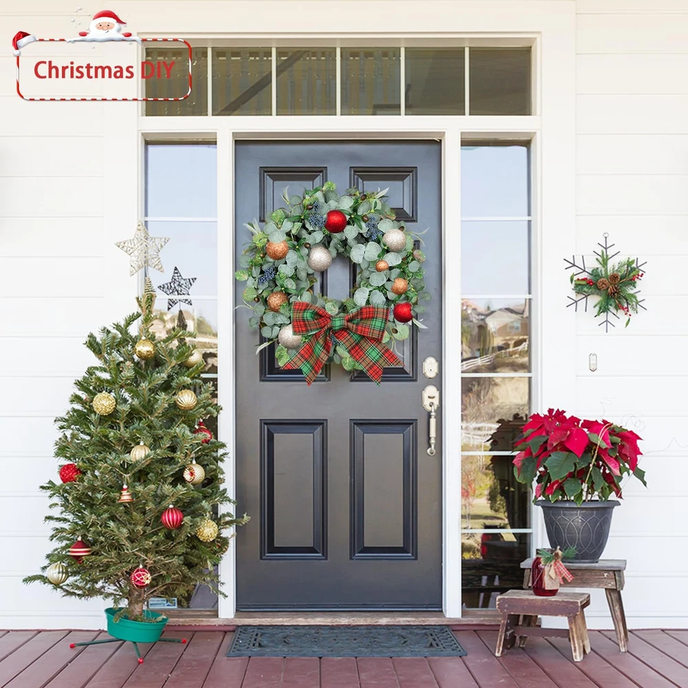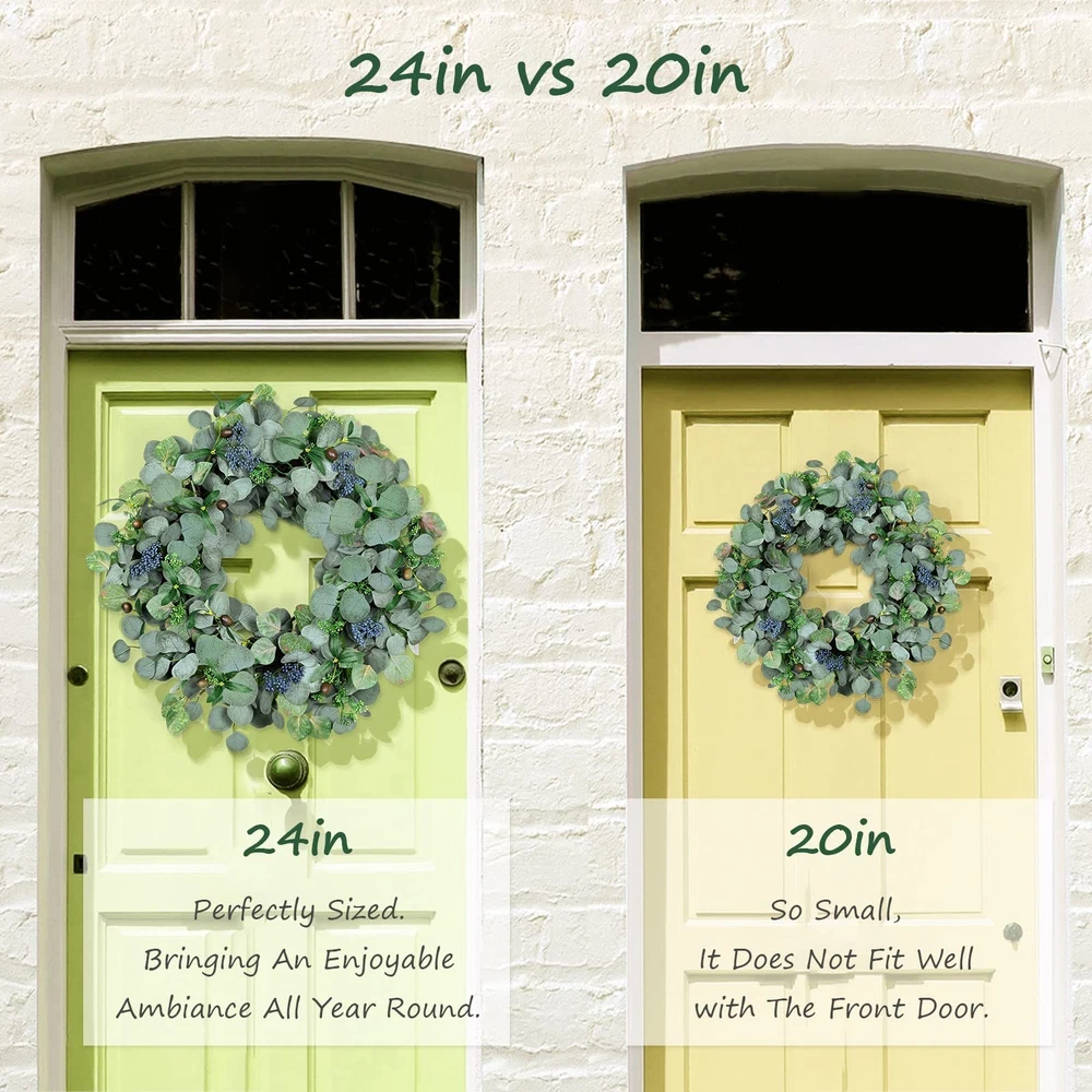 Eucalyptus Wreath for Front Door, 24 Inch Eucalyptus Wreath with Olive Leaves and Berries All Year Round, Handmade Green Spring Summer Wreaths for Front Door Indoor Outdoor Wedding Holiday for all seasons 【Large Size】 Fully expanded eucalyptus wreath, the inner diameter is about 30cm/12 in, the outer diameter is about 61cm/24 inches. To prevent damage to the 24 inch eucalyptus wreath during shipping, the summer wreath is tightened. Please follow our instructions to fluff the leaves before hanging it. If you want to it temporarily, the leaves can be easily tightened so you can fit it into a smaller space. 【Lifelike】 This Eucalyptus wreaths for front door is made of more than 3 types of eucalyptus leaves with different colors, and some olive leaves, and it is additionally dotted with blue/white berries, which makes it look more vibrant and natural. Front door wreaths for all seasons keeps blooming and could be used for a long time. 【Beautiful All Year Round】 The eucalyptus leaves are silk so they never fall, the berries are foam so they never rot. No maintenance, no management required. Eucalyptus year round wreaths for front door looks full and fresh every day. 【Add Something You Like】 Vine Branch instead of plastic, which is convenient for you to snap other decoration to the eucalyptus wreath. You can add maple leaves and pumpkins to eucalyptus wreath in autumn, and you can add bells and stars at Christmas. You will find that your wreath is most unique when you design it yourself. 【Application】 Year round wreaths for front door to welcome guests, hang it above your fireplace, or on a living room wall to brighten up your home. This 24inch summer wreath is also suitable as wedding wreath, welcome wreath, spring wreaths, eucalyptus Wreath for sitting room, wedding scene, wedding car, photography background etc. It also makes a great gift for weddings, housewarming, Mother's Day,birthday and other holidays. 【Our 】 We are a company with years of professional experience in designing, developing and manufacturing indoor and outdoor decorative artificial plants with the best quality. Because the 24 inch eucalyptus wreath is handmade, the size will vary slightly. If there are any problems with our products, please 【】 at the first time, we will definitely give a perfect answer.