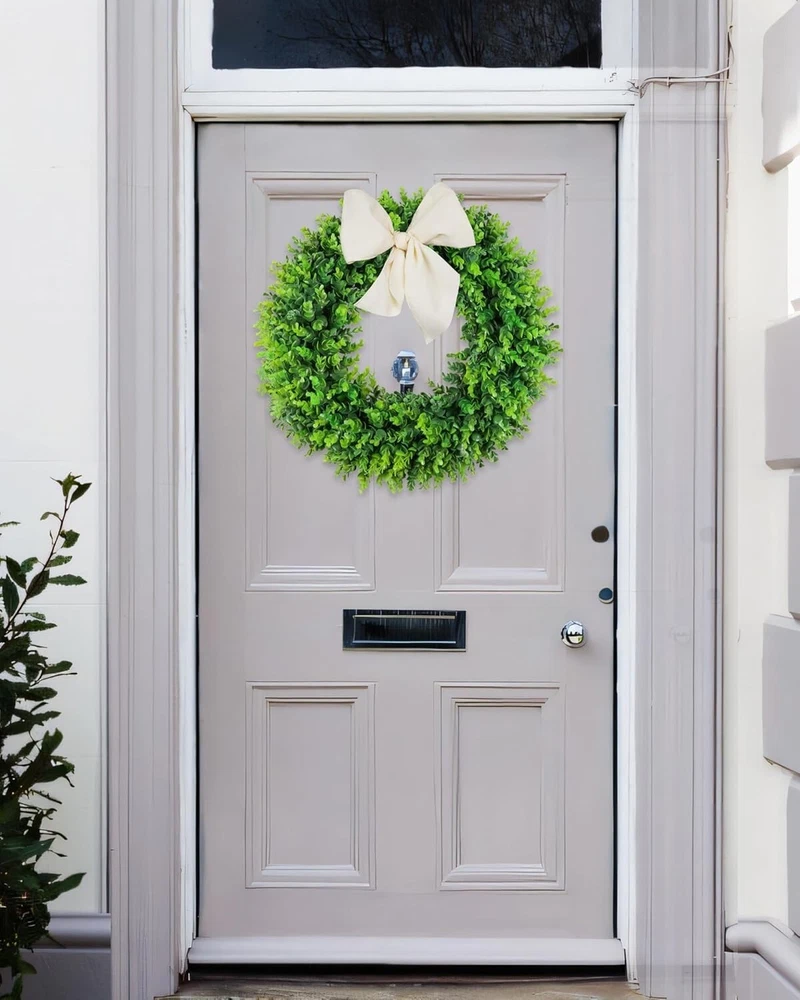 24 Inch Large Boxwood Spring Wreath for Front Door - Artificial Greenery Decor