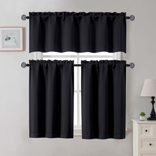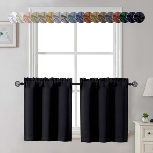 24 Inch Long Tier Curtains for Small Window, 30"W x 24"L (Pack of 2) Black