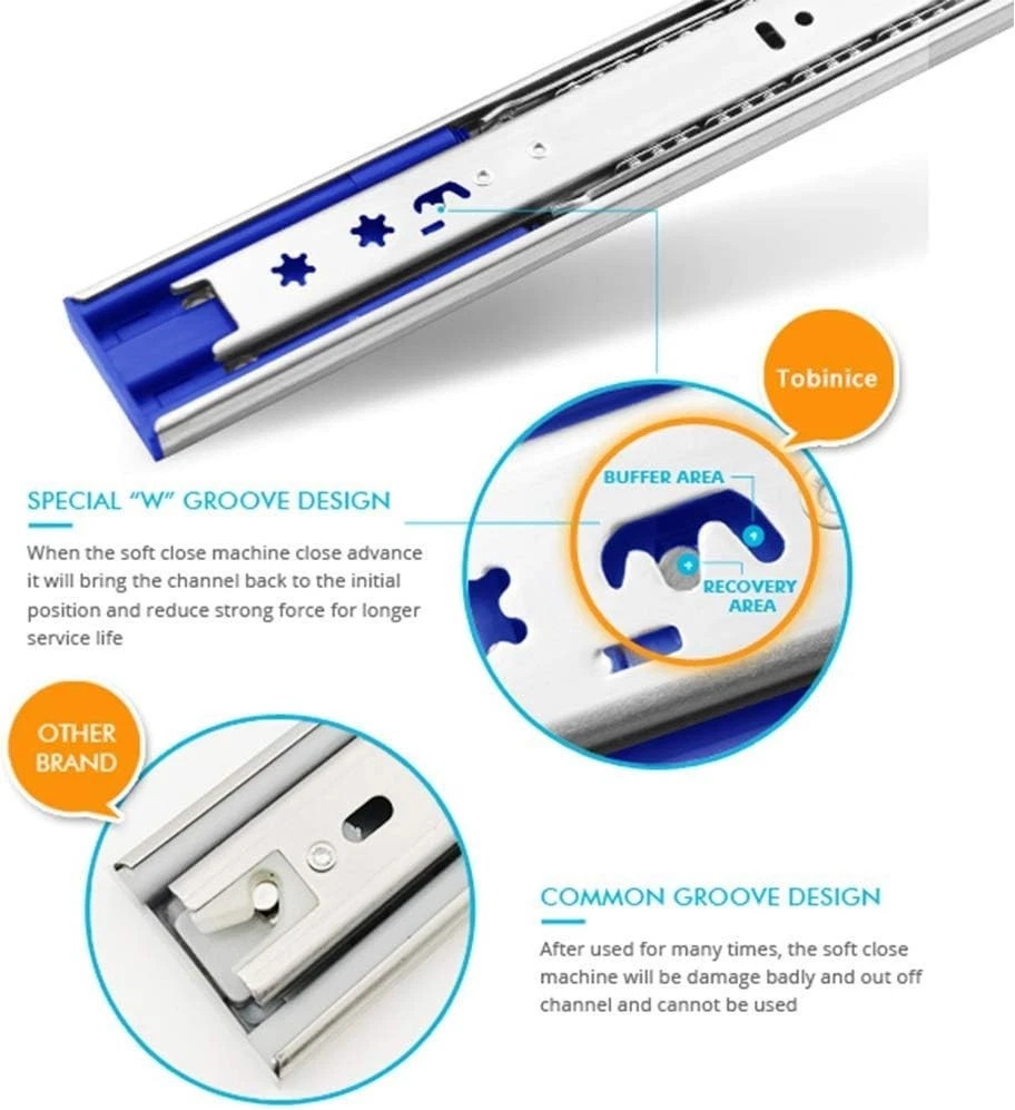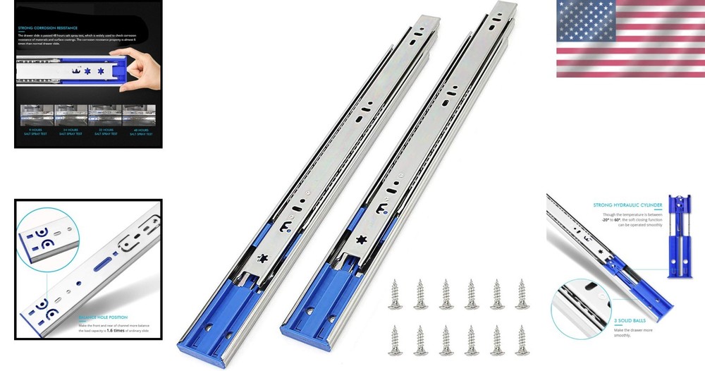 24 Inch Soft Close Full Extension Drawer Slides Steel Zinc Plated 100LB Capacity