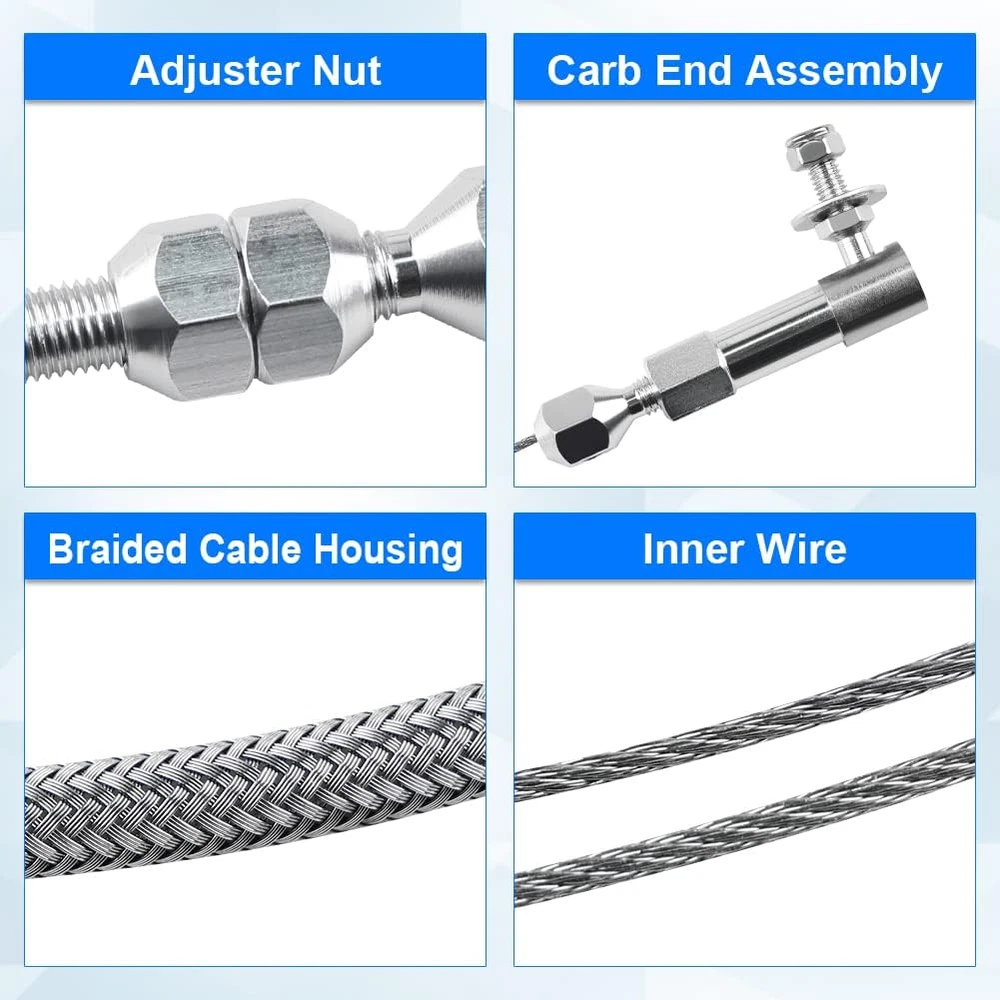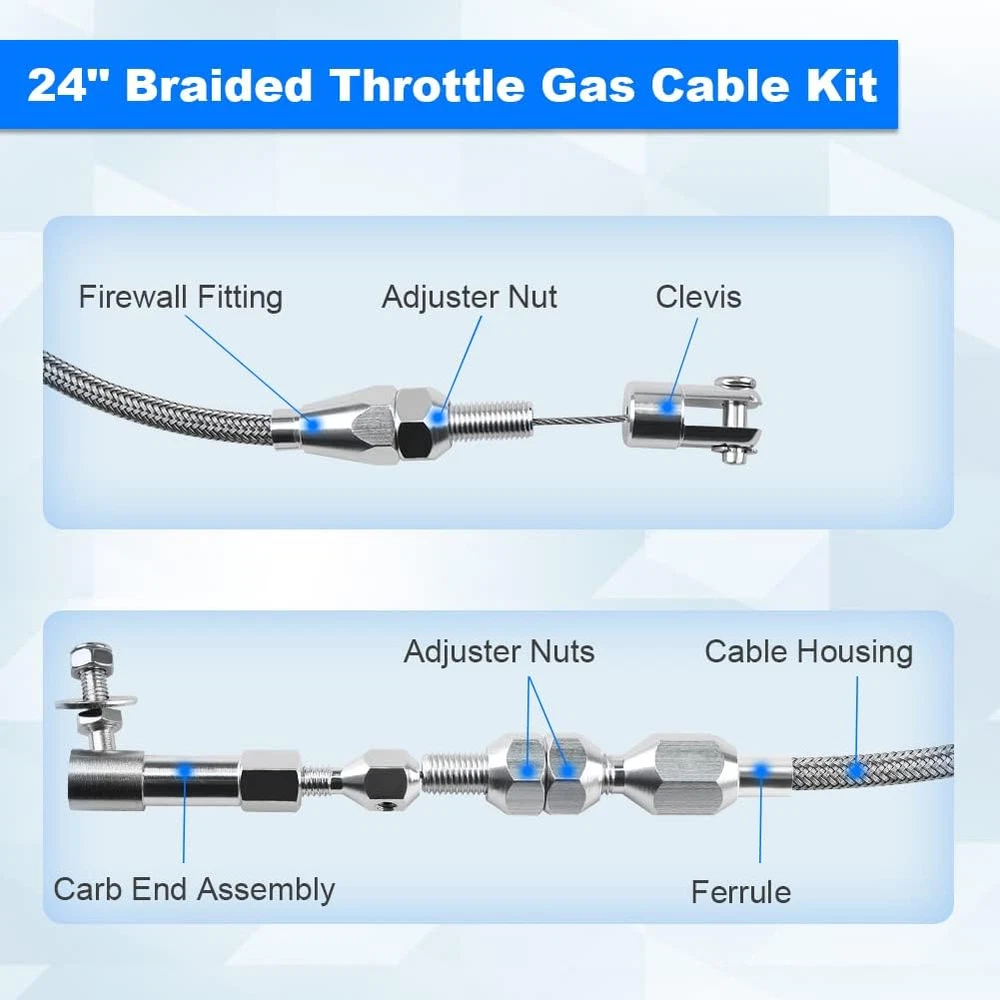 Store New Arrivals Add to Favorite View Feedback Contact 24 Inch Universal Throttle Cable Kit with Aluminum Fittings Ferrules, Adjustable Stainless Steel Braided Swap Fuel Line with U-Cut-To-Fit Inner Wire Description Item model number BE033 Country of Origin China Manufacturer Part Number BE033 Item Weight 9.9 ounces Exterior Brushed Model -BE033 Package Dimensions 4.84 x 4.69 x 1.46 inches Precise design: WMPHE 24" Throttle Cable Kit uses a special extruded liner that is precisely trimmed to your desired length Reliable materials: the 24" Braided Throttle Gas Cable Kit is more durable and has a longer service life with strict technology and reliable stainless steel materials. Equipped with aluminum fittings and aluminum ferrules With U-shaped inner thread: 24 "braided throttling gas cable kit design without cotter pin or set screw, with U-cut to F-shaped stainless steel inner conductor Braided protective layer: smooth and unrestrained braided tubular protective layer can provide better protection for internal cables. Stable operation and long service life Easy to use: The smooth, non binding cable operation can be easily cut, and can provide a wider range of applications Product Description Premium Aluminum Material Easily Adjustable Premium Braided Cable Housing Easy to Remove and Install ABOUT US We offer the best prices around on high quality products. Our E-store includes media such as books, movies, music and games while offering electronics, toys, sporting apparel, clothing, tools, general home, garden items and more. SHIPPING We are always working hard to ensure your package arrives as soon as possible. Please understand that some factors like weather, high postal traffic, and the performance of shipping companies are outside of our control. We offer free shipping to the lower 48 states and ship within 2 business days of payment, usually sooner. We do not accept P.O. Boxes. Please provide a physical address. RETURNS We offer a 30-Day Return Policy on items which you are not completely satisfied with. You have the option for a full-refund or an exchange of the item. No returns are available on items shipped outside of the USA. PAYMENT We accept PayPal. CONTACT US This page content is yet to come Please ad us to your favorite seller and visit again later Thank You CUSTOMER SATISFACTION We try our very best to make sure every customer is completely satisfied. If there's a problem, message us! We're happy to help.