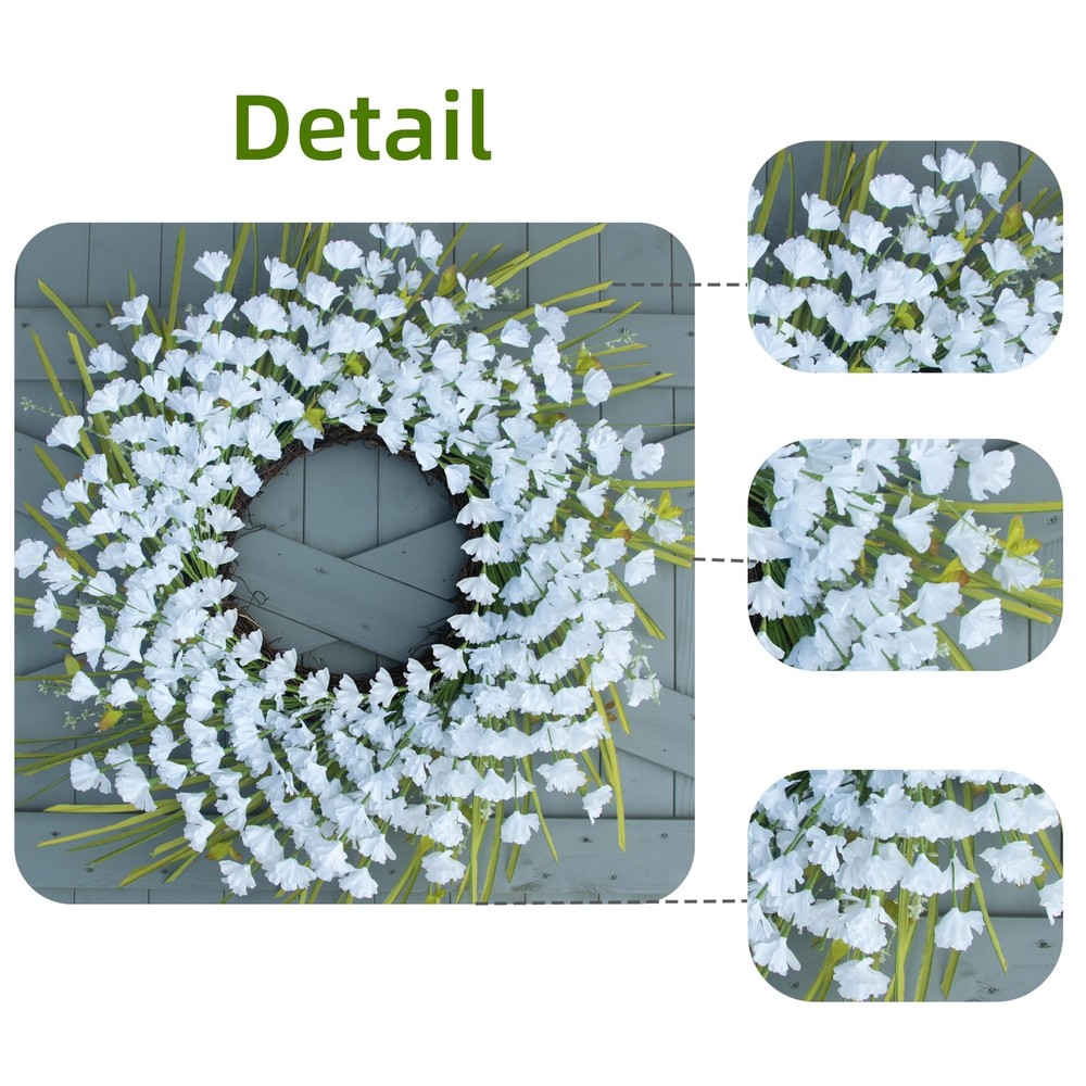 Brand Concept The home furnishing brand was founded by Mr. Gong. The brand products are carefully developed by professional florists, integrating art and nature. insists on pure handmade production, allowing people all over the world to feel the charm of handmade craftsmanship. spring wreaths for front door made of high quality material The spring wreath is about 24 inches long, white winter jasmines, berries and long green leaves made from high quality materials Securely fixed to natural grapevine base, which can accompany you through a long summer full of vitality and spring atmosphere. After sales If you have any other questions about the summer wreath for front door, please feel free to , we will definitely give you a satisfactory answer within 24 hours. Package Contents The artificial spring and summer wreath comes in a beautiful box that measures approximately 14 inches and includes a set of gloves for organizing the wreath and a hanger with an adhesive hook for your convenience to hang. Durable and long-lasting: The white flowers, berries and green leaves on the spring wreath are carefully designed and crafted by florists, firmly fixed on the natural grapevine base, not easy to fall off and durable. These spring wreaths for front door can add vibrancy and life to your home. Handmade:A 24-inch handmade artificial spring wreath is made of high-quality silk white flowers, green leaves and foam berries and is not easy to rot and fade. This spring and summer wreath is reusable and will accompany you through many springs and summers. Perfect for Various Occasions: This summer front door wreath is suitable for indoor and outdoor decoration, such as living room, porch, fireplace, window and farmhouse. It is also a perfect choice for housewarming and spring and summer home decoration, bringing a vibrant atmosphere to your home. Easy to install: The grapevine base of this spring wreath is equipped with an adjustable metal ring and comes with gloves and hooks. You can easily install it according to your preferences. Service : During transportation, the summer wreath may be squeezed and deformed, and 1-2 leaves and berries may fall off. This is normal, please rest assured. If you have any questions, please feel free to and we will provide you with a satisfactory solution within 24 hours.