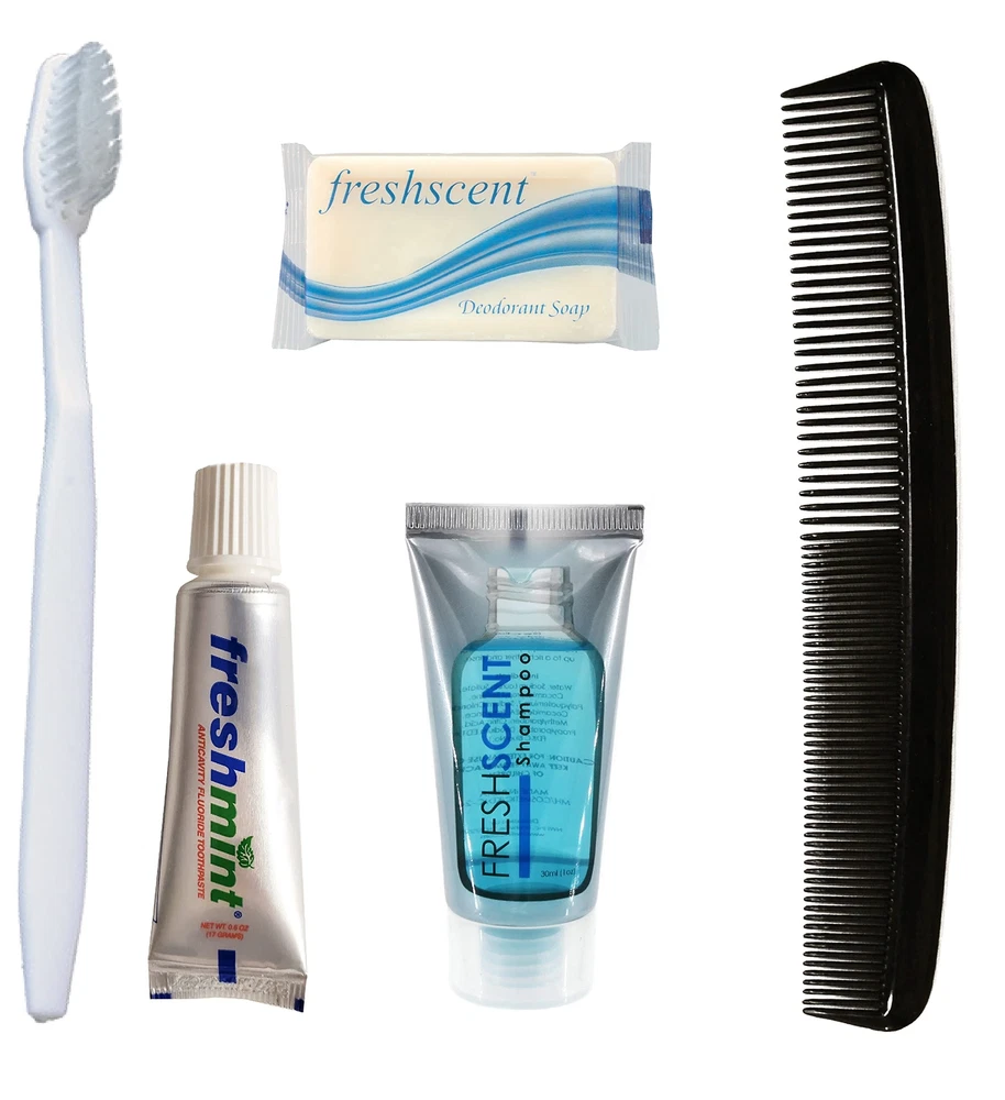 This kit for men, women, boys or girls contains the basic items needed for personal hygiene. Whether for personal use or supporting your local charities or non profits, churches, homeless shelters, schools or disaster relief, this kit is the perfect size and value. Each kit is packaged in a heavy duty 4 mil zip bag and contains: 7" Comb, 1 oz Travel Shampoo, 36 Tuft Toothbrush, 0.6 oz Travel Toothpaste, 0.35oz Travel Deodorant Soap (vegetable based) BULK PACK - 24 Individually bagged hygiene kits provide your best value. Each kit contains 5 items in a heavy duty 4 mil zip bag. SUPPORT THOSE IN NEED - Perfect for donation to your local charity, non profit, homeless shelter, church group, disaster relief and schools.. TRAVEL - Perfect for those that travel often. Always have a kit available for overnight trips. Never get to a hotel and be without! HOSPITALITY - Great toiletry bags for providing guests at your airbnb or vacation rental EACH OF THE 24 KITS CONTAIN: 1 oz. Shampoo, 0.35oz Deodorant Soap (vegetable based), 0.6 oz Toothpaste, 36 Tuft Toothbrush, 7" Black Comb all in a clear travel size 4 MIL heavy duty zip lock bag.