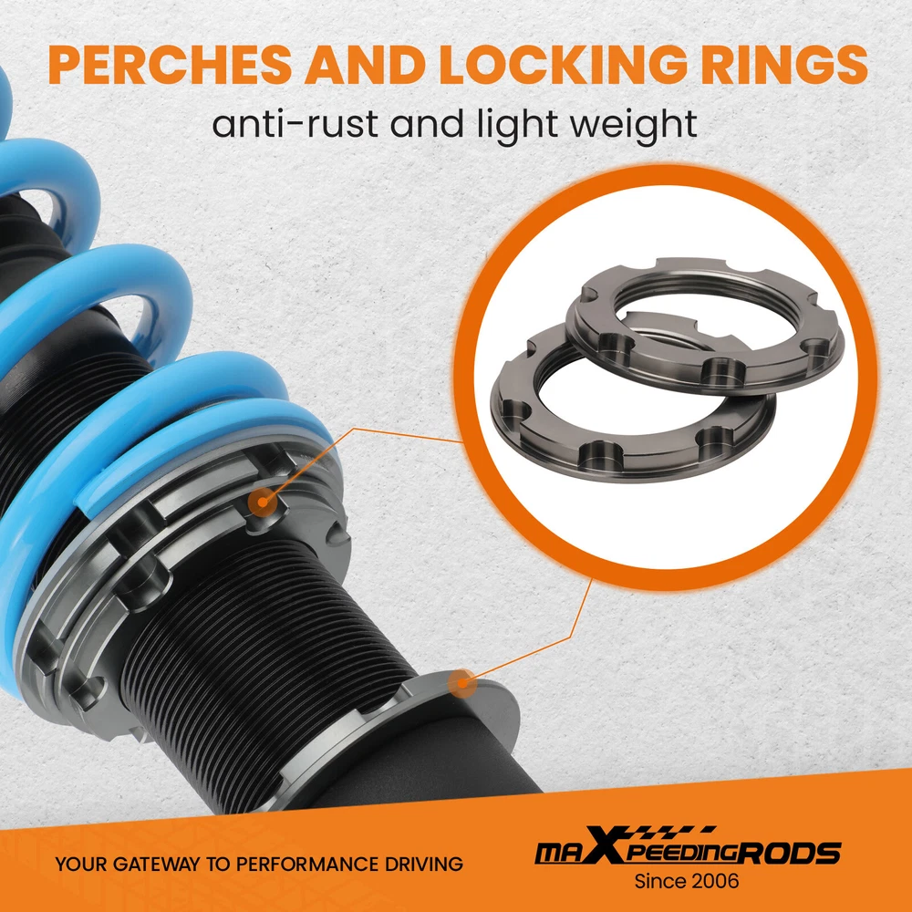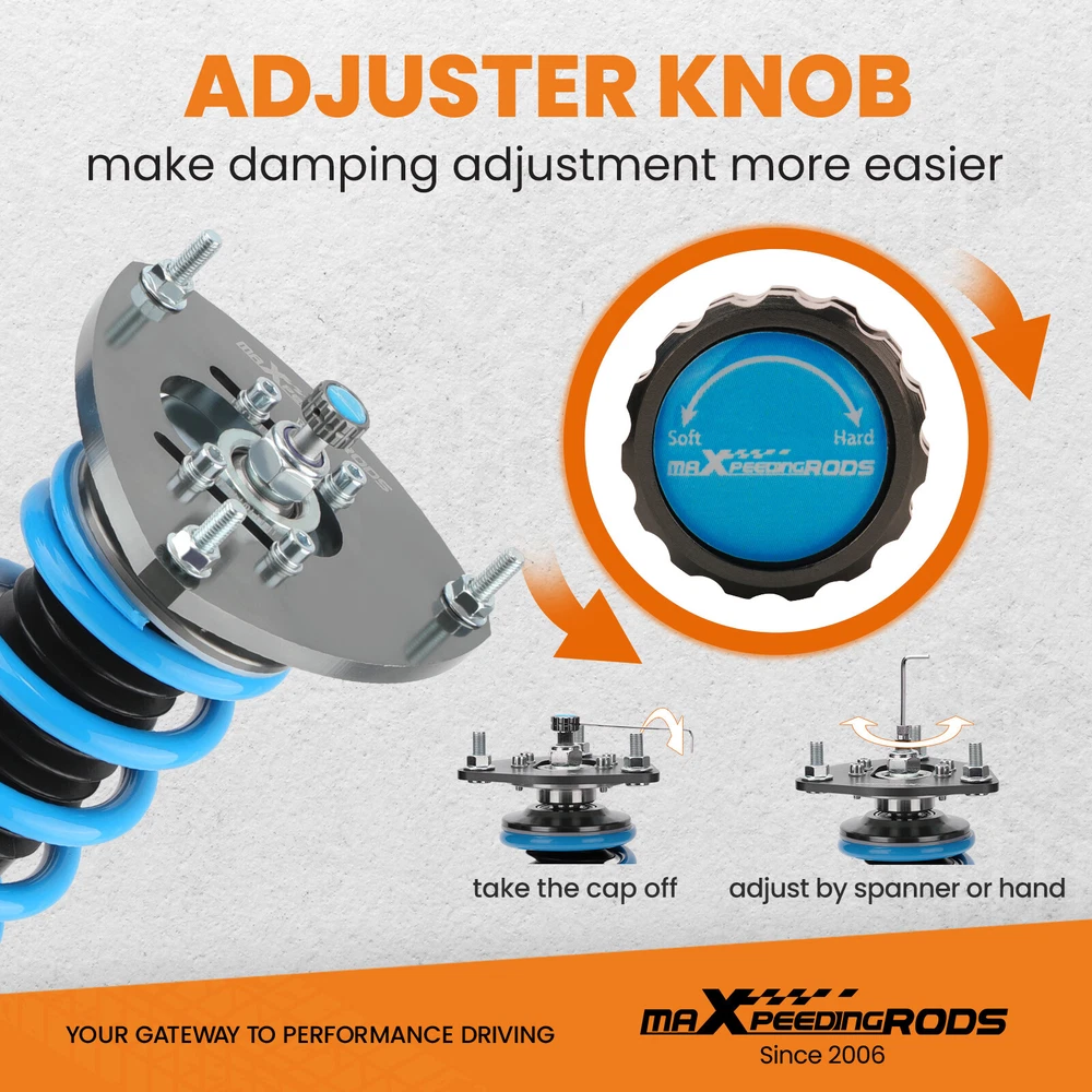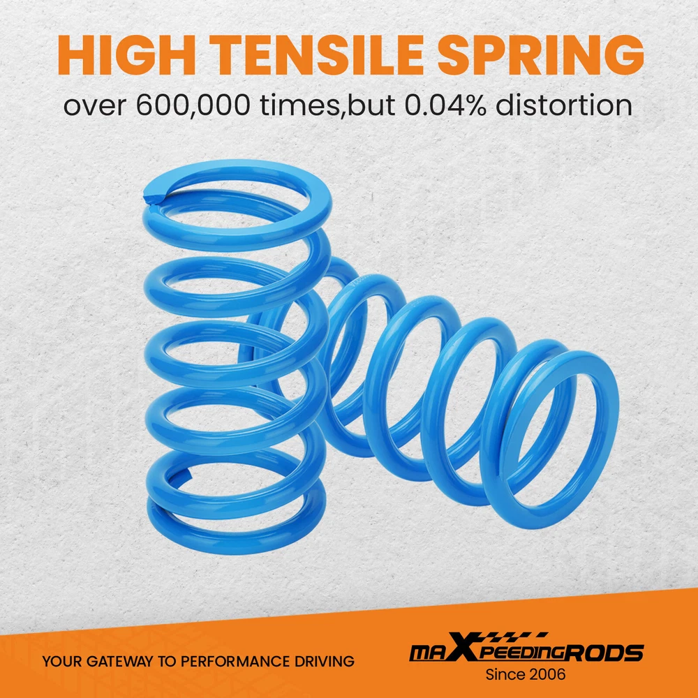 qxaac WHY CHOOSE US Fast Shipping International Shipping 30 Days Return Policy Secure Shopping Lowest Price Price match guarantee Manufacturer We know our products Easy Return Quick, Simple Guaranteed Fitment Always the correct part DESCRIPTION MaXpeedingrods COT6 lowering coilover, features 24 clicks adjustable rebound damping, independent ride height and spring tension settings, developed high viscosity index damping oil and 55CrSi steel cold-bent springs, adjustable camber plates and decent outlook to provide perfect balance between comfort and performance. This suspension system is ideal for daily driving and occasional, light track use. High quality components are adopted to ensure product durability and stability. Each application is fully test fitted and completely road tested to guarantee all our customers perfect performance and comfort expectations. Features 1. Lowered height adjustment from 1" - 3" which allow lower center of gravity and also add a more aggressive stance 2. Adjustable pre-load spring tension to reduce the shaking motion to a certain extent 3. High Viscosity Index damper oil ---make damping more stable and smooth in wide temperature range. 4. 24 Clicks of Rebound Adjustments -- This allows you the ability to perfectly dial in your coilovers system. For a nice comfortable driving, set damping to full soft. For more spirited driving, set it to 16 clicks. For occasional track days, set it to full stiff. 5. CNC machined Aluminum top mounts and lockers -- - excellent strength, and save weight 6. High Rigidity 55CrSi Steel Cold-bent Coil Springs --- more than 600,000 times continuously test to assure it's high tensile strength. 7. All inserts come with fitted long rubber boots --- To protect the damper more well and be durable. 8. Top Camber Plate with Pillow Ball Mount Provides More Precise Feel From Suspension And Steering. 9. Advanced Twin-Tube Technology ---provides excellent handling & control characteristics for most driving conditions 10. Anodized Shock Body With Anti-Corrosion Coating - Anodized Aluminum And Powder Coated Carbon Steel Parts 11. Test for the best ---Every parts were tested on our professional machine before assembled and tested by our professional racers on road. 12. Clean room assembled ---maintain higher level of accuracy and reliability. Application For Subaru Legacy 2005-2009 BL9 BP9 For Subaru Legacy TOURING WAGON 2003.05-2009.04 BP5 BPE Specification - Top mounts: Front pillow ball top mount with camber plate - Damping: 24 levels rebound damping adjustable - Adjustable camber plate: Front only - Spring rate Front: 7 kg/mm (392 lbs/in) - Spring rate Rear: 12 kg/mm (672 lbs/in) - Spring length Front: 200mm - Spring length Rear: 190mm - Adjustable height: lowering 1-3 inch - Coilover overall length Front: 460mm-550mm - Coilover overall length Rear: 400mm-450mm - Shock Type: Twin tube - Spring Preload: 7-10 mm - Color: Black body + blue spring Package included - Complete coilovers for 2 front and 2 rear - A pair of wrenches for height adjustment ★ 30-day Money Back & 24-Month Replacement Guarantee. Please feel free to contact us if there is any question. Height Adjustable Lowering Kit; 24 Clicks of Rebound Damping Force Adjustment; Independent Ride Height And Spring Tension Settings; High Rigidity 55CrSi Steel Cold-bent Springs; Anodized Shock Body With Anti-Corrosion Coating; Top Camber Plate with Pillow Ball Mount Provides More Precise Feel From Suspension And Steering; Full 1 Year Limited Warranty From Date Of Purchase. SHIPPING CA Domestic Shipping Notice - All items will be dispatched within 24hrs(Mon-Fri) Our carrier collects all the parcels at 4:30am PDT, any payment paid after 5:00am PDT will be shipped the next day at 4:30am PDT. If you paid Before Apr. 1st at 4:30am After Apr. 1st at 4:30am Item Shipped On Apr. 1st at 5:00am Apr. 2nd at 5:00am Est.Delivery Time Apr. 5th - Apr. 7th Apr. 6th - Apr. 8th If our estimated delivery time and eBay’s are contradictory,please refer to the standard delivery time of ours. Estimated Delivery Time From US Outside of US To US Service UPS or Fedex Ground DHL FedEx Est.Delivery Time 3-5 Business days 4-7 Business days ◆ Tracking number will be updated in 24 hours after shipment ◆ Please provide the following shipping information for your order Otherwise your shipment will be deferred. We are not responsible for any shipping lost caused by wrong shipping information Shipping rate If our ebay item listing doesn't show the shipping cost to your place.Please contact us to calculate the shipping fee for you. International Shipment For international shipment, we do not cover any import taxes or duties. Import tax is charged by the government, not us. Our item price and shipping cost do not include any import tax which will be charged by the shipping company when you got the parcel. Please be noted that is not the extra shipping fee. WARRANTY We aim to provide you the good buying experience, 30 days return policy is offered in our store. Please follow our return policy before you return any item(s): If you are unhappy with your purchase for any reason, you can return it to us in an un-used condition in the original packaging within 30 days of purchase and we'll give you a refund or exchange. The refund/Exchange will not include postage/eBay costs. Please note you MUST contact us to obtain a Return Authorization Number before returning any part. Any parcel without the Return Authorization Number will be rejected. If your item is faulty or was incorrect, you must contact our sales representative before returning the parcel and we will endeavour to solve the problem effectively. Video or picture is required to show the item condition before we issue the Return Authorization Number. Important notice 1. Any returned item(s) without Return authorization number will be rejected . 2. Please return your item(s) in original packaging and ensure that all packages are securely wrapped . 3. We will not accept 