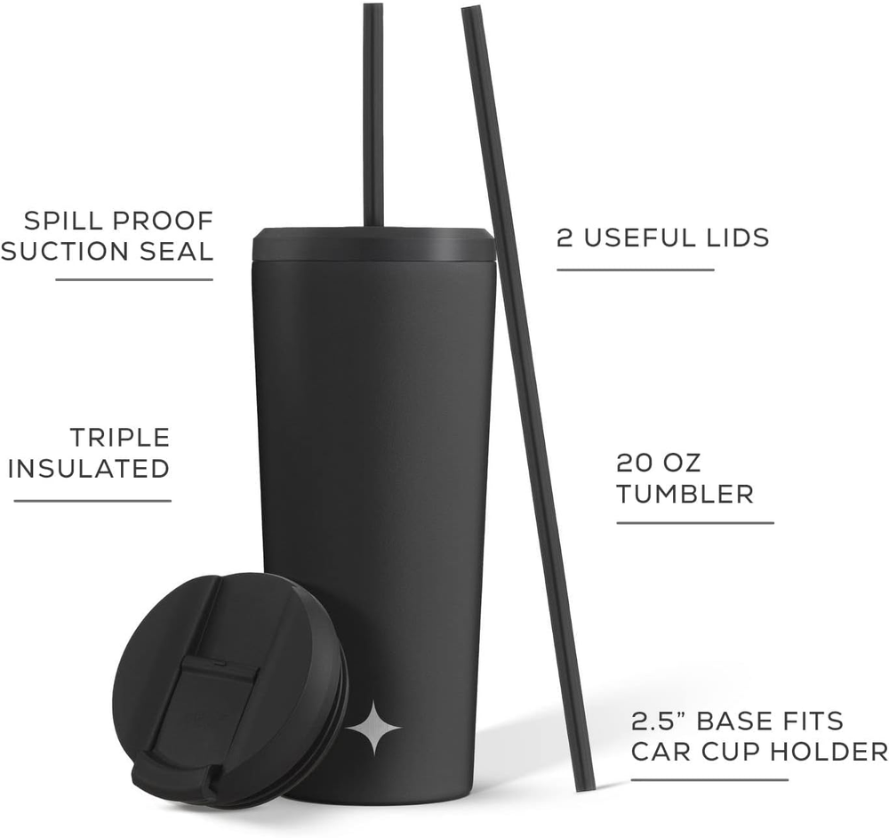 Store New Arrivals Add to Favorite View Feedback Contact Vacuum Insulated 24 Oz Tumbler with Lid and Straw (2 Each) Vacuum Double Wall Stainless Steel Tumbler, Copper Lined for 12Hr Hold/Cold Drinks. Leakproof Water Bottle, Tea or Iced Coffee Cup Description Item model number JVI10700 Number of Items 2 Pattern Solid Theme Stars Unit Count 1.0 Count Product Dimensions 3.46"W x 8.78"H Material Stainless Steel Capacity 1.5 Pounds Finish Type Matte Specific Uses For Product Hot Drinks Material Type Free BPA Free Reusability Reusable Item Weight 1 pounds Material Feature Insulated Special Feature Leak Proof, Insulated Color Matte Black Global Trade Identification Number 00810071428111 Shape Round Recommended Uses For Product Travel Included Components Tumbler with Lid and Straw Product Care Instructions Machine Wash, Hand Wash Only Size 24 OZ WHY STOP AT DOUBLE WALL? With a JoyJolt Insulated Thermal Cup, cold drinks stay cold and hot drinks stay hot for longer - 12 hours in fact! Our vacuum insulation is already brag worthy for its 12 hour abilities, but we also infused it with copper so you have the coldest, or hottest always! WITH TWO TUMBLER LIDS! Each slim cup you order comes with a Straw Lid, Flip Lid AND two tumbler straws! So you’ll always have the right lid for a hot or cold drink. These blank tumblers feature the JoyJolt icon, but free from giant logos in a range of colors, so it becomes YOUR own insulated cup. TOTALLY SPILL PROOF! Our screw top lids make this the Perfect Portable Cup! Great as an adult sippy cup for elderly friends and family, kids tumbler, travel tumbler or camping cup with lid. You can also use it as a shaker cup with lid and straw! Just add ice – shake and drink from the same container! FITS YOUR CUP HOLDER, TOO! This 24 ounce tumbler cup is 2.6” wide at the base and 3.5” at the top. A skinny tumbler for small hands AND your car cup holder. So you can take your smoothie cup, iced coffee tumbler or ridiculously strong coffee on your daily commute, or weekend roadie. CORROSION RESISTANT AND BPA FREE: Your metal cup with straw has a PP lid which is naturally free from BPA and Phthalates. And the 18/8 stainless steel body has been infused with chromium and nickel – both food safe metals that stop our tumbler cups going rusty! Handwash only to protect vacuum seal. Product Description The video showcases the product in use. The video guides you through product setup. The video compares multiple products. The video shows the product being unpacked. ABOUT US We offer the best prices around on high quality products. Our E-store includes media such as books, movies, music and games while offering electronics, toys, sporting apparel, clothing, tools, general home, garden items and more. SHIPPING We are always working hard to ensure your package arrives as soon as possible. Please understand that some factors like weather, high postal traffic, and the performance of shipping companies are outside of our control. We offer free shipping to the lower 48 states and ship within 2 business days of payment, usually sooner. We do not accept P.O. Boxes. Please provide a physical address. For shipping outside of the continental USA, we only use eBay's Global Shipping Program.The item is shipped to KY and then sent to the rest of the world. International customers are responsible for all duties and taxes. Continue to check out in order to calculate costs for shipping the item to your country. Messages regarding eBay's Global Shipping Program MUST be directed at eBay EXCLUSIVELY. RETURNS We offer a 30-Day Return Policy on items which you are not completely satisfied with. You have the option for a full-refund or an exchange of the item. No returns are available on items shipped outside of the USA. PAYMENT We accept PayPal. CONTACT US This page content is yet to come Please ad us to your favorite seller and visit again later Thank You CUSTOMER SATISFACTION We try our very best to make sure every customer is completely satisfied. If there's a problem, message us! We're happy to help. WE ACCEPT Copyright © 2021 AutoDS. | All Rights Reserved