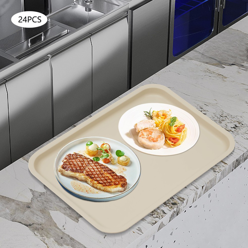 Specification Color: Khaki Style: Modern Shape: Rectangle Material: PP Process: Injection Molding Assembly Required: No Max. Heat Resistance: 120℃/ 248℉ Cold Resistance: -20℃/ -4℉ Is Dishwasher Safe: Yes Is Microwave Safe: Yes Number of Pieces: 24 Each Internal Size: 34*24 cm/ 13.39*9.45 in Each Product Size: 36*27*2 cm/ 14.17*10.63*0.78 in Gross Weight: 5kg/ 11.02 lbs Net Weight: 4.5kg/ 9.92 lbs Package Size: 37.5*28*22.5 cm/ 14.76*11.02*8.86 in Package Included 24* Trays WELCOEM Description Are you looking for a great tray for your restaurant? Our tray is both beautiful and practical to meet your daily needs. It is made of high-quality PP material, which is not only sturdy and durable but also safe to use. The non-slip surface will securely support your meal and give you peace of mind when using it. It will surely become your good helper! Key Features Durable Material: High-quality PP and the injection molding process make the product strong, durable, heat-resistant, impact-resistant, safe to use, and not easy to deform and break, which can maintain the aesthetic and practicality for a long time. Ample Quantity: This set contains 24 pieces, which is enough for your daily use and replacement needs, and you can also share it with your family, friends, or neighbors. User-friendly Design: The surface of the product adopts an anti-slip design, which can increase the friction between the food and the surface, effectively preventing the food from falling or spilling when walking and holding the tray. Suitable Size: Each tray measures 14.17*10.63*0.79 inches, which is the ideal size for holding a variety of fast food items daily, making it easy to get an entire meal from the register to the table in one trip. Space-saving: The product adopts a stackable design, which can be stacked up when not in use, effectively helping you save space. Easy Cleaning: Thanks to the smooth surface and simple structure, you can easily wipe off the dirt on it with water and a rag. In addition, the product is dishwasher safe, which frees your hands. Thoughtful Gift: The product is stylish and sturdy, making it an ideal gift for friends in the restaurant industry. Good Customer Service: We stand behind all our guests and look forward to assisting you with your purchase. It is our pleasure to answer your confusion and questions. The end of the story between us is not "we sell and you buy". Details Rounded Corners : The corners and smooth edges are designed to provide a comfortable and safer touch. Raised Bottom: The raised non-slip bottom makes the product place smoothly, prevents the bottom from rubbing against the desktop, and facilitates ventilation. Raised Edge: It is easy to grip and provides you with a better using experience. Application This product is widely used in fast food restaurants, cafeterias, kitchens, hotels, restaurants, snack bars, schools, hospitals, and cafeterias, and is ideal for serving steaming hot food, juices, snacks, desserts, or other delicacies. Specification Color: Khaki Style: Modern Shape: Rectangle Material: PP Process: Injection Molding Assembly Required: No Max. Heat Resistance: 120℃/ 248℉ Cold Resistance: -20℃/ -4℉ Is Dishwasher Safe: Yes Is Microwave Safe: Yes Number of Pieces: 24 Each Internal Size: 34*24 cm/ 13.39*9.45 in Each Product Size: 36*27*2 cm/ 14.17*10.63*0.78 in Gross Weight: 5kg/ 11.02 lbs Net Weight: 4.5kg/ 9.92 lbs Package Size: 37.5*28*22.5 cm/ 14.76*11.02*8.86 in Package Included 24* Trays Notes Please note that although the surface of this product is non-slip, it is still recommended that it should be held as flat as possible to avoid accidents. Please note that the product should not touch the heat conduit when used in a microwave oven. Please allow the slight color difference caused by the shooting light and the 1-3 cm error due to manual measurement, and make sure you do not mind before ordering. Payment Delivery details Terms of sales About us Contact us Payment We accept ebay payment 。 Fees such as import duties, taxes are not included in the item price or shipping costs. These charges are the buyer's responsibility. Delivery details Shipping: 2-9 working days to: USA Terms of sales We maintain high standards of excellence and strive for hundred percent customer satisfaction. Feedback is very important to us. We hope that you contact us immediately before you give neutral or negative feedback, so that we can address your concerns. It is impossible to address issues if we do not know about them! About us Your satis faction is our ultimate goal. We work hard to earn your trust and future business. Our certified technicians have tested each item before shipping. The unit comes with 1 year limited warranty on all manufacturing defects. a) If you receive a defective item, you may return it or ask for a discount. Please contact us within 14 days after you receive the package. b) What you returned must be intact and in its original packaging as re? u. Customer is responsible for shipping costs of the returned item. c) We will cover the cost of shipping back t with the shipping rate indicated in the registration page. We will send you a new unit or refund the full payment you paid. Thank you. Contact us Business Hour Business Hour: Monday To Friday: 8:30 AM to 5:00 PM (Beijing China time) Due to time zones, our reply to your questions may not be immediately. But within above working time, we will reply your email within 24 hours. If it's non-workdays, please kindly be patient and wait till Monday. Please contact us with ebay message. Please feel free to contact us if you have any questions. Monday To Friday: 8:30 AM to 5:00 PM (Beijing China time) Due to time zones, our reply to your questions may not be immediately. But within above working time, we will reply your email within 24 hours. If it's non-workdays, please kindly be patient and wait till Monday. Please contact us with ebay message. Please feel free to contact us if you have any questi