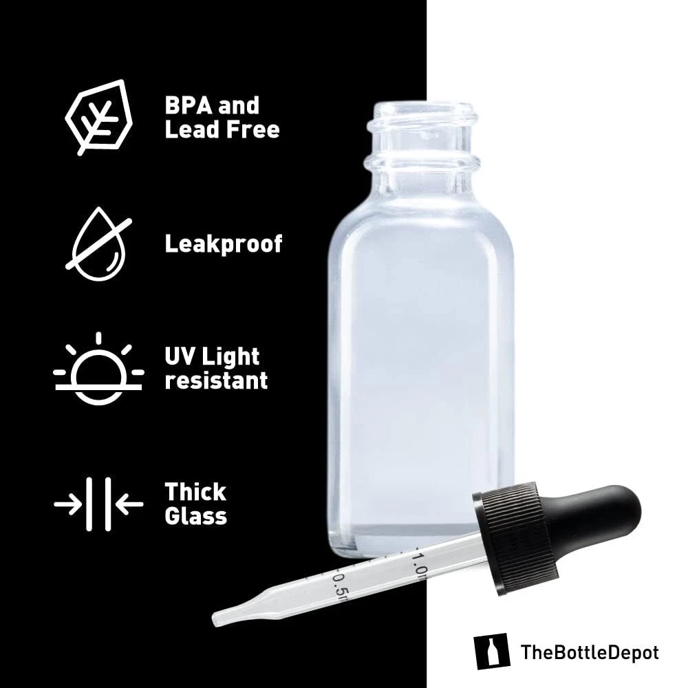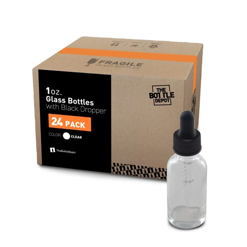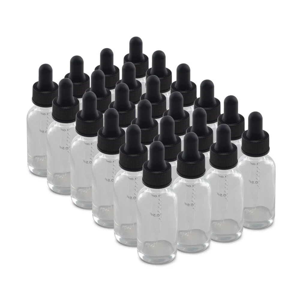 - 24 Pack - 1 oz Glass Bottle with Dropper - Clear - 20-400 Neck Finish - Bos...