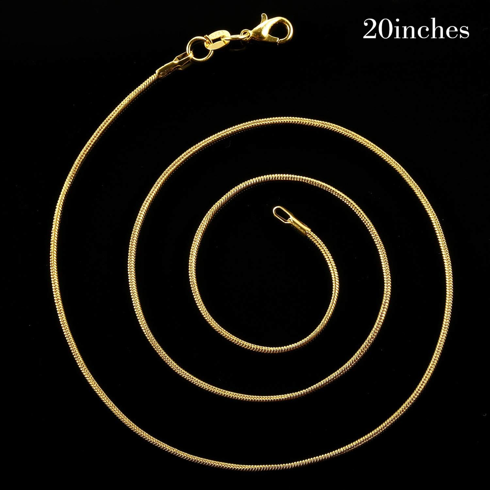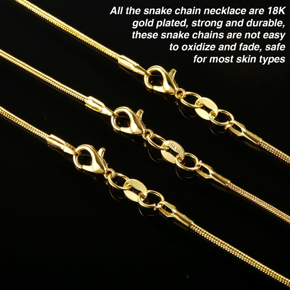 Love these gold snake chains! Perfect for jewelry making—great quality, sturdy lobster clasps, and just the right length. The gold plating looks elegant, and the pack of 24 is a steal for the price. Ideal for gifts or DIY projects—highly recommend!