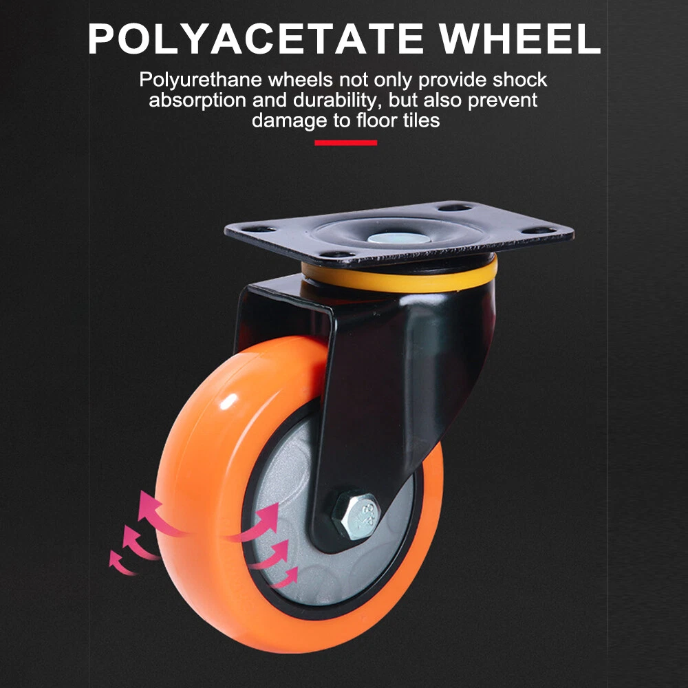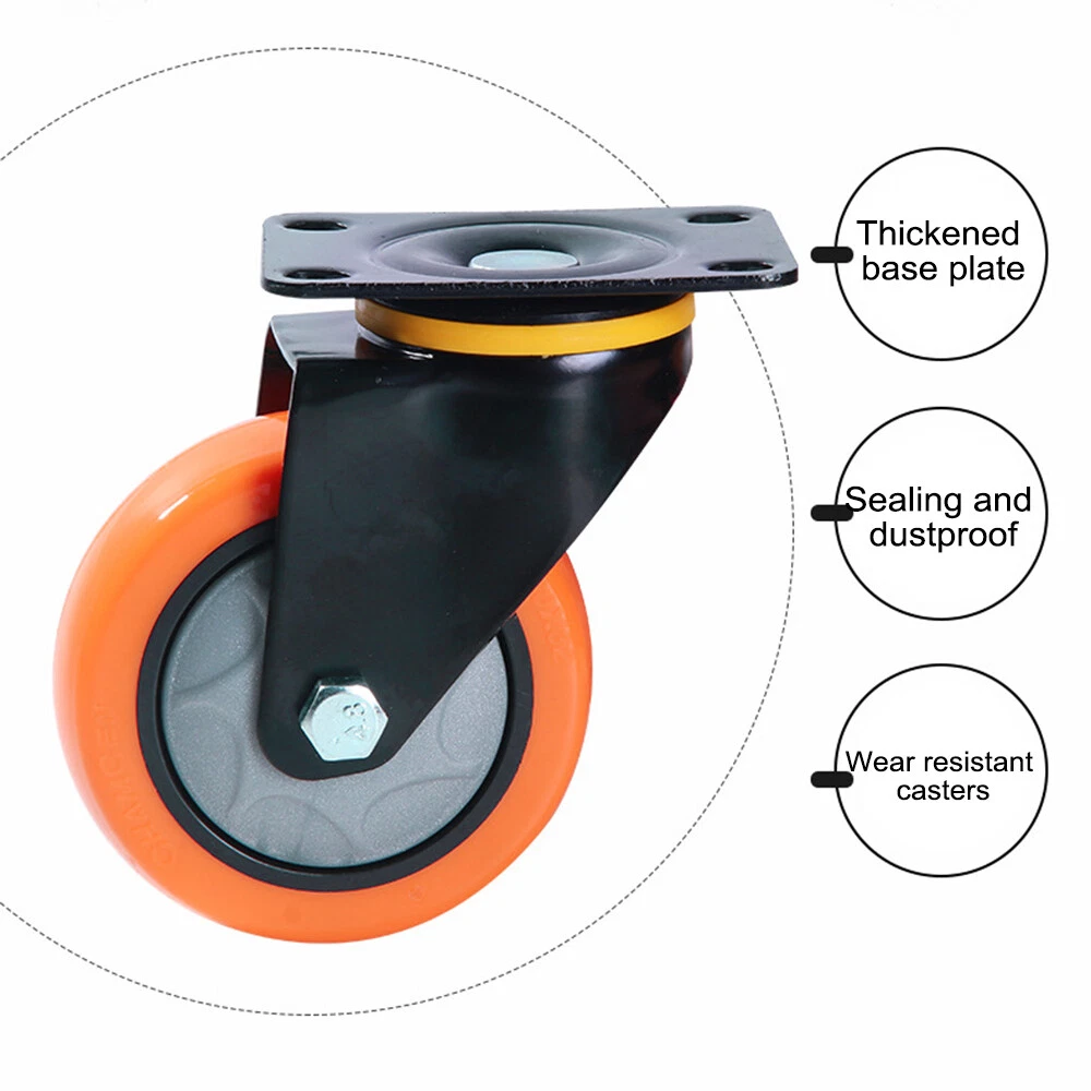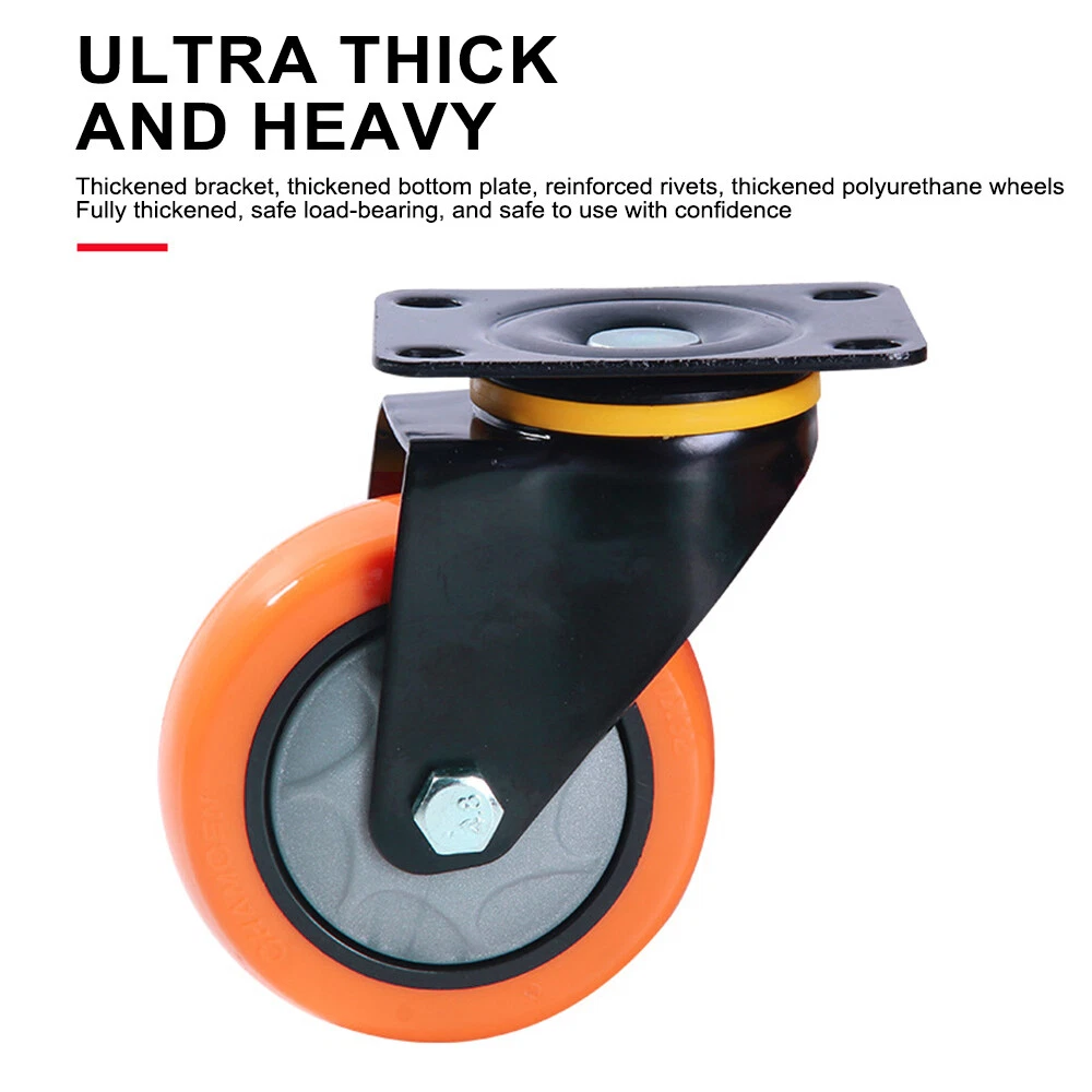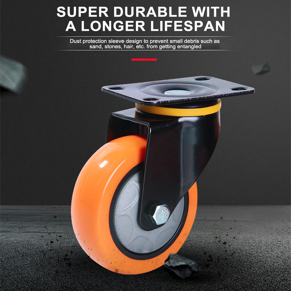 (2/4 Pack) Heavy Duty Swivel Plate Caster Polyurethane Wheels 3" 4" 5" Wheels (2/4 Pack) Heavy Duty Swivel Plate Caster Polyurethane Wheels 3" 4" 5" Wheels We have 3 colors, 3 sizes and 3models ( Fix direction, 360° Swivel, Swivel with Total lock Brake), please choose what you need correctly. Feature: 【HIGH QUALITY MATERIAL AND QUIET MOVEMENT 】: These heavy Duty caster wheels is made of polyurethane, no smell, easily move heavy objects to any desired area; Whether in warehouses, shopping malls, or other industrial areas, the wheels work quietly, keeping your life away from the effects of noise. 【MAX FLEXIBILITY, SAFETY and NO NOISE 】: 3/4/5 inch Polyurethane (PU) Swivel caster wheels rotate 360 DEGREES which can turn to any directions, is good for transporting light furniture and displays QUIETLY and safely. Slient,easy to push, save energy, do not hurt the ground, no traces, strong load capacity and no noise. 【HEAVY DUTY BEARINGS 】: Steel structures body is extremely hard wearing and resistant to dirt, strong bearing capacity. ONE BALL BEARING and DUAL LOCKING bring a max loading capacity and safety.A saving of time and labour. 【UNIVERSAL USE 】: The wheels can be widely used indoor and outdoor, trolleys, workbench, furniture, shelves and other items commonly found in workshops, garages, kitchens, offices etc. 【INCLUDES 】: 2 OR 4 caster wheels( please select the quantity you need) Specification: Material: polyurethane Wheel, Steel Top Plate Package Include: 2 / 4 × caster wheels(Please select the size, color, and quantity you need) Payment Delivery details Terms of sales About us Contact us Payment 1.We accept PayPal/credit/Gpay 2.All payments must be received within 10 days after auction won 3.Non-pay bidder will get a negative feedback and an unpaid alert from eBay 4.E-checks via Paypal will be hold until it is cleared Delivery details Most Items Free Shipping within the 48 States. We ship within the United States only. The term EXCLUDES the states of Alaska, Hawaii and all off-shore U.S. territories and possessions such as Puerto Rico, Guam and Virgin Islands. We do not ship to APO and FPO . Delivery Time: 4-7 business days (Varies by Destination) Shipping Carriers are responsible on the delivery time. If you have any questions or problems with delivery, please contact carrier directly Standard Order Processing time: All items will ship within 24 hours (Monday - Friday). Payment cleared/received on Friday will be shipped on the next business days (Monday or Tuesday) We are not responsible for carrier transit time. This information is provided by the carrier and excludes weekends and holidays. Note that transit times may vary, particularly during peak periods or in climate weather conditions, and that delivery times frames will need to be extended for any processing time frames in excess of 1-2 business days. Terms of sales We fully guarantee Customers benefit within 30 business days if item DOA (damage on arrival), and please contact us within 30 days from the delivery date to exchange or refund. No need click "Return", please just contact us via Ebay Message. If you insist on returning the item, please choose the reason "nolonger need it' for returning processing. You will get the replacement or refund through the communication between us. About us We strive for 100% Customer Satisfaction and high quanlity products. If you have any questions or any problems on your purchase, please feel free to contact us via Ebay Message Contact us Via eBay message system , you will get our response within 24 working hours during business days from Monday to Friday. We apologize for the late reply during the holidays or weekends. Please send all correspondence through the ebay messaging system. All Technique questions, must be asked via ebay message. Emails will be applied during business hours: 9AM to 6PM Pacific Time. Monday to Friday only (excluding Holidays). After hours emails will be replied on the next business day. Model Swivel Plate Caster Wheels MPN Does not apply Brand Unbranded Wheel Diameter 3/4/5 inch