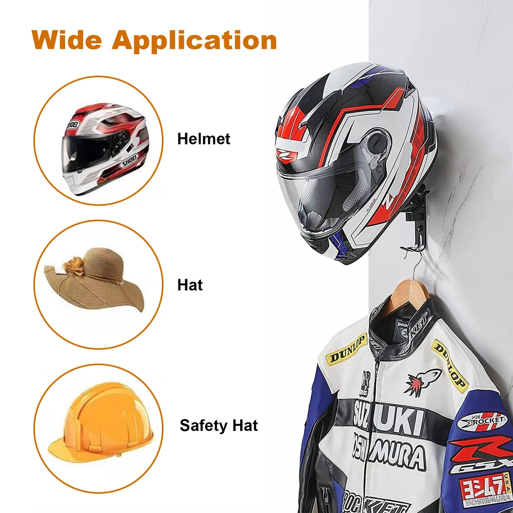 2-4pcs Motorcycle Helmet Holder Hook Jacket Bag Display Rack Wall Mount Hanger Features 180-degree Rotating Holder The helmet holder can be rotated 180° to adjust the proper position. When not in use, the bracket can be parallel to the wall to save space. Unique Double Hook Design A ball with a diameter of 4.7 increases the contact surface with the hat for better storage of the helmet. The thicker version of the double hook can hang coats and sportswear, which is practical and convenient. Anti-corrosive Material The helmet rack motorcycle is made of high-quality space aluminum, which has strong load-bearing capacity, stability and durability, and is not easy to deform. Easy to Install First mark the installation location, drill two holes with an electric drill, fix the bracket with screws, twist in the nut to block the color of the screw, and maintain the overall aesthetics. Widely Applications It can store motorcycle helmets, baseball helmets, football helmets and hats, etc. It is suitable for installation in the home, exhibition room, office or any place where it needs to be hung. Specification Color: Black Material: Space Aluminum Size: Please see the picture Package Includes Helmet Holder (2pc or 4pcs) For Holidays On Halloween, decorate the wizard's hat on the helmet holder, hang a piece of clothing, and light a jack-o-lantern. This must be an excellent way to welcome guests. Celebrate the holiday with friends under the warm yellow lights. The helmet holder can also accompany you through other holidays, like Christmas. We can prepare clothes and headgear, and fill the cotton into Santa's clothes. If it looks like it is hanging, you can put a box underneath it to make everything look more real. What types of helmets can be placed? Cowboy Hat Bike Helmet Football Helmet Motorcycle Helmet Payment Shipping Delivery details Return Contact us Payment · Only accept PayPal payment. · All payments must be received within 5 days after auction won. · Non-pay bidder will get a negative feedback and an unpaid alert from eBay. · E-checks via PayPal will be hold until it is cleared. Shipping Free Shipping within the 24 States. We ship within the United States only. The following places are not included in the delivery destination: The states of Alaska, Hawaii and all off-shore U.S. territories and possessions such as Puerto Rico, Guam and Virgin Islands. We do not ship to APO and FPO. Delivery details Standard Order Processing time √ All products will be shipped within 12 hours (Monday - Friday). √ If the payment cleared/received on Friday, the products will be shipped on the next business day(Monday or Tuesday). √ Delivery information is provided by delivery companies. ( NO update on weekends or holidays ). NOTE : Due to peak periods and weather conditions, the delivery time may delay 1-2 working days. Delivery Time √ 2-5 working days (Varies by destination) √ Delivery companies are responsible for the delivery time. If you have any questions or problems with delivery, please contact delivery companies directly. All Rights Reserved. Designated trademarks and brands are the property of their respective owners. Return 30 Days Money Back Satisfaction Guarantee&360 days Product Warrant y If you are not satisfied with an item you may return it within 30 days from the delivery date. You need to contact us us to request a RMA number(Return Merchandise Authorization Number) to return the item. Return packages without a valid RMA number will NOT be accepted. All products have 360 Days warranty. If you find any defect, please contact us to repair or replace the item. Contact us We appreciate your support and purchase very much. We will do our best to provide excellent products and services. If you have any problem with your order, please contact us by eBay messaging system and we will do our best to make you satisfied.Messages will be replied during working hours: 9 a.m.-6 p.m .(Pacific Time), Monday to Friday only (except Holidays). Messages after work will be replied on the next business day.