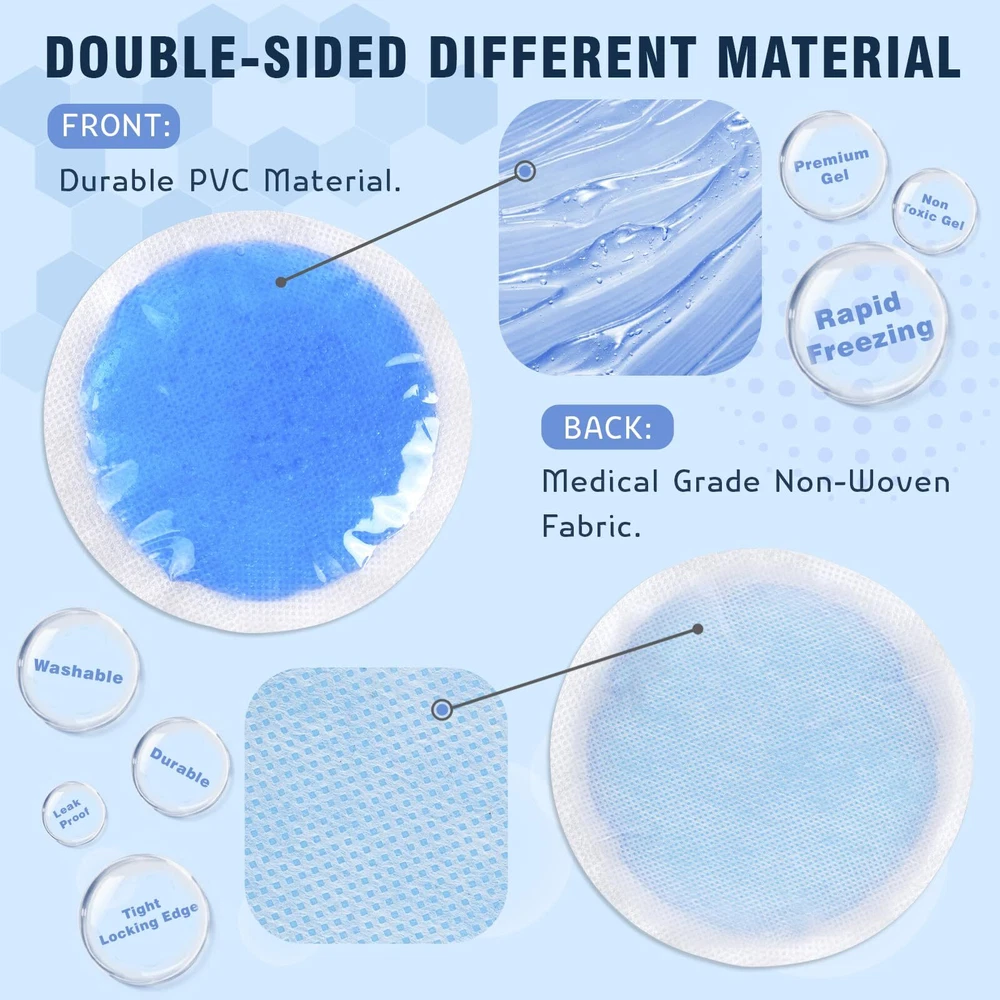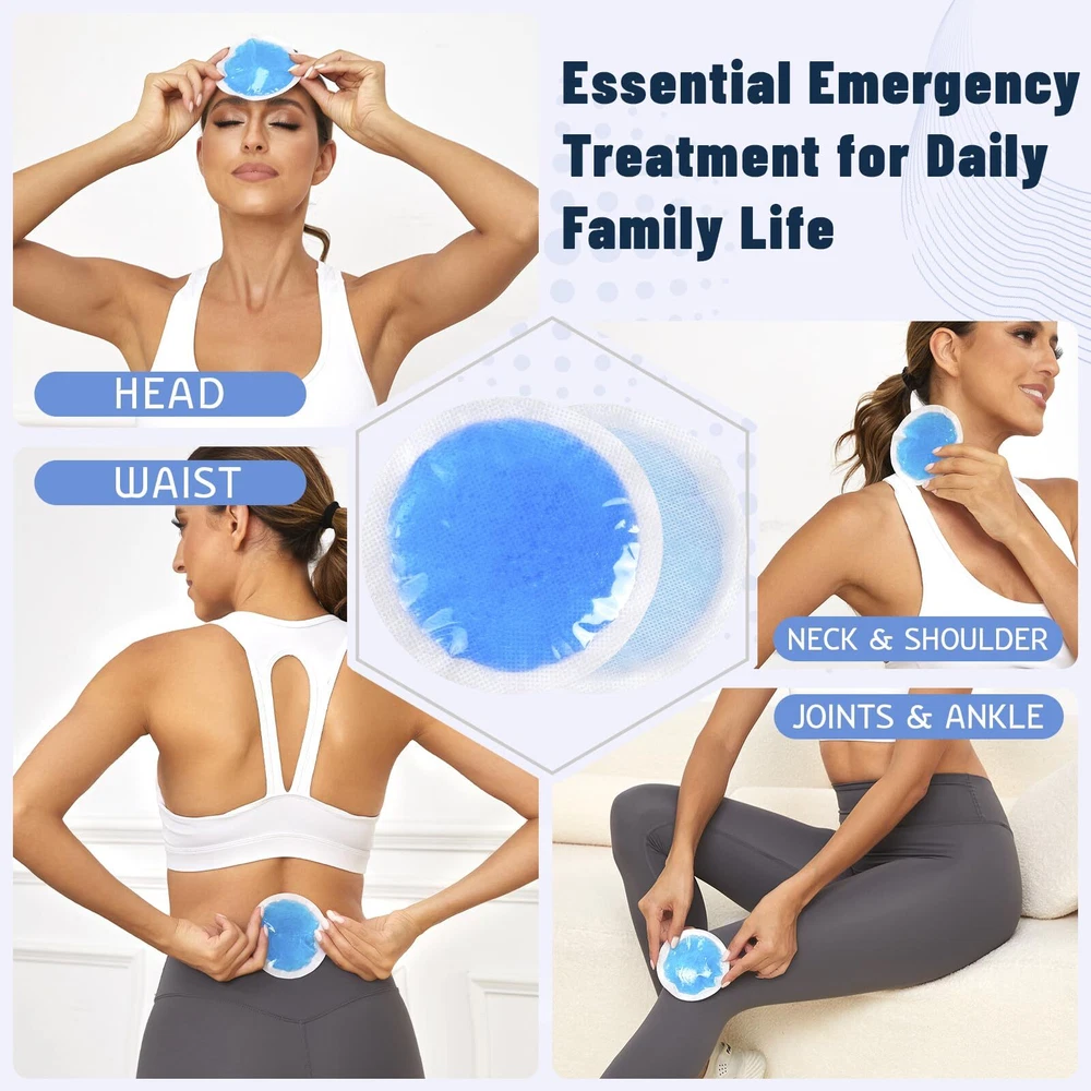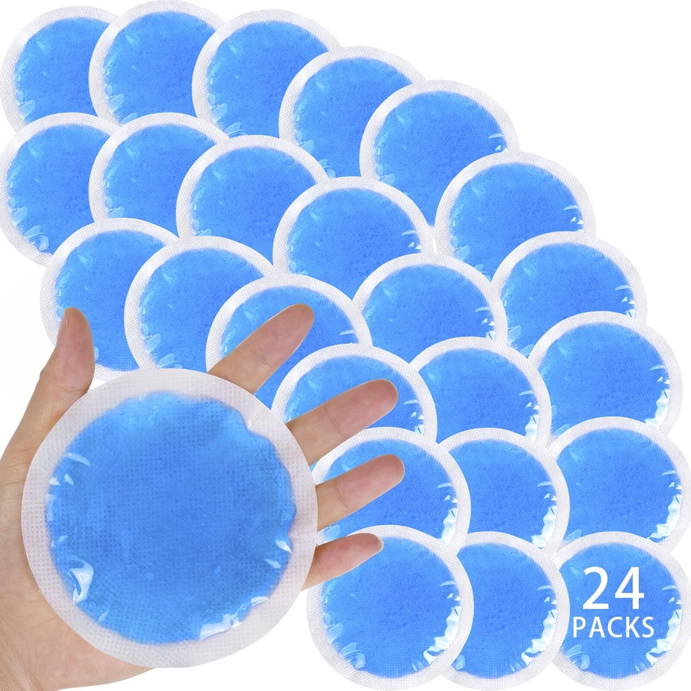 24 Packs Soft Small Ice Packs [WARM TIPS] The best cold compress effect is achieved by freezing in the refrigerator for more than 2 hours. If a hot compress is needed, please note that it should be heated in the microwave for less than 5 seconds and not continuously. [STILL SOFT AFTER FROZEN] High-quality soft gel can keep our small ice packs soft and close to the skin after freezing in the refrigerator for several hours, so that the gel small ice bags can be fully close to the areas that need cold compress, providing better family first emergency care. [WHAT WILL YOU GET] 24 Pack portable gel ice pack can be easily replaced at any time, meeting the daily needs of a large family. You can freeze them in the refrigerator for easy access at any time, it can be used in the office, school, home, or outdoor activities. [SAFETY & HIGH QUALITY] The two sides are made of different materials, providing you with dual temperature requirements. One side is made of PVC material, which is colder, while the other side is made of non-woven fabric, which is more suitable for sensitive areas such as the forehead and face. This kids ice pack the non-woven fabric material on the back will not tear and has good sealing performance to prevent internal gel leakage. The interior is filled with high-quality non-toxic gel. These gel ice bags remain soft and flexible after being frozen in the refrigerator for several weeks. The small ice pack will be very cold, but it will not freeze like water. [COMPACT & PORTABLE] The size of this small ice pack is designed for families, and the 4-inch reusable circular portable cold pack is more suitable for families. Whether it is for relieving eye fatigue, breastfeeding, wisdom tooth surgery, injections, cosmetic surgery, bumps, bruises, small wounds, fever, headache, hot and cold compress for various joint areas, or bento cooling. [AFTER-SALES SERVICE] If you have any questions about the product or encounter any problems with your order, please feel free to contact us. Our service team will provide you with professional solutions.