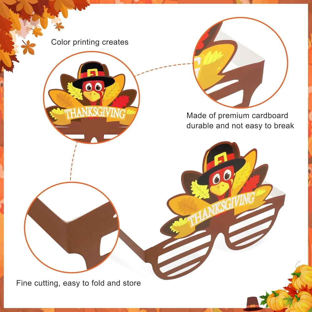 Product Description 24 Pack Turkey Thanksgivings Glasses for Kids Adult Fall Thanksgiving Harvest Party Decorations Style: Fall Thanksgiving Pattern: 12 design, each for 2 pcs, totally 24PCS Made of durable cardboard paper for a sustainable and lightweight. Perfect size, fit most of adults and kids. Best Thanksgiving Costume, Photobooth Props, Thanksgiving Accessories Thanksgiving Party Favors. Share these cute thanksgiving glasses with your family, friends, or kids during thanksgiving dinner. Pefect party favors and Thanksgiving gifts, thanksgiving kids activities, thanksgiving party decorations Creative and cute turkey design creates happy Thanksgiving atmosphere. These adorable and funny paper eyeglasses will definitely be a hit at party.