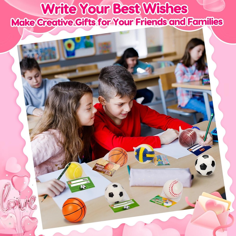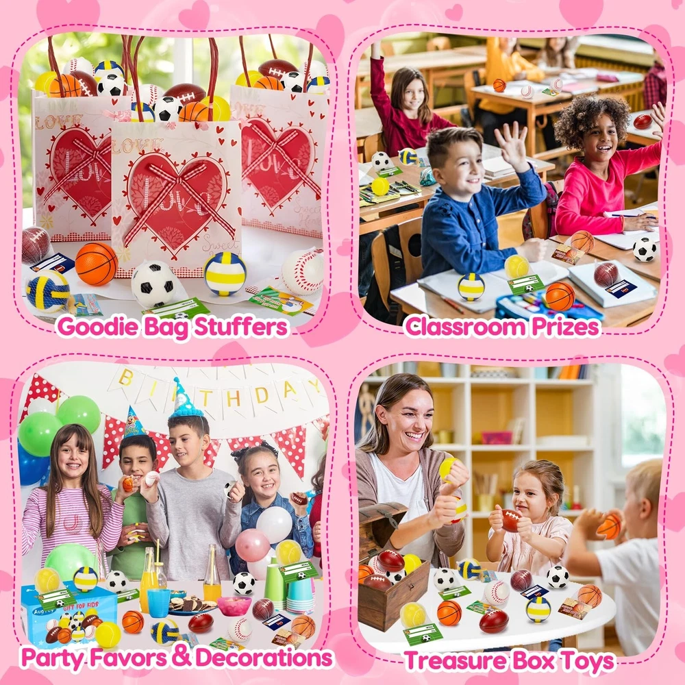 24 Pack Stress Balls Valentines Day Cards for Kids School Sport Party Favor Valentines Gifts Classroom Prizes Box Bouncy Mini Sports Ball Valentine Basketball Football Goodie Bag Boy Girl Toys Bulk Product Details Product Dimensions: 1 x 1 x 1 inches Item Weight: 1.04 pounds Country of Origin: China Manufacturer recommended age: 36 months - 15 years Manufacturer: AugToy Kids Valentines Day Balls SetOur abundant bulk valentines day gifts for kids school come with 24 pcs sports stress balls with valentines day cards and individual net bag packaging. There are 6 kinds of stress balls, 4 of each(Basketball Football Soccer Baseball Volleyball Tennis). Especially great for kids valentines day gifts for school and sport party favor, toddler valentines day gifts prizes and prize box toys for kids classroom, mini sports ball valentines, boys valentines exchange gifts. Creative Valentines Day Cards for Kids SchoolOur good quality sport valentines cards for kids class reverse side includes lines for filling in To and From, allow you to write your best wishes on these boys valentines cards for classroom. Show your blessing to your friends and classmates , let these greeting cards filled with good wishes strengthen your friendship. Best basketball valentines cards exchange, football valentines cards and soccer valentines day cards for kids who love balls. Premium Elastic Stress BallsThese squishy sports ball valentines for kids with bulk valentine cards for school are made of safe material foam, non toxic. It is super fun to squeeze because of the soft touch felling, ideal valentines day treats for kids 4-8 year old to help relieve stress and give lots of enjoyment. Stress relief toy is also suitable as indoor & outdoor toys, kids can carry and play everywhere. Best choice for baseball valentines decor or football party favors. Perfect Sizes For Kids and AdultsThe cool mini sport stress balls with toddler valentines day cards for kids school are 2 to 3 inches, portable for goody bag stuffers and bulk toys for kids prizes. Convenient for kids hands to grasp and can actually be thrown around as in playing catch. Fabulous addition for teachers and students, treasure box for classroom, sports and outdoor toys for toddlers 4-8 and kids ages 8-12. Children all love to play with these valentine gift bags for kids class. Cute Gift Idea Instead Of Valentines CandyThese mini sports ball valentines bulk toys feature exquisite packing. If you're a teacher looking for school valentine prizes box and small toys for kids classroom, don't miss our preschool valentines for kids sports ball. Perfect for valentine treats, basketball party favors, football party decorations, sports themed birthday supplies, prizes for kids classroom. Just take these amazing class valentines day gifts for boys & girls 3-5-8 year old.