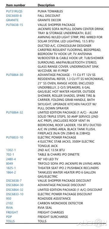 Vehicle Information Year: 2024 Make: Palomino Model: Puma Condition: New Contact Day Bros RV Sales 3054 South Laurel Rd London Kentucky 40744 View Map Ask for: Anthony Wortham Contact: Contact Us Main: (866) 546-9579 Hours Mon, Tues, Thurs, Fri: 09:00 AM-06:00 PM EST Wednesday: 09:00 AM-05:00 PM EST Saturday: 09:00 AM-04:30 PM EST Sunday: Closed Why Buy From Day Bros In Kentucky **Click "See full description" in Item Description for more specs and photos!** Come visit us in scenic Laurel County, KY! Our location in London, KY is just five miles off Exit 38 on I-75 and places us in the middle of some of the most beautiful scenery in the country. We're just north of Cumberland Fall State Resort Park, a vacation destination that's home to the "Niagara of the South." Cumberland Falls is one of the largest waterfalls in North America and one of the precious few places in the world where you can see a moonbow. People come from all across America to take in the beauty of this local treasure, and with its RV park you can make a long weekend of your purchase from Day Bros. It's also home to miles of hiking trails, making it the perfect RV destination. Come on by and plan to stay for a few days after you drive your new purchase off the lot! If anything goes wrong, we're right here to help make sure you make that long drive home with a reliable coach. A little closer but no less beautiful is Levi Jackson State Park, which is just up the road from our dealership. A historic park encompassing nearly 900 acres, you can visit parts of the Wilderness Road, where early settlers traveled to reach Kentucky. You can retrace the steps of Wilderness Road with two hiking trails totaling 8.5 miles. Levi Jackson is also home to an RV park for that long weekend--why not celebrate the purchase of your new coach with a mini vacation! Levi Jackson also boasts the Mountain Life Museum, which brings visitors into a pioneer settlement for some historic fun every Friday and Saturday Memorial Day through Halloween. Don't hesitate to ask us where to find good food and good fun in the local towns while you're here. London and Corbin are experiencing an exciting downtown revival of great food and local shops, and if you give us a call you can schedule a visit during one of our famous events, such as the World Chicken Festival. We want your RV buying experience to be a fun as possible and our location means there's plenty to be had. To get started on your RV buying journey, call us at 1-866-546-9579 or visit our website at www.daybrosrvsales.com NOTE: Some of our RVs are located at our NEW location in Monticello, KY! See pictures for more info. Anthony Wortham (866) 546-9579 3054 South Laurel Rd London Kentucky 40744 Day Bros RV Is Located In Scenic London, KY Credit Application Directions to Dealer Contact Us BBB Accredited Business London, KY Monticello, KY 24 Palomino Puma 31RLQS Travel Trailer Towable RV Camper Rear Living Recliners Video Apply Now Secure Credit Application Applying for a vehicle loan online is one of the quickest and easiest application methods. Our secure application is easy to complete, all you need are a few personal and employment details. Credit Application Directions to Dealer Contact Us Options and Standard Features Basic Information Year: 2024 Make: Palomino Model: Puma Trim: 31RLQS Stock Number: 102464 VIN: 4X4TPUG25RP102464 Condition: New Dry Weight: 8808 Type: Travel Trailer Sleeping Capacity: 5 Length (Feet): 36 Construction Body Material: Wood Sidewall Construction: Aluminum Dry Weight (kg): 3995.3 Dry Weight (lbs): 8808 Title: Clean Suspension / Braking / Wheels Spare Tire Location: Exterior Mounted Wheels Composition: Steel Wheels Tires Spare Tire Front Brake Type: Not Applicable Rear Brake Type: Electric Drum Drivetrain Number Of Axles: 2 Safety Smoke Detector Carbon Monoxide Detector Propane Alarm Emergency Exit(S) Number Of Emergency Exits: 1 Exterior Exterior Flood Lights Exterior Shower Retractable Roof Antenna Exterior Color: White Interior Interior Color: Tan Interior Wood Finish Wallpaper Living Area Location: Rear Comfort Air Conditioning (Btus): 13,500 Heater Sofa Recliners / Rockers Number Of Sofas: 1 Number Of Recliner / Rockers: 2 Number Of Convertible / Sofa Beds: 2 Air Conditioning Type: Automatic Recliners / Rockers Material: Vinyl Sofa Material: Vinyl Heater (Btus): 35000 Heater Type: Automatic Convenience Power Vent Fan Sky Light Roof Vents Leveling Jack Type: Front Manual / Rear Manual Leveling Jacks Included: Standard Entertainment Radio TV Antenna Prewiring Cable Prewiring Number Of Radios: 1 Speaker Location(s): Interior / Exterior Slide-Outs & Awnings Slide Outs: 3 Awnings: 1 Slideouts Awning Power Retractable Slideout Power Retractable Awning Awning Length (ft): 13 Awning Length (m): 4 Towing Hitch Lights Utility Hookups Number Of Propane Tanks: 2 Water Heater Pump Power Mode: Electrical / Propane Water Heater Tank Capacity (g): 6 Water Heater Tank Capacity (l): 22.7 Total Propane Tank Capacity (gal): 9.4 Total Propane Tank Capacity (lbs): 40 Water Heater Tank Washer / Dryer Prewiring Rear Bumper Drain Hose Carrier Propane Tank Cover Propane Tank(S) Water Heater Tank Bypass Holding Tanks Water Capacity (Gallons): 41-50 Fresh Water Holding Tank Gauge Gray Water Holding Tank Gauge Black Water Holding Tank Gauge Holding Tanks Number Of Fresh Water Holding Tanks: 1 Number Of Gray Water Holding Tanks: 1 Number Of Black Water Holding Tanks: 1 Total Black Water Tank Capacity (gal): 35 Total Black Water Tank Capacity (l): 132.5 Total Fresh Water Tank Capacity (gal): 43 Total Fresh Water Tank Capacity (l): 162.8 Total Gray Water Tank Capacity (gal): 35 Total Gray Water Tank Capacity (l): 132.5 Electrical / Generator Exterior Plugs Ground Fault Plugs Battery Voltage Meter Water Pump Power Display Air Conditioning Prewiring Heat Prewiring Battery Converter Amps: 55 Battery Power Converter Bedroom / Bath Bathroom Bathroom Flooring Type: Vinyl Bathroom Location: Center Bathroom