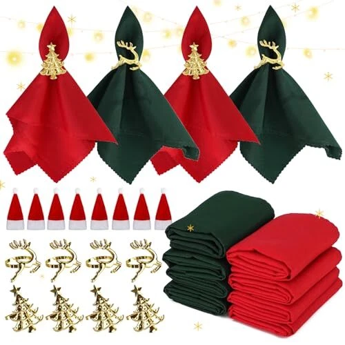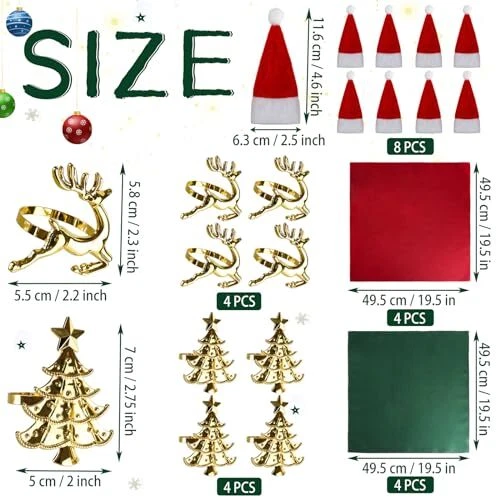 Menu 1. We require immediate payment. 2. We currently accept payment via eBay managed payments only. 3. Once payment is cleared, we will dispatch your shipment within 1-3 business days. Please refer to the "Shipping" tab for more information regarding shipping speed to your destination. 24 Pcs Christmas Napkin Rings Cloth Set, Includes 8 pcs Gold Napkin Rings, 8 pcs Cloth Napkins, 8 pcs Christmas Santa Hats Silverware Holders for Party Decoration, Dinning Table, Holiday, Wedding Product description ✔What You Get - You will receive set of 8 napkins rings with 2 different styles, 4 christmas tree napkin rings, 4 christmas deer napkin rings, 4 red napkins and 4 green napkins, 8 pcs christmas santa hats Silverware Holders. Sufficient quantity and diverse christmas patterns can meet your different needs and enrich your decoration for festive atmosp. ✔Sturdy Napkin Rings - These napkin rings set are made out of metal and rhinestones; it is tough and not easily deformed. Each christmas napkin holder is colorfast and the surface is easily cleaned with a damp sponge or towel, allowing the napkin ring to be used multiple times.Refresh your holiday table with our gold napkin rings and bring a real Christmas together. ✔Fits Most Table Napkins - The napkin rings set is 2.2-2.3" in diameter. Beautiful christmas napkin rings are reusable, have a sophisticated look that never goes out of style, and are sized to fit most napkins. You can match the napkin rings with any color of napkins to give the table a christmas vibe. When the dinner is over, you can clean it and save it for the next time using. ✔Restaurant Christmas Table Decorations - Use our christmas napkin buckles and holders to transform the table into your home. This holiday-themed decor adds a welcoming vibe to any dining space. Get instant festive cheer when you see our beautiful napkin rings on the table.Dress up your dinner table with our diamond napkins rings.Your dining table looks more upscale and beautiful. ✔Christmas Idea Gift - Our napkin rings for table decoration are cute. Christmas napkin rings are ideal gifts for parties, weddings, picnics, festivals, Christmas, New Years, Thanksgiving, receptions and more. Our crystal rings and napkins are gifts you can give to your parents or friends on Thanksgiving or Father's Day and Mother's Day etc. PLEASE MESSAGE US IF YOU HAVE ANY OTHER QUESTIONS, AND MANY THANKS FOR READING ALL OF THIS. Copyright ©#. All Rights Reserved.