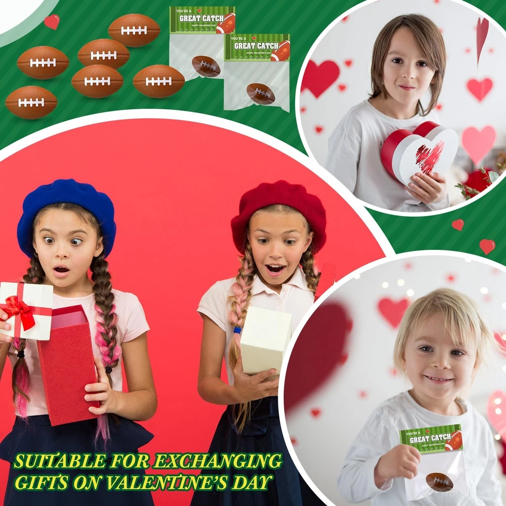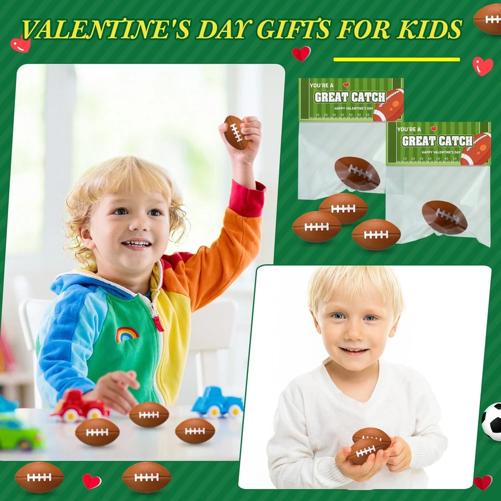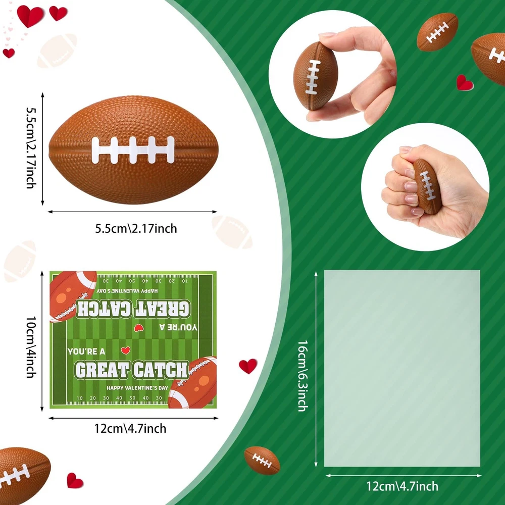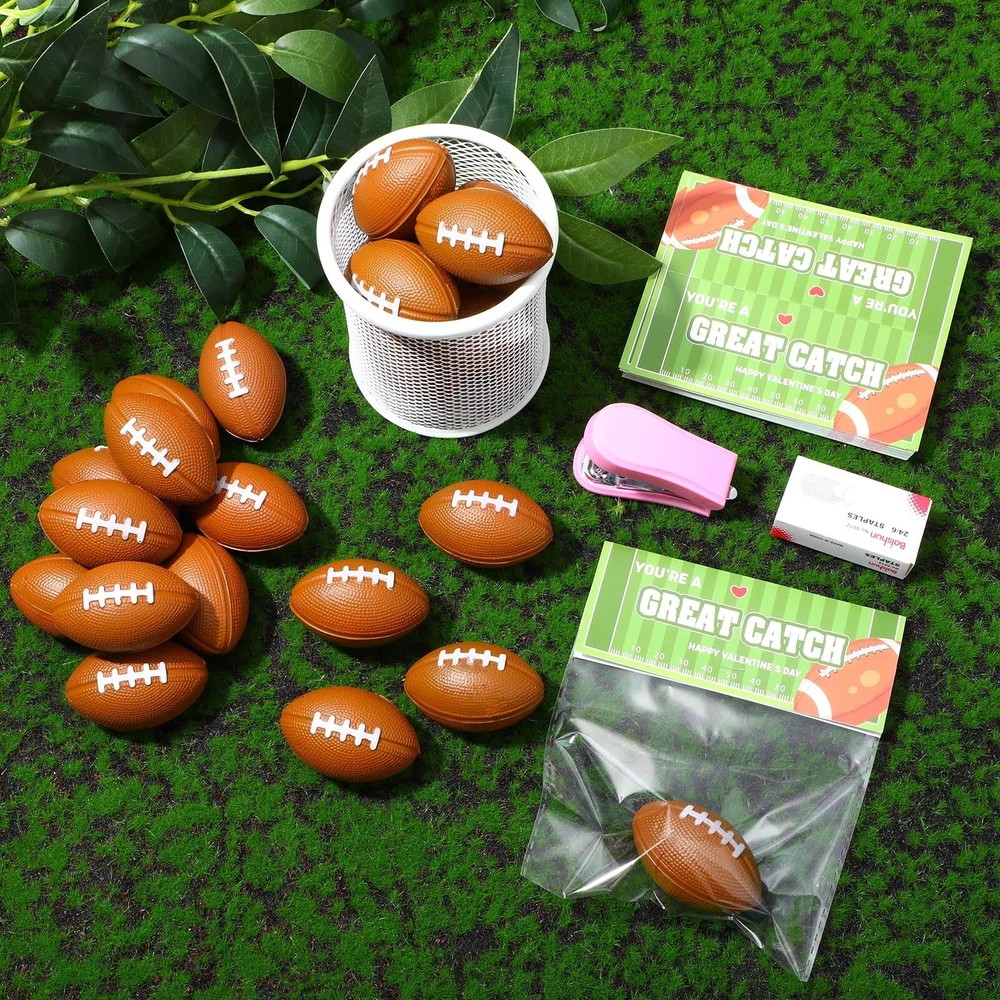 24 Pcs Football Valentines Card Headers 24 Valentine's Day Football Mini Stress Balls for Kids Classroom Exchange Gifts Party Favor Toy Gifts with 100 Mini Staples with Stapler Product Details Style: Football Brand: Hollowfly MPN: Hollowfly-qop1-10dx UPC: Does not apply EAN: Does not apply Material: Paper, Plastic Brand: Hollowfly Unit Count: 24.0 Count Theme: Sports, Love Item dimensions L x W x H: 2.48 x 2.48 x 2.48 inches Occasion: Valentine's Day Manufacturer: Hollowfly Age Range (Description): Kid Product Dimensions: 2.48 x 2.48 x 2.48 inches Item Weight: 1.01 pounds Country of Origin: China Item model number: Hollowfly-qop1-10dx Manufacturer recommended age: 6 years and up Valentine's Day Complete Package: our package includes 24 pcs football stress balls, 24 pcs card headers, 100 pcs clear bags, and 1 set of stapler needles; Each header is designed with a logo and greeting that matches the football; This extensive package ensures you have everything you need to pack and use these stress balls effectively Appropriate Size: the valentine football bulk measures about 2.17 x 1.38 inches (approximately 5.5 x 3.5 cm), the card headers about 4.72 x 3.94 inches (approximately 120 x 100 mm), the bags about 4.72 x 6.3 inches (approximately 12 x 16 cm) and the stapler about 2.68 x 0.98 inches, approximately 6.8 x 2.5 cm Enhance Concentration and Manage Stress: designed meticulously for people, these sports birthday party supplies about playful stress balls are ideal for boosting focus and concentration; They also provide an efficient way of relieving tension and managing daily stress, promoting relaxation and clarity amidst busy routines Thoughtful Gift: these mini anxiety relief balls make a creative gift idea; They bring more than just the greetings but also a fun; These ball stress balls with headers can be ideal gifts for a sports enthusiast or someone who likes unique items Ideal for Gifts: our football stress ball makes a nice gift choice; They come in the color as shown in the picture which is versatile and appealing, making them suitable for various occasions like class party, office party Features: Valentines anxiety relief ball can be played in the home, office, park, courtyard, etc. They are a nice choice for gift bag fillers, football themed party decorations, beach toys, school reward. Football party favor can help you to relax your muscles and nerves especially when you are under the stress of study and work. Specifications: Material: Ball: PU Header: coated paper Bag: plastic Color: as shown picture Size: Ball: about 2.17 x 1.38 inches/ 5.5 x 3.5 cm Header: about 4.72 x 3.94 inches/ 120 x 100 mm Bag: about 4.72 x 6.3 inches/ 12 x 16 cm Stapler: about 2.68 x 0.98 inches/ 6.8 x 2.5 cm Package includes: 24 x Football stress balls 24 x Card headers 100 x Clear bags 1 x Stapler needle set Notes: Manual measurement, please allow slight errors on size. The color may exist a slight difference due to different screen displays.