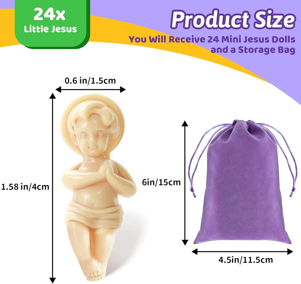 Store New Arrivals Add to Favorite View Feedback Contact Fast deliveries to the customer's home Quality customer service John Make the customers happy! 24 Pcs King Cake Baby Jesus Figure, 1.5'' King Cake Babies Plastic Jesus Doll with Gift Bag, Mini Jesus Figurines in Bulk for Mardi Gras Party King Cake Toppers Decorations Epiphany Gifts Description Convenient 24-Piece Set - This set includes 24 baby Jesus figure and comes with a storage gift bag, ensuring you have enough king cake baby Jesus figures for multiple king cakes or large parties, and are also perfect for gifting to friends and family Ideal Size - These king cake babies Jesus figures are 1.5 inches tall, perfect for the tradition of hiding babies in king cakes, and these small and exquisite Mardi Gras king cake babies are sure to surprise your guests High-Quality Material - These baby Jesus figure mini are made of safe, non-toxic, and odorless plastic. The durable little Jesus doll will retain their beauty over time and become a lasting accent to your Mardi Gras celebration Unique and Charming Design - These king cake baby jesus statue are presented in the shape of hands clasped in prayer, adding a traditional and meaningful element to your king cake. With their small size and fine details, the mini nativity figurines are both adorable and symbolic! Versatile Uses - These tiny Jesus figures are not just for King Cakes. Use them to create Mardi Gras-themed decorations, fun DIY crafts, or game props. These king cake babies also make great party favors and keepsakes, ensuring your guests have lasting memories of your celebration Product Description Add Charm to Your Mardi Gras Package Includes Each pack contains 18 baby Jesus figure, perfect for large parties, enough for you to use on multiple cakes or scatter around the venue as decorations Fun, Symbolic, and Cute These king cake babies Jesus figures are not only symbolic of the Mardi Gras tradition but also adorable, making them the perfect addition to any King Cake Item model number KCB24-J2 Color 24-jesus Country of Origin China Item Weight 1.76 ounces Manufacturer recommended age 15 years and up Package Dimensions 4.13 x 3.9 x 1.69 inches ABOUT US We offer the best prices around on high quality products. Our E-store includes media such as books, movies, music and games while offering electronics, toys, sporting apparel, clothing, tools, general home, garden items and more. SHIPPING We are always working hard to ensure your package arrives as soon as possible. Please understand that some factors like weather, high postal traffic, and the performance of shipping companies are outside of our control. We offer free shipping to the lower 48 states and ship within 2 business days of payment, usually sooner. We do not accept P.O. Boxes. Please provide a physical address. For shipping outside of the continental USA, we only use eBay's Global Shipping Program. The item is shipped to KY and then sent to the rest of the world. International customers are responsible for all duties and taxes. Continue to 'check out' to calculate costs for shipping the item to your country. Messages regarding eBay's Global Shipping Program MUST be directed at eBay EXCLUSIVELY. RETURNS We offer a 30-Day Return Policy on items in which you are not completely satisfied with. You have the option of a full-refund or an exchange of the item. No returns are available on items shipped outside of the USA PAYMENT We accept PayPal. CONTACT US This page content is yet to come Please ad us to your favorite seller and visit again later Thank You CUSTOMER SATISFACTION We try our very best to make sure every customer is completely satisfied. If there's a problem, message us! We're happy to help. WE ACCEPT
