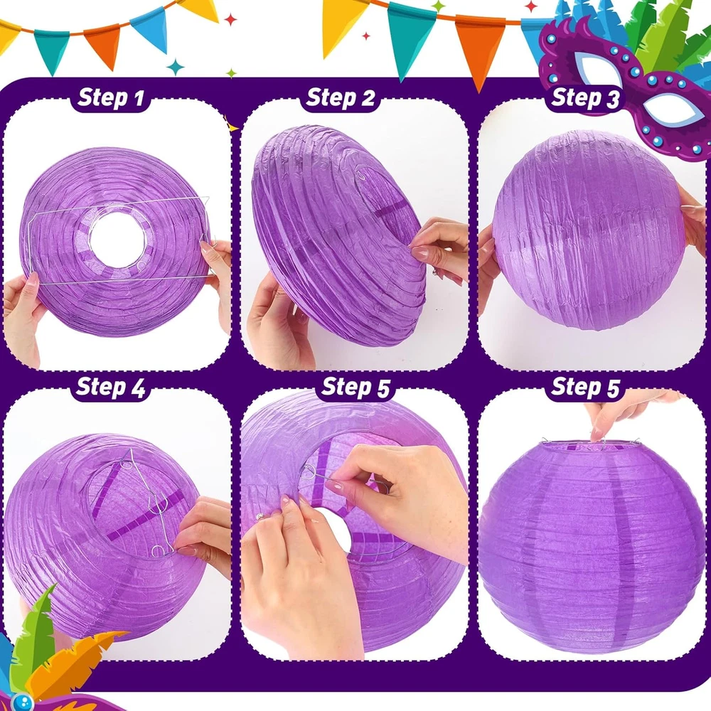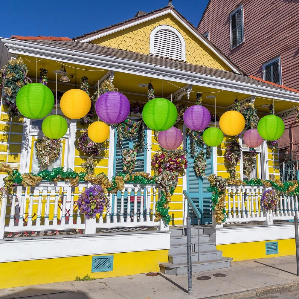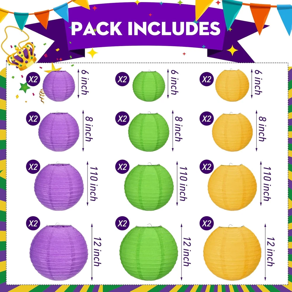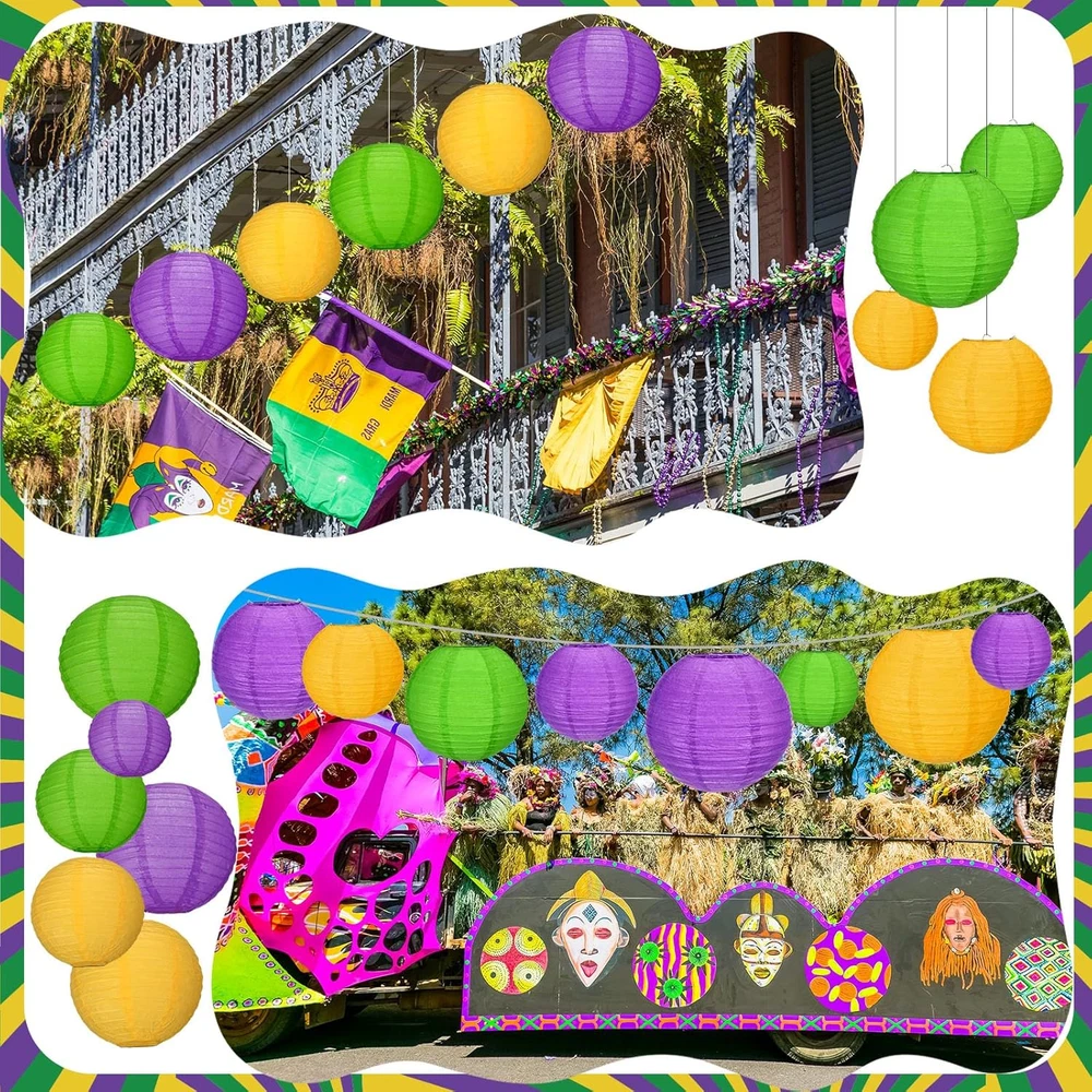 24 Pcs Mardi Gras Decorations Mardi Gras Paper Lanterns Yellow Green Purple Hang