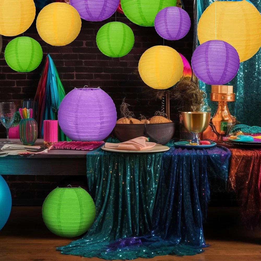 Store New Arrivals Add to Favorite View Feedback Contact Fast deliveries to the customer's home Quality customer service John Make the customers happy! 24 Pcs Mardi Gras Decorations Mardi Gras Paper Lanterns Yellow Green Purple Hanging Paper Lantern Assorted round Decorative for Mardi Gras Party Favors Decoration Outdoor Supplies Description Ideal Mardi Gras Decorations: you will receive 2 pcs of 12 inch purple paper lanterns, 2 pcs of 12 inch green lanterns, 2 pcs of 12 inch yellow lanterns, 2 pcs of 10 inch purple lanterns, 2 pcs of 10 inch green lanterns, 2 pcs of 10 inch yellow lanterns, 2 pcs of 8 inch purple lanterns, 2 pcs of 8 inch green lanterns, 2 pcs of 8 inch yellow lanterns, 2 pcs of 6 inch purple lanterns, 2 pcs of 6 inch green lanterns, 2 pcs of 6 inch yellow lanterns, 3 colors and 4 sizes in total Quality Material: the green, purple and yellow paper lanterns are made of quality paper, reusable and reliable, not easy to break, fade or deform, can serve you for a long time; The Mardi Gras theme elements and classic Mardi Gras theme colors will make your party more attractive, leaving a deep impression on your guests Easy to Assemble: each of the green, yellow and purple paper lanterns is equipped with a supporting frame, the paper lantern you received is flat and can be easily opened to restore to the round shape, ideal for walls, windows, mantel and party table decoration Enjoy the Fun of DIY: you can use some light strings to decorate these hanging paper lanterns to make them look more attractive at night, please note that LED lights are not included Wide Range of Application: the assorted round hanging paper lanterns are suitable for a variety of occasions, such as Mardi Gras, birthday party, baby shower, Halloween party, wedding party decoration, creating a festive and cheerful atmosphere Features: You can use the hanging paper lanterns to decorate your classroom, office or home, creating an aesthetic and artistic atmosphere. Presenting a blend of functionality and aesthetic appeal, the hanging paper lanterns make for an ideal gift, be it for housewarming, birthdays, weddings, or just a simple appreciation gift. Specifications: Main material: paper Main color: green, purple, yellow Size: about 6 inches, 8 inches, 10 inches, 12 inches in diameter Package includes: 24 x Hanging paper lanterns Notes: Manual measurement, please allow slight errors on size. The color may exist a slight difference due to different screen displays. Part Number -Assorted Round-01 Batteries Required? No Mounting Type Ceiling Mount Power Source wired_electric Item Package Quantity 24 Color Yellow, Green, Purple Product Dimensions 11.81 x 11.81 x 0.78 inches Material paper Country of Origin China Item Weight 1.52 pounds Number Of Pieces 24 ABOUT US We offer the best prices around on high quality products. Our E-store includes media such as books, movies, music and games while offering electronics, toys, sporting apparel, clothing, tools, general home, garden items and more. SHIPPING We are always working hard to ensure your package arrives as soon as possible. Please understand that some factors like weather, high postal traffic, and the performance of shipping companies are outside of our control. We offer free shipping to the lower 48 states and ship within 2 business days of payment, usually sooner. We do not accept P.O. Boxes. Please provide a physical address. For shipping outside of the continental USA, we only use eBay's Global Shipping Program. The item is shipped to KY and then sent to the rest of the world. International customers are responsible for all duties and taxes. Continue to 'check out' to calculate costs for shipping the item to your country. Messages regarding eBay's Global Shipping Program MUST be directed at eBay EXCLUSIVELY. RETURNS We offer a 30-Day Return Policy on items in which you are not completely satisfied with. You have the option of a full-refund or an exchange of the item. No returns are available on items shipped outside of the USA PAYMENT We accept PayPal. CONTACT US This page content is yet to come Please ad us to your favorite seller and visit again later Thank You CUSTOMER SATISFACTION We try our very best to make sure every customer is completely satisfied. If there's a problem, message us! We're happy to help. WE ACCEPT