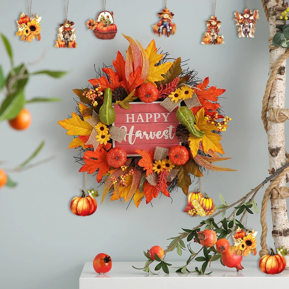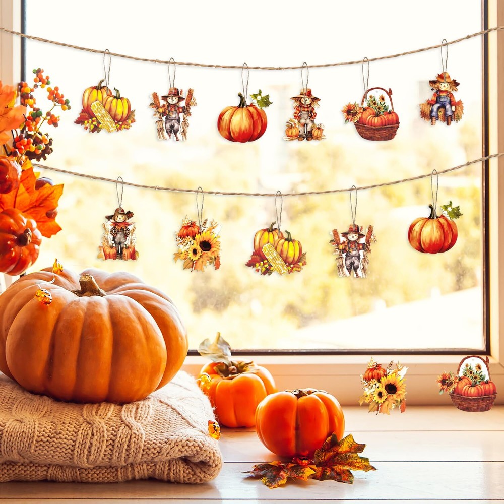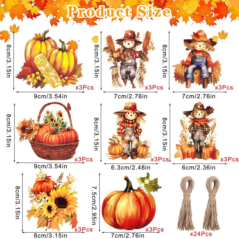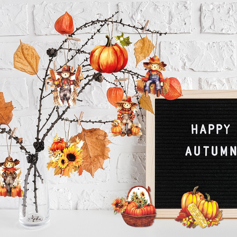 Features: These thanksgiving day ornaments are printed with classic thanksgiving Day themed elements such as scarecrow, sunflower, pumpkin and so on, which will help enhance the festive atmosphere. Specifications: Size: as picture shown Color: as picture shown Package including: 24 x scarecrow vwooden hanging ornament Note: Manual measurement, please allow slight errors on size. The colors may exist slight difference due to different screens. Reliable material: our fall scarecrow vintage wooden hanging ornaments are made of quality wood material, reliable and thick, solid and serviceable with smooth surfaces, will not easy to break or fade and can be used for a long time Classic design: these thanksgiving day ornaments are printed with classic thanksgiving Day themed elements such as scarecrow, sunflower, pumpkin and so on, which will help enhance the festive atmosphere Easy to use: each autumn tree ornaments has a hole on the top for the rope to easily pass through, so you can hang it on the wall, front door, window, fireplace and more easily Wide applications: these adorable fall tree hanging ornaments are really suitable for any fall party, fall birthday party, baby shower, fall thanksgiving, halloween, fall farmhouse decor, home decor or also can be use as exquisite gift to your friends or familes Package includes: you will receive 24 pieces of pumpkin ornaments for tree in 8 styles, each style has 3 pieces, various styles and enough quantity can meet your decorative needs