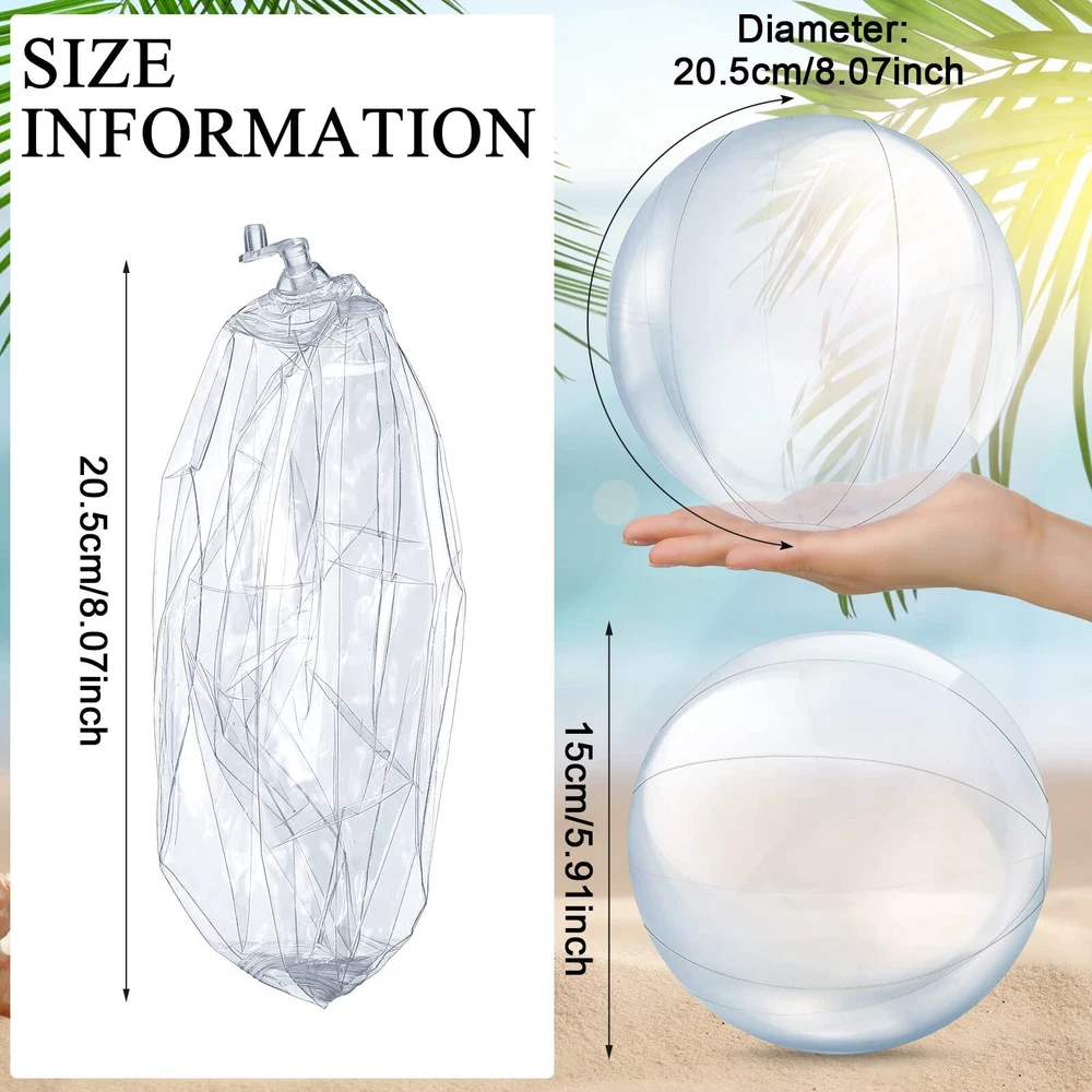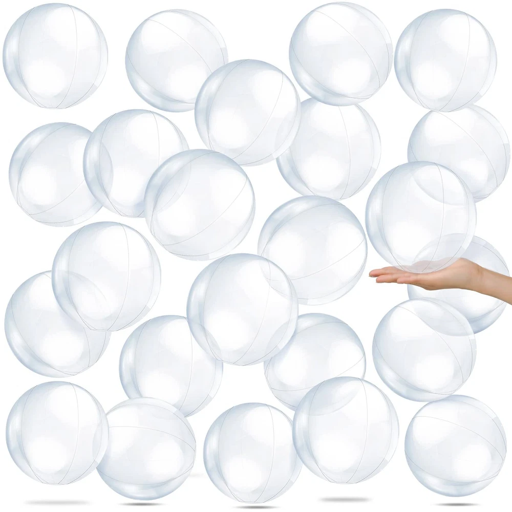 Features: Nice DIY balls: Our giant inflatable beach ball is great for you to put in some colorful confetti before inflating, or paint some adorable patterns on the ball's surfaces, which can make the ball more attractive and novelty. Party ornaments: You can put these inflatable plastic balls on the floor or rooms as fairy party decorations, making your party more wonderful and can easily get people's attention, adding a cheerful and exciting atmosphere to your party scene. Specifications: Material: PVC Color: clear Size: about 6 inches after inflating Package includes: 24 x Pool beach ball Notes: Manual measurement, please allow slight errors on size. The color may exist a slight difference due to different screen displays. Please keep the balls away from pointed objects when inflating What You Will Get: the package comes with 24 pieces of beach balls, which measure about 6 inches after inflating; Adequate quantities are provided to meet your summer or seaside party supplies, or you can share with your mates Bring Fun to You: our inflatable beach ball can make your summer activities more fun, are appropriate for most outdoor events, such as beach vacations, pool parties, birthday parties, carnivals, gym classes and more, giving you a wonderful playing experience Easy to Use: these beach balls for pool can be inflated with an air pump, which is not included in the package, and allow you to play for a long time; And this big beach ball can be deflated and folded when not in use, is easy for you to carry and will not take up storage space Reliable Material: made of quality PVC, our beach ball is lightweight and not easy to break, solid and serviceable, odorless and safe for you to hold in your hands; Please keep the balls away from pointed objects when inflating Interesting Gifts: the beach balls bulk are cute and practical, which can be applied as a nice party game prop and ideal presents for you to send your family and friends, making them feel endless joy in the party