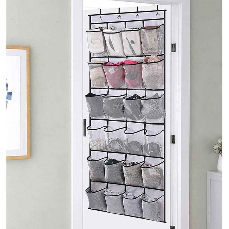 Description: Product Name: Storage Hanging Bag Material: Non-woven Fabric Size: 43*57cm Color: White Pockets: 24 Features: There are 24 roomy pockets more convenient than 20 pockets shoe organizer. Each pocket measures 7.8"H x 5.4"W x up to 2" depth. Very spacious for shoes like sandals, running shoes . The mesh pockets make it easy to see items even in a dim closet. There are 4 holes in the top and 4 hooks fit them. It can be fold to small size, works well for travel cruise cabin door, bifold door. Package includes: 1 Pcs Storage Hanging Bag Notes: 1. Please allowed 1-3mm differences due to manual measurement, thank you! 2. Due to the difference between different monitors, please understand that the picture may not reflect the actual color of the item