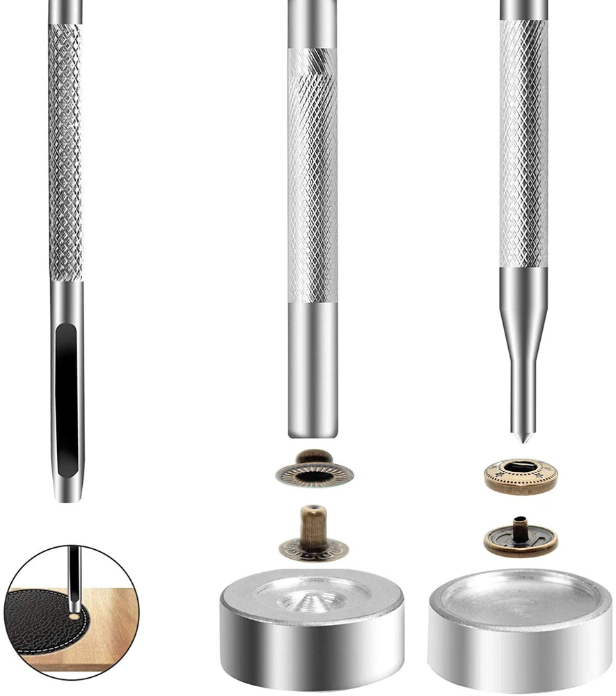 Specification: Item: Leather Snap Fasteners Kit Quantity: 24sets Material: Brass Diameter: 15mm Color: Antique Brass Features: 1. Beautiful color and pattern, it will be a great decoration of you clothes 2. Used for leather craft, clothing, handbags, leather straps, DIY Craft etc 3. Our leather snap fasteners are made of durable and sturdy brass material, will not rust and can be used for a long time 4. Our metal snap fasteners have high gloss, smooth surface and no burrs to the touch, looks very classy and elegant Package included: 24sets x Leather Snap Fasteners Kit 4pcs x Installation Tools 1pcs x plastic storage 【Leather Snaps Color】 Antique Brass 【Item Size】 The diameter of the cap is about 15 mm/0.59 inch 【Premium Material】 The Leather Snap Fasteners are made of Brass, non-rusting, remains like new even after long time use 【Enough Quantity】 Come with 24 sets complete heavy duty snaps with 4 setter tools in a box storage. Each set are made of cap, socket, close post and stud 【Widely Application】 The leather fasteners can meet your various leather decorative demands or clothing repair supplies, such as jackets, jeans, belts, hats, pet clothes, bags, DIY craft decoration