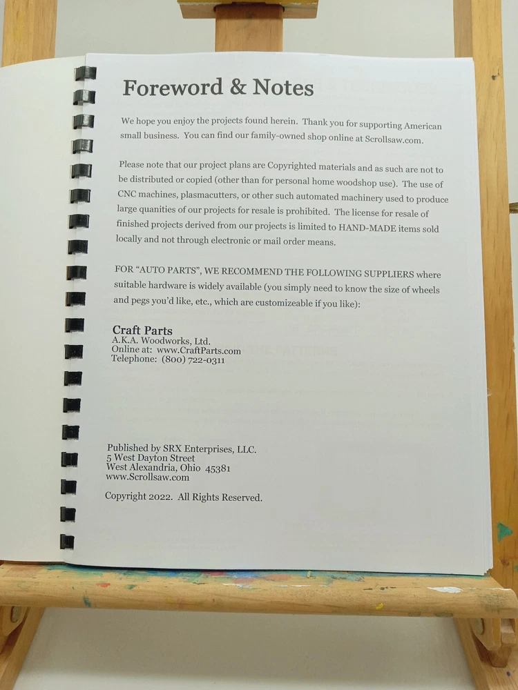 24 FULL SIZE SHELF PROJECT PATTERNS for WOODWORKERS & SCROLLSAWYERS. These shelves sell like crazy at arts and crafts show! See Photos for more detail This book is a must-have for anyone interested in mastering the art of MAKING WOODEN TOSYS Topics include - Tips & Techniques - Hardwoods Vs. Plywoods - Sanding - Using Patterns - Repositional Spray Adhesive - Drilling Started Holes - Stack Cutting - Sawing Thin Woods -Veining - Auxiliary Tables - Finishing Techniques. Each project includes bill of materials, cutting sizes, instructions, and full size patterns. The book features loose-leaf pages, measuring 8.5 x 11 inches and laid flat with a comb bind. The patterns are in English and International Copyrights held by SRX Enterprise LLC. The book is a first edition published in 2022 by SRX Enterprises, LLC. All Rights Reserved. Rick Longabaugh illustrated the patterns, making it easy to follow along and create stunning projects