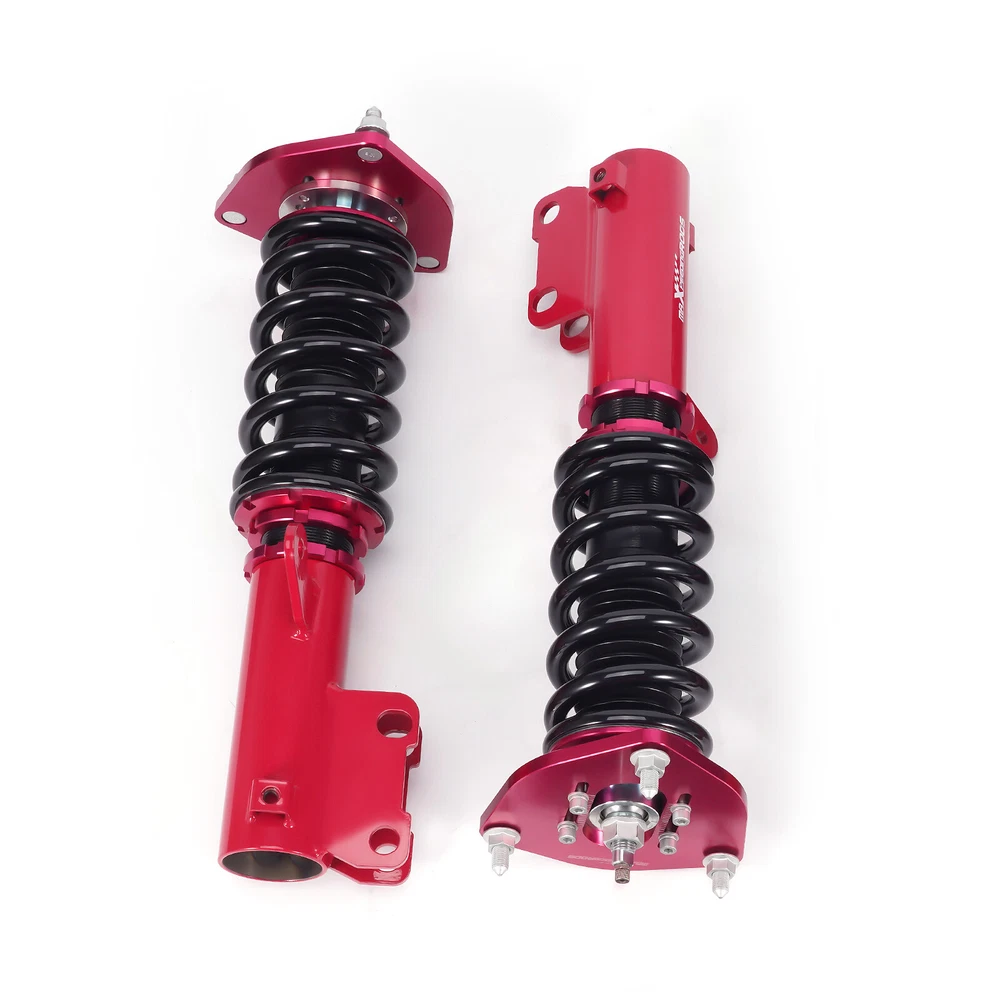 ZJPSS 24 Step Damper Coilovers Shocks Lowering Kit For Mitsubishi Eclipse 2000-2005 Coilovers 24 Way Damper Adjustable Lowering Kit for Mitsubishi Eclipse 2000-2005 Camber Plate with Pillow Ball Mount Provides More Precise Feel From Suspension And Steering Top Camber Plate with Pillow Ball Mount Provides More Precise Feel From Suspension And Steering Rebound Damping Force Adjustable 24 Step To Adjust Soft / Hard Adjustment According To Your Preference. Anodized Shock Body With Anti-Corrosion Coating Manufactured From High Quality T-6061 Billet Aluminum With Anodized Finish For Superior Strength And Corrosion Protection. Specification Front Spring rate 10 kg/mm (556 lbs/in) Rear Spring rate 7 kg/mm (392 lbs/in) Adjustable camber plate Yes Damping adjustable Yes, 24 levels of rebound damping force Height adjustable Yes, lowering 25-75mm depending on the vehicle models Package included 2 Front + 2 Rear Warranty 2 Years Maxpeedingrods' street coilovers are designed and developed for all motoring enthusiasts that want excellent handling without sacrificing comfort. This suspension system is ideal for daily driving and occasional, light track use. High quality components are adopted to ensure product durability and stability. Each application is fully test fitted and completely road tested to guarantee all our customers perfect performance and comfort expectations. Features 24 Clicks of Rebound Force Adjustment ---- Adjust Soft / Hard Adjustment According To Your Preference Height adjustable---lower your car 1-3 inches (depending on vehicle models) to get a performance ride Independent Ride Height and Spring Pre-load Adjustments Twin-Tube System for Comfortable Ride on Streets Coated finish to avoid rust Heavy Duty Steel Lower Mounts Simple install, easy to adjust. Application For Mitsubishi Eclipse (3rd-Gen) D53A/D52A 2000-2005 Specification Front top mount: Pillow ball with camber plate Rear top mount: standard rubber Damping adjustable: Available, 24 levels of rebound damping force Camber adjustable: Available Height adjustable: Yes, lowering 25-75mm depending on the vehicle models Front Spring Rate: 10 kg/mm (556 lbs/in) Rear Spring Rate: 7 kg/mm (392 lbs/in) Spring length Front: 200mm Spring length Rear: 200mm Spring Preload advised: 7-10 mm Color: Red body with black spring Package included 2 x Front coil-overs 2 x Rear coil-overs 1 x Allen wrench 2 x C spanners ★ 30-day Money Back & 12-Month Replacement Guarantee. Please feel free to contact us if there is any question. Height Adjustable Lowering Kit; 24 Clicks of Rebound Damping Force Adjustment; Independent Ride Height And Spring Tension Settings; High Rigidity 55CrSi Steel Cold-bent Springs; Anodized Shock Body With Anti-Corrosion Coating; Top Camber Plate with Pillow Ball Mount Provides More Precise Feel From Suspension And Steering; Full 1 Year Limited Warranty From Date Of Purchase. Other items you might also like MaXpeedingrods Coilover Suspension Lowering Kit For Mitsubishi Eclipse 2000-2005 Shipping Terms of Sales Payment Contact us All orders will be shipped within 1 business day after payment has been processed. For orders placed before 5:30 AM PST on business days, most items will be shipped out on the same day. All orders will be shipped with a tracking number via USPS, UPS, or FedEx Express and delivered within 2-6 business days We do not ship to P.O. Boxes, APO/FPO addresses, or Military Mail Boxes. Please ensure your address is confirmed by PayPal before checkout, as we only ship to confirmed addresses. 30-day free return and money back guarantee If you are not satisfied with your purchase, you can return the item with its original packaging to us for a full refund with no restocking fee. Please note that the return cost should be paid by the seller. One Year Unlimited Mileage Quality Guarantee If you receive incorrect items, items that are damaged during transportation, or defective items, we will accept returns and cover the return freight. Please note that the return cost should be prepaid by the buyer. After inspecting the faulty item, we will issue a refund of the return cost to the buyer. We offer a full refund or replacement for all faulty items, which includes the cost of original shipping. Please contact us before initiating a return. Our representatives will provide you with detailed instructions on how to proceed. Our guarantee covers only the cost of the item. We are not responsible for installation or other fees, such as labor, towing, additional repairs, or related expenses. We only accept payment through Paypal for all orders, which should be made through eBay. Paypal offers various payment methods, including credit card, direct debit, VISA, and others. For more information, please visit Paypal. Our customer service center is open 24 hours a day, seven days a week. If you have any questions, please don't hesitate to contact us. We are dedicated to providing excellent customer service and will do everything we can to ensure your satisfaction.