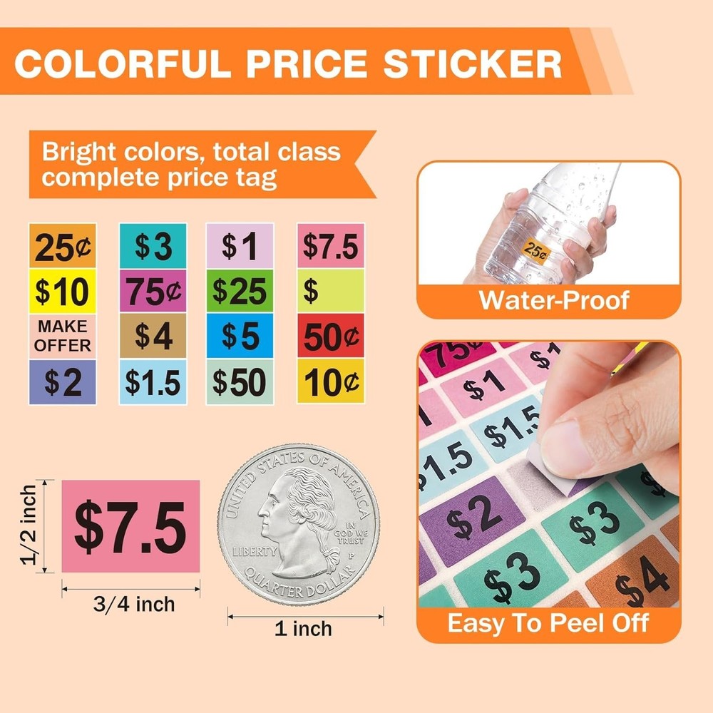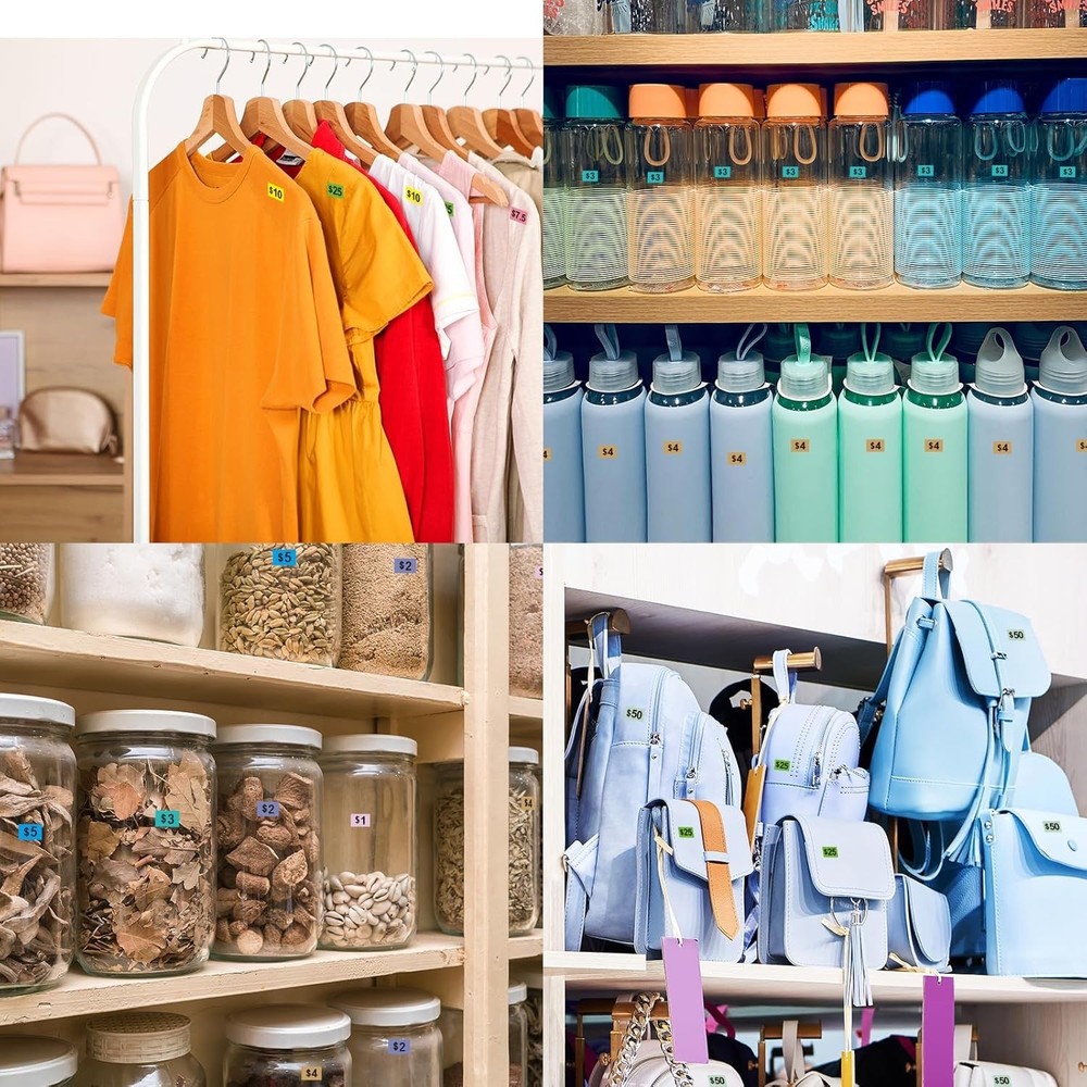 2400Pcs Garage Sale Stickers1/2"×3/4" Yard Sales Price Stickers Rectangle Pre... Product Details: Make pricing quick, clear, and hassle-free with this 2400‑piece set of Garage Sale Stickers. Perfect for yard sales, thrift stores, craft fairs, or any event where items need clear, visible pricing. Each sticker is a compact 1/2" × 3/4" rectangle, providing enough space for prices while keeping items looking tidy and organized. These stickers are designed for easy application and removal, sticking securely to most surfaces but peeling off without leaving sticky residue. Whether you’re selling books, clothes, toys, or household items, these brightly colored stickers make your pricing stand out and speed up transactions. Ideal for garage sales, estate sales, flea markets, school fundraisers, and craft shows, this bulk set ensures you’ll have enough stickers for even the largest sales events. ⭐ Key Features 🟢 Massive 2400‑Piece Pack : Enough stickers to handle multiple garage or yard sales with plenty to spare. 📏 Perfect Size : Each sticker measures 1/2" × 3/4", compact yet large enough for clear price visibility. 🎨 Bright & Noticeable : Eye-catching colors make your prices easy to see at a glance, attracting buyers and speeding up sales. 🖊️ Writable Surface : Compatible with pens, markers, or price label guns for quick customization. 🟠 Easy to Apply & Remove : Sticks firmly to most surfaces but removes cleanly without sticky residue. 🏡 Versatile Use : Perfect for yard sales, garage sales, flea markets, thrift shops, craft fairs, and more. 💰 Time & Cost Saving : Bulk pack reduces the need for constant sticker replacement, saving time and effort during busy sales events.