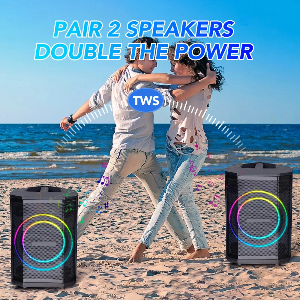 2400W Portable Tiltable Bluetooth Speaker Subwoofer Heavy Bass Sound System +Mic Features 🔊 Tiltable Design: Easily adjust the speaker angle for enhanced acoustics and a personalized listening experience. 🎶 Party Mode: Activate the sound-activated LED ring light to add an electrifying visual element to your gatherings. 🎚️ Audio Settings: Fine-tune your sound with volume, treble, and bass controls. Connect via Bluetooth, USB, TF, FM, or auxiliary for versatile listening. 📡 Wavesync Technology: Pair two SP-880RBT speakers for a powerful sound output that fills any space. 🔋 High Capacity Battery: Enjoy up to 5 hours of playback at 70% volume with the built-in 3000mAh battery—perfect for extended parties. 🏕️ Portable & Versatile: Take the music along, whether at backyard barbecues, beach parties, or camping trips! Specifications Material: ABS Size: 13.8 x 10.3 x 11 inches Weight: 8 LB Color: Black Charging Time: 5 hours Playing Time: 3-7 hours Audio Controls: Volume, Treble, Bass Light Feature: Sound-activated LED ring light with dedicated switch Sound Board: Dual channel Main Inputs: Bluetooth, USB, TF, FM, AUX Auxiliary Input: 3.5mm Jack Microphone Input: One 1/4” jack with volume and echo controls Woofer: 8” with a 100 oz magnet Tweeter: Piezoelectric Music Power: 2400 Watts Battery: Built-in 3000mAh 7.4V Lithium-ion Package Includes 1 x 8" Speaker 1 x Wireless Microphone 1 x Remote Control 1 x AC Adapter Shipping Payment Return & Refund policy Feedback Customer Support - Contact Shipping FREE SAME BUSINESS DAY MONDAY- FRIDAY SHIPPING FROM USA. All orders and payments received before 4PM EST (1PM PST) will be shipped the same business day. All other orders within 1 business day. No shipping on Weekends or US Public Holidays. No responsibility for any custom duty Shipping information will be updated when available. Payment We accept payment via PayPal. Use PayPal at checkout to pay with credit or debit. Immediate payment is required. Shipping will be arranged within 1 business day once payment is cleared. Return & Refund policy 1.We stand behind our items and offer 60 days warranty. All items are in new and working condition unless specified otherwise elsewhere in the description. 2.All Returns - defective or otherwise - MUST BE PREAUTHORIZED to guarantee refund or exchange. Please contact us to get an authorization and return address. 3.Buyer agrees to pay for the cost of re-shipment for undeliverable or wrong addresses. 4.Buyer is responsible for Return Postage as well as a 20% restocking fee if return/replacement is not a result of our mistake such as wrong item. 5.Replacement or Refund will be made upon receipt of the returned item. Please include tracking number so we can process ASAP. If you do not wish to wait for a replacement, please repurchase the item. 6.ALL REFUNDS will be processed via PayPal. Please double check via PayPal history and transaction for confirmation. PayPal will send it back to whatever you used to pay within 3-5 days. Feedback We strive to provide the best products and services. If anything about your transaction did not meet expectations, please CONTACT US and give us the opportunity to make things right. We are always here to help. Customer Support - Contact Please do not hesitate to CONTACT US. You can message 24/7 on eBay for all questions and inquiries. We will get back to you within 1-2 business days at the latest.