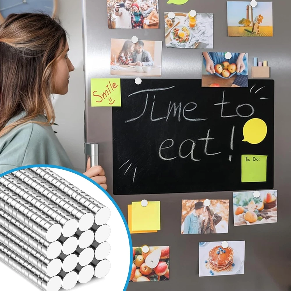 1. These tiny magnets are surprisingly strong! I use them for everything from fridge notes to craft projects. The brushed nickel finish looks clean and they haven't rusted at all. Perfect size and the large quantity is a fantastic value.