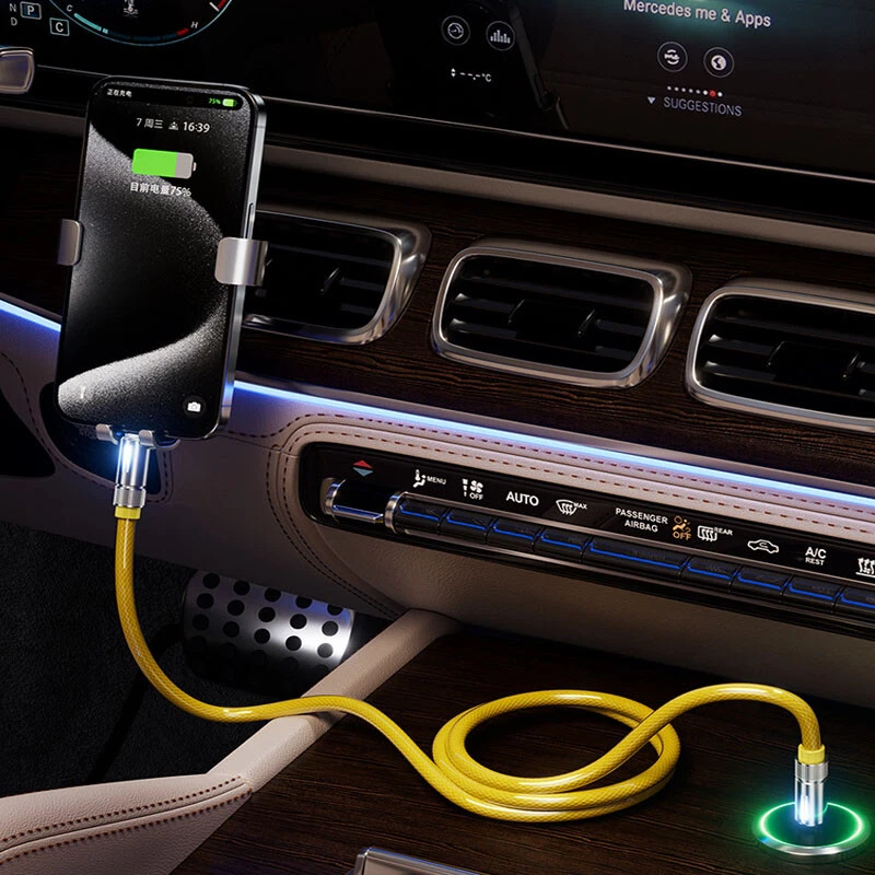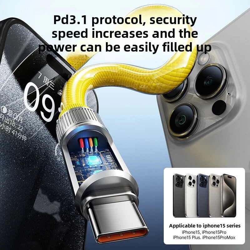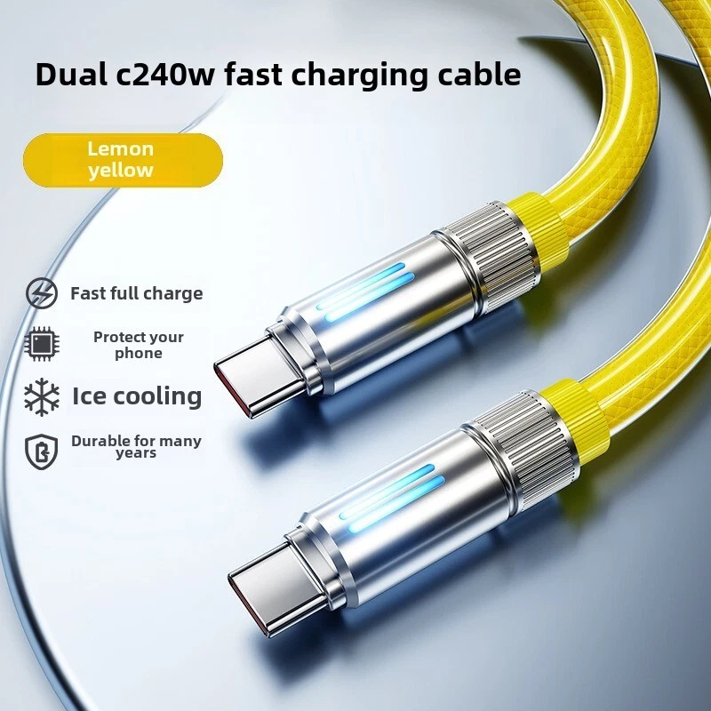 Description: 240W fast charging is universal High power to low power 240/140100/60/30W device data cable is fully compatible Multi-protocol full device support can be switched between mobile phones, tablets and other devices 240W fast charging PD full series compatible Support iPhone7-iPhone15 Samsung and other mobile phones compatible Colorful atmosphere lights make night charging more convenient With soft colorful atmosphere lights, you can clearly find your phone when charging at night Zinc alloy material anti-oxidation process Plug and unplug at will, intact as new, full of texture Bend at will, long-term use without breaking After 20000+ Bending test, wear-resistant and non-breakage, longer service life Thickened gold-plated copper wire, faster and more stable charging Increased conductive area, reduced resistance, smoother charging and transmission, more stable and faster Product name: liquid silicone data cable Interface: Type-C/USB-A/8pin Function: charging + data transmission Material: zinc alloy + liquid silicone Transmission speed: 480Mbp/s Current: 2.4A/5A Length: 1.5m Color: yellow Applicable models: Applicable to Apple/Android/Type-C interface devices Includes: 1 1.5m 240w liquid silicone data cable
