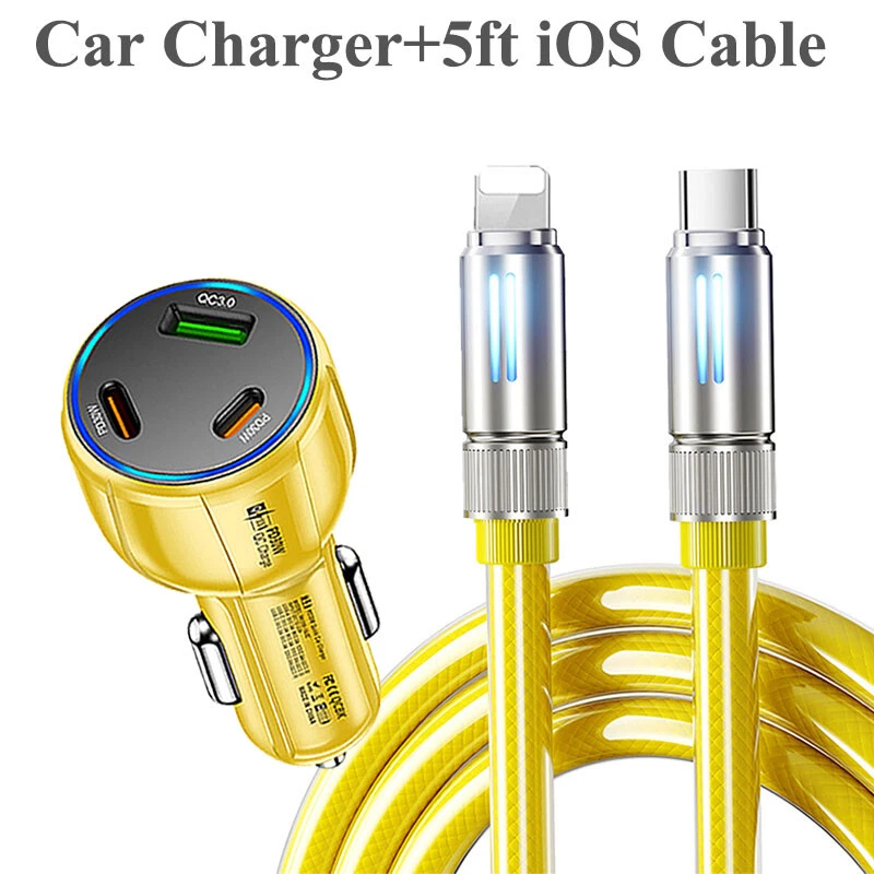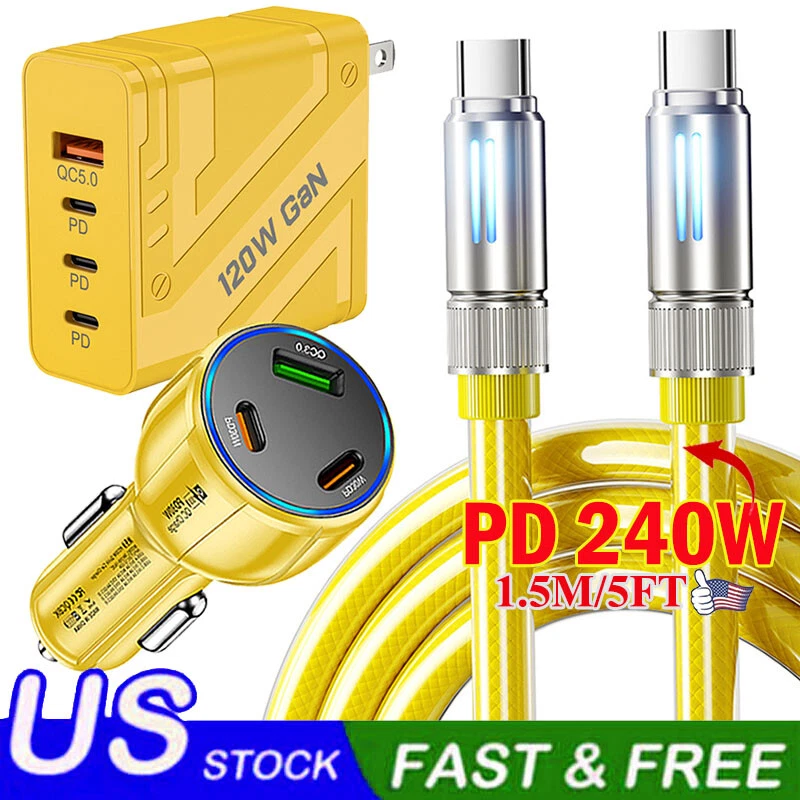240W 4-Port USB C Fast Wall Charger Block ,PD 5FT Cable For All Cell Phone iPad