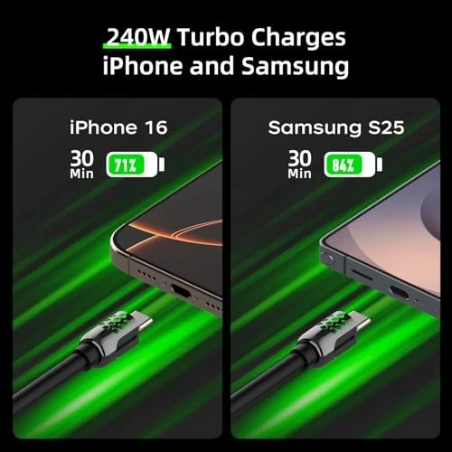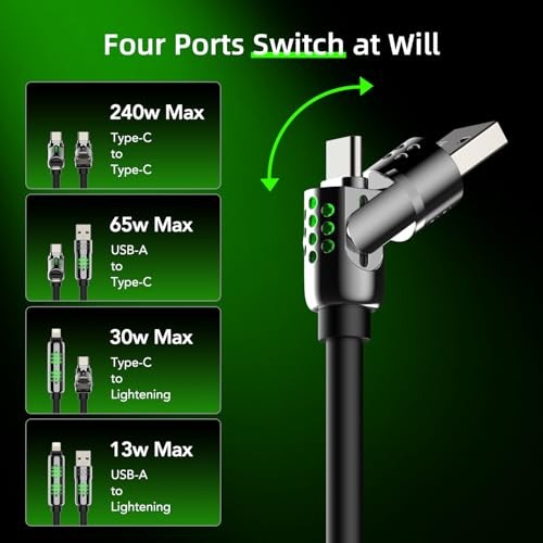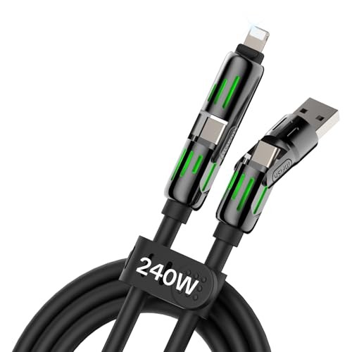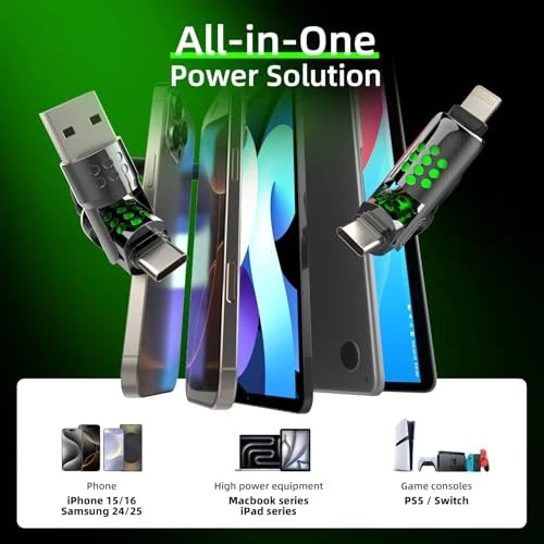 Return Policy Fast Delivery Trusted seller 4-in-1 USB C Charging Cable 240W Fast Charger for iPhone 16/15/14, Samsung Galaxy, MacBook, iPad - 6.6Ft Multi Charger Cord with USB-A & Type-C, High-Speed Data Sync (Black) Product Description 4-in-1 Charging Cable: Universal Compatibility for iPhone 16/15, Samsung Galaxy, MacBooks, iPads, and tablets—one cable replaces four. Perfect for travelers, gamers, and multi-device households. No more tangled wires cluttering your desk, car, or backpack 240W Ultra-Fast USB-C Charging: Dual USB-C ports deliver 240W max power: Charge a MacBook Pro to 86% in 35 minutes or a Samsung S23 to 96% in record time. No more waiting—stay powered through deadlines, flights, or gaming marathons Sync & Charge in One: 480Mbps USB 2.0 speeds let you transfer photos, videos, and files between devices seamlessly. Ideal for creators syncing iPad edits or professionals backing up Galaxy footage 60,000-Bend Durability: Food-grade silicone + aircraft-grade aluminum survive drops, bends, and daily abuse. The stylish leather strap keeps your cable tangle-free—outlast cheap cables that fray in weeks Gamer-Approved RGB Glow: RGB color-shifting lights (blue/red/green/purple) pulse softly in the dark—find your cable instantly at night or add a gaming vibe to your setup. Gentle glow won’t disrupt sleep Shipping Returns Payment Shipping Shipping is FREE to all addresses other than APO/PO boxes in the lower 48 states. All our stock ships from US-based warehouses. Shipped via USPS or UPS (depending on location and package weight) Unless stated otherwise, all orders will ship within 24-72 hours of your payment being processed. Check our feedback to see the great reviews of FAST shipping we offer. Returns Seller does not accept returns Payment We currently accept payment via eBay managed payments only. Once payment is cleared, we will dispatch your shipment within 1-3 business days. Please refer to the "Shipping" tab for more information regarding shipping speed to your destination.