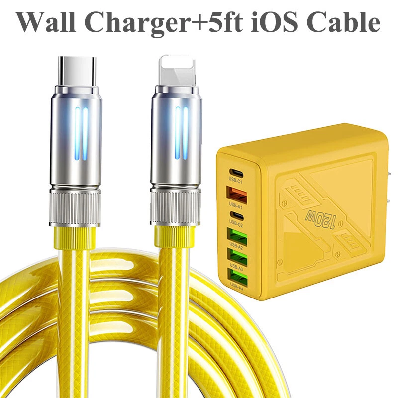 Description: 240W fast charging is universal High power to low power 240/140100/60/30W device data cable is fully compatible Multi-protocol full device support can be switched between mobile phones, tablets and other devices 240W fast charging PD full series compatible Support iPhone7-iPhone15 Samsung and other mobile phones compatible Colorful atmosphere lights make night charging more convenient With soft colorful atmosphere lights, you can clearly find your phone when charging at night Zinc alloy material anti-oxidation process Plug and unplug at will, intact as new, full of texture Bend at will, long-term use without breaking After 20000+ Bending test, wear-resistant and non-breakage, longer service life Thickened gold-plated copper wire, faster and more stable charging Increased conductive area, reduced resistance, smoother charging and transmission, more stable and faster Product name: liquid silicone data cable Interface: Type-C/USB-A/8pin Function: charging + data transmission Material: zinc alloy + liquid silicone Transmission speed: 480Mbp/s Current: 2.4A/5A Length: 1.5m Color: yellow Applicable models: Applicable to Apple/Android/Type-C interface devices Includes: 1 1.5m 240w liquid silicone data cable