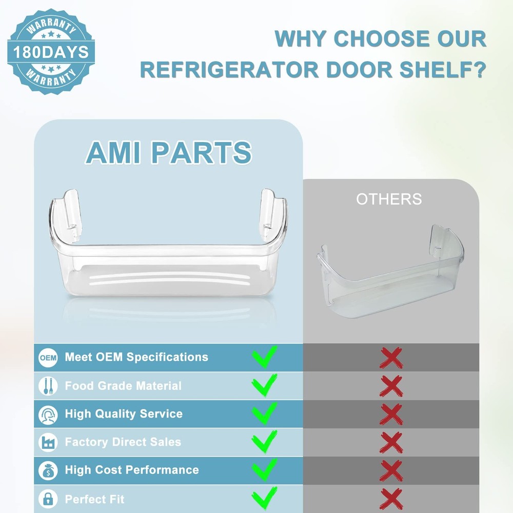 Part Information: 242126602 Refrigerator Door Bin Part(Side Shelf Rack) 242126602 Refrigerator Door Bin specifications: Material: Premium Resin Quantity: Pack of 2 242126602 Refrigerator Door Bin> Connection Method: Straight connection Fixes the following symptoms: ❶Prevent breakage ❷Anti-aging ❸Corrosion resistance ... Please Note: This is intended as a guideline only, as other items can cause the same symptoms Worry-free installation: You don't need a professional repairman to fix refrigerator. Even the homeowner can perform the installation process easily and quickly. If you are not sure how to install, watch the related video to help you Apply to: with Frigidaire Refrigerators: DGHX2655TF (0, 5, 6, 8, 9, A, B, C) FFSS2615TD (0, 1, 2, 3, 4) FFSS2615TE (0, 1, 2, 3, 4) FFSS2615TP (0, 1, 2, 3, 4) FFSS2615TS (0, 1, 2, 3, 5) FFSS2625TE (0, 1, 2, 3) FFSS2625TP (0, 1, 2, 3) FFSS2625TS (0, 1, 2, 3, 5, 6) FGSS2635TD (4, 5, 6, 7, 8, 9) FGSS2635TE (4, 5, 6, 7, 8) FGSS2635TF (0, 1, 5, 6, 7, 8, A, B) FGSS2635TP (4, 5, 6, 7, 8) LFSS2612TD (0, 1) LFSS2612TE (0, 1, 2, 3, 4) LFSS2612TF (0, 1, 2, 3, 4) LFSS2612TP (0, 1, 2, 3) LGHX2636TD (0, 8, 9) LGHX2636TF (0, 4, 5, 7, 8, 9, A, B) CRSE263T (B0, D0, S0, W0) FGHS2631PF5A NOTE: The above brand names are only used to prove compatibility 【Model Reference】Fits Frigi.daire Side-By-Side Refrigerator: FFSS2625TS0, LFSS2612TF0, LGHX2636TF, LGHX2636TD, LFSS2612TP, LFSS2612TF, LFSS2612TE, LFSS2612TD, FGSS2635TP, FGSS2635TF, FGSS2635TE, FGSS2635TD, FFSS2625TS, FFSS2625TP, FFSS2625TE, FFSS2615TS, FFSS2615TP, FFSS2615TE, FFSS2615TD, DGHX2655TF, CRSE263TW0, CRSE263TS0, CRSE263TD0, CRSE263TB0, FGHS2631PF5A etc. To save your time and avoid making a purchase mistake, make sure the model before you buy 【Part Number】242126602 Refrigerator door shelf replace 2421266, 4547407, AP6278233, PS12364199, EAP12364199, PS2421266 etc. Only for side-by-side refrigerator models with 2 shelves on the bottom side of the refrigerator (Door Shelf Bin Lower) 【Notice】Suitability and durability are your first choice when you are concerned about refrigerator shelf bin parts. We use rigorous testing to ensure the suitability of our products for buyers' refrigerator shelves. Maximum Length: 16", Front Height: 5 3/4", Depth: 4". If the measurement is off by 1/8", then this will not fit your model 【Material Structure】Our 242126602 refrigerator shelf is completely designed with non-polluting, safe, hygienic and highly eco-friendly materials. Refrigerator door shelf is made of Premium resin. Upgraded the material to increase durability while maintaining safety. Easy to install, saving time and money. Guaranteed to exceed OEM specifications 【After Sale】100% Quality of Service - All refrigerator shelves are 100% safety tested to ensure consistent quality you can trust. The quality of the refrigerator side shelf has been certified at home and abroad. We serve you sincerely. For whatever reason you are not satisfied, you can request a . If you are not satisfied with the frigi.daire shelf parts, us! will show you our sincere attitude and satisfactory solution