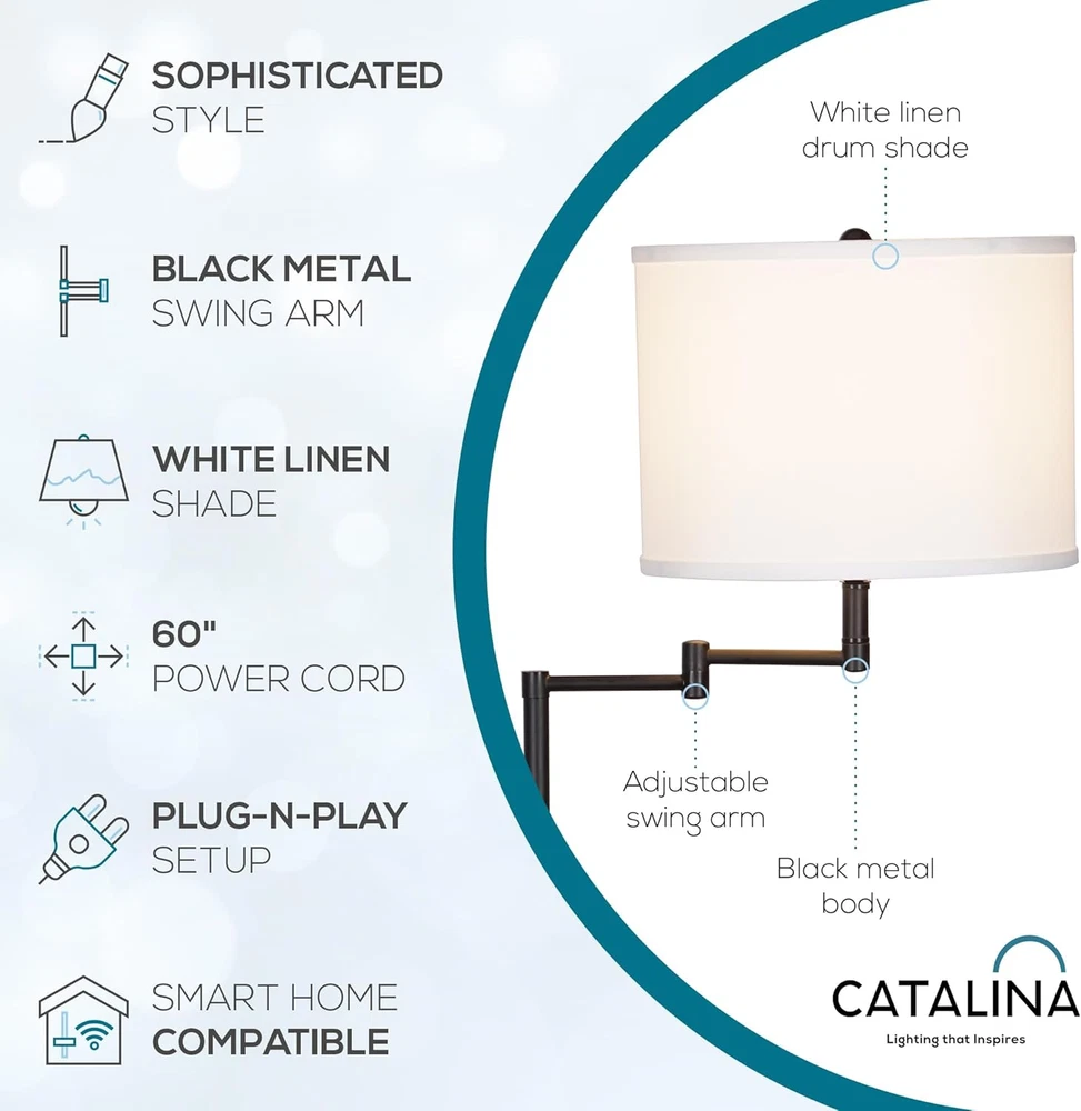 Indoor/Outdoor Usage: Indoor Light Source Type: LED Number of Items: 1 Power Source: Corded Electric Number of Pieces: 1 Included Components: Shade Color: Black Swing Arm Part Number: 24288-000 Shade Material: Linen Installation Type: Freestanding Product Dimensions: 12"D x 12"W x 60"H Specific Uses For Product: [INF] home lighting, living room decor, reading, working, relaxin gtin13: 313107889882 Is Waterproof: False Pattern: Solid Item Package Quantity: 1 Special Feature: Corded Base Material: Metal Lighting Method: LED Number of Light Sources: 1 UPC: 313107889882 Brand: Does not apply Type: Does not apply Shade Color: White Connectivity Technology: Wi-Fi Lamp Type: Floor Lamp Mounting Type: Floor Mount Switch Type: Rotary On/Off Style: Modern Connectivity Protocol: Wi-Fi Warranty Description: Unknown. Item model number: 24288-000 Water Resistance Level: Not Water Resistant Batteries Required?: No Control Method: App Item Weight: 9.53 pounds Recommended Uses For Product: Reading Room Type: Living Room Special Features: Corded Material: Metal Wattage: 100 watts