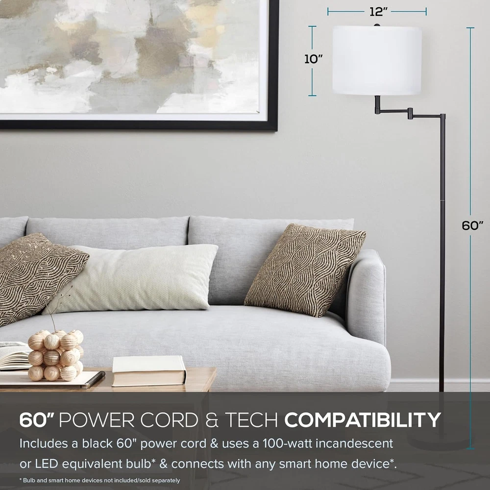 24288-000 Traditional Swing Arm Floor Lamp for Office, Living Room, Dorm or Bedr