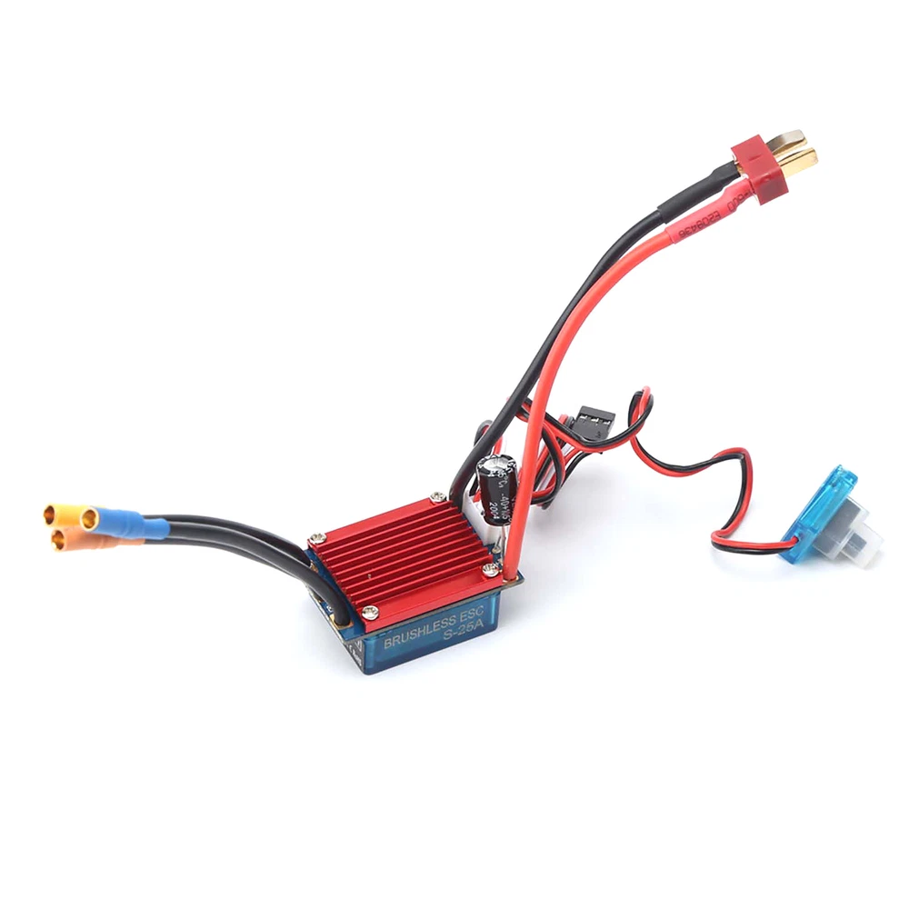 The set includes a 2430 7200KV 4P Brushless Motor and a 25A brushless Electric Controller(), which is perfect for the 1/16 1/18 auto car on road. This 2430 Brushless Motor is built from the materials available, and is designed to provide both quality and performance at an affordable price. And it's with alloy parts that are produced on the latest milling machines. Additionally, the 25A brushless features enhanced throttle response, acceleration, strong breaks and throttle linearity. Motor Features: 4 poles Hi-torque motor design. machined 6061 billet alumium heatsink can. High purity windings maximizes efficiency. High RPM ABEC5 oversized bearings. Universal fits 1/16 1/18 brushless -multi-mounting system for M2.5 screws. balanced rotor, smoothness for best reliability and maximum RPM. Stator - Thin (0.35mm) laminations. Removable/replaceable. engineered for maximum energy conversion. Specification: RPM: 7200KV Current: 24A Watts: 200W Can Size: 2430 Sensored: No Can Diameter: 24mm Can Length: 30mm Shaft Diameter: 2mm Shaft Length: 12mm Connector: 3.5mm Weight: 45.5g/1.6oz voltage: 7.4V(2S) Note: there's some little error from human measuring. Electric Controller Features: Compatible with sensorless brushless motors. High -interference capability. Using software interface to set or update the software. smooth and accurate throttle linearity. response to throttle input. Mutiple features: low voltage cut-off , over-heat and throttle signal loss . Specifications: Cont. Current: 25A Burst Current: 90A/10sec : 2 Cell Lipo / 4-6 Cell NiMh BEC: Yes BEC Output: 5V/1A Plugs: T Male Motor Plugs: Female 3.5mm Connector Size: 40*27*15mm Weight: 29g /1oz Package size: 10 * 8 * 6.5cm/ 3.9 * 3.1 * 2.5in Package weight: 105g/3.7 Package list: 1 * 2430 7200KV 4P Sensorless Brushless Motor 1 * 25A Brushless Electric Controller