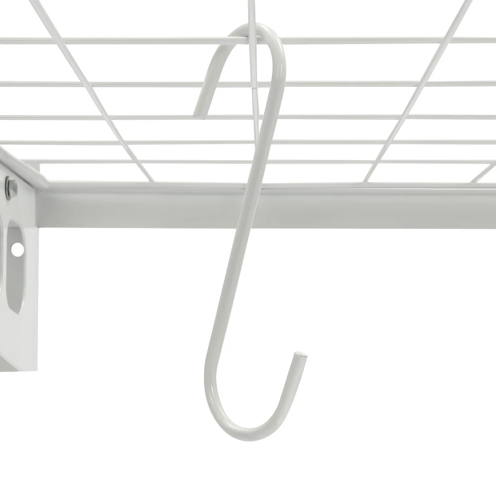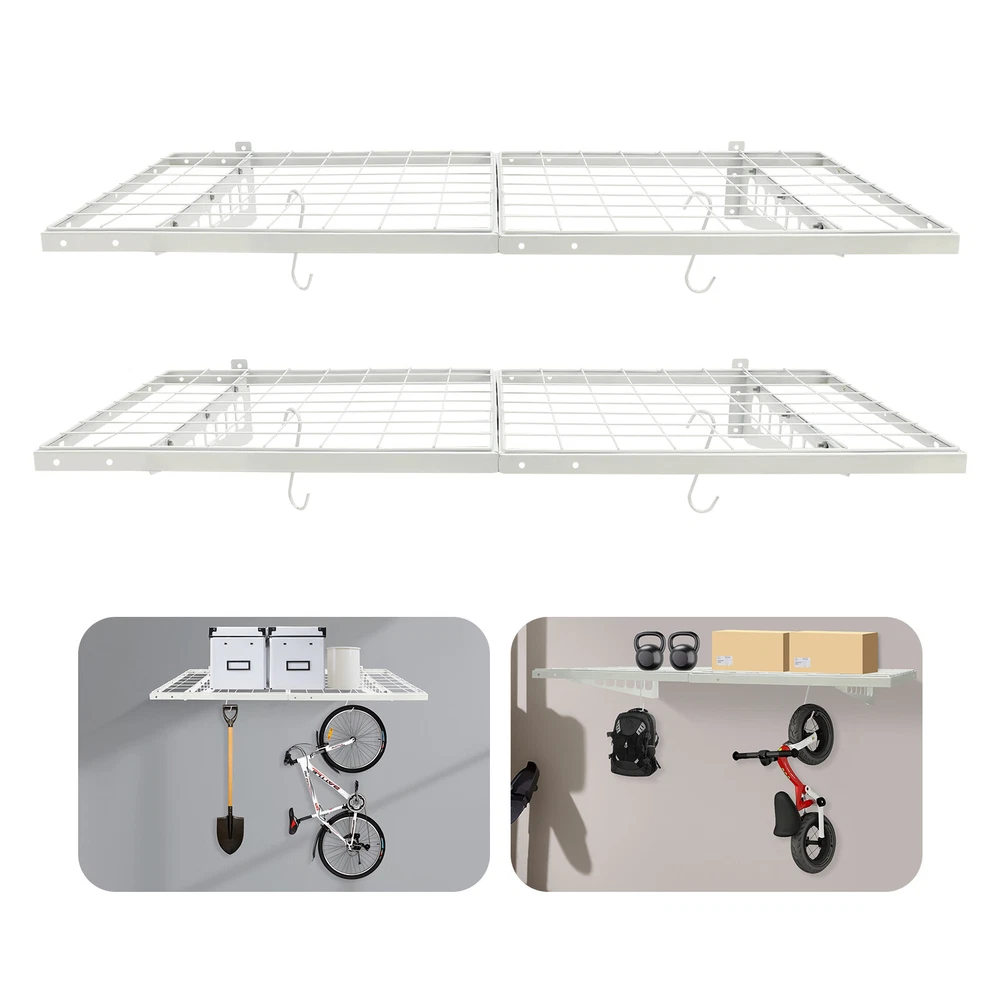 Description Made of steel wire, the garage storage rack has triangular brackets and zip ties design so it can withstand heavy loads. It comes with four hooks to extend your storage space, meeting your daily storage needs. Meanwhile, the neat grid and sleek white finish add a touch of stylish yet vintage look to it. Key Features Build to Last: The product is made of steel wire, after the plastic spraying process, with high strength, corrosion resistance, abrasion resistance, and long service life. 24*48 inch Wall Shelf Garage Storage Rack 2 PACKS Garage Shelving W/ 4 Hooks Description Made of steel wire, the garage storage rack has triangular brackets and zip ties design so it can withstand heavy loads. It comes with four hooks to extend your storage space, meeting your daily storage needs. Meanwhile, the neat grid and sleek white finish add a touch of stylish yet vintage look to it. Key Features Build to Last: The product is made of steel wire, after the plastic spraying process, with high strength, corrosion resistance, abrasion resistance , and long service life. High Load-bearing Capacity: The high-quality material, sturdy triangular brackets, welding process, and zip ties allow it to withstand up to 440 lbs without falling, giving you a piece of mind. And each hook can withstand up to 33lbs. Set of 2: The package includes two-piece garage storage racks with 4 hooks , so you can choose different mounting methods, such as parallel mounting, vertical mounting, and separated mounting, which can fully meet your daily storage needs. Large Storage Capacity: The wall-mounted storage rack is 48*24.4*5.9in and the removable storage hooks can be moved to any position, holding toolboxes, sports equipment, gardening tools, and more equipment, flexible to meet your actual storage needs, and saving space in the garage. Stylish Appearance: The sleek white finish and the neat vintage grid appearance make it a nice garage decor. At the same time, toolkits and clutter are arranged in a neat and orderly manner, which is more pleasing to the eye. Effortless Assembly: Complete installation accessories, a simple structure, and pre-drilled holes allow you to complete the assembly in a very short time. Adjustable Spacing Design: The spacing between the two triangular brackets can be adjusted from 12 to 24in according to your installation needs. Guaranteed Customer Service: We stand behind all our guests and look forward to assisting you with your purchase. It is our pleasure to answer your confusion and questions. The end of the story between us is not "we sell and you buy". Net Boards: They are not just strong and durable but also boast good ventilation, keeping your items dry and allowing the odor to dissipate in a timely manner. Small Holes: The product has several small holes for installing and hanging the hooks, which is more convenient to use. Thickened Frame: It securely fastens the wire grid to the edges to prevent them from falling off, keeping the product stable and firm. Application It's suitable for hanging or storing tools, storage boxes, sports equipment, and other items. Specifications Material: Steel Wire, Nylon Surface Treatment: Plastic Spraying Color: White Style: Vintage Mount Type: Wall Mounted Load-bearing Capacity: 200kg/440lbs Each Hook Load-bearing Capacity: 15kg/33lbs Assembly Required: Yes Number of Items: 2 Number of Hooks: 4 Gross Weight: 16kg/35lbs Separated Product Size: 122*62*15cm/48*24.4*5.9in Combined Product Size: 244.6*62*15cm/96.3*24.4*5.9in Suitable Spacing: 30.5, 40.6, 46, 61cm/12, 16, 18, 24in(Separated)/30.5, 40.6, 61/12, 16, 24in(Combined) Package Size: 62*62*14cm/24.4*24.4*5.5in Package Included 2* Garage Storage Racks 4* Hooks All Accessories for Installation Notes It is normal that the expansion screw will blow up after the force is applied. Before purchasing, please check the product information carefully to make sure the load bearing of your wall and the installation environment are suitable! Please check the screw hole spacing carefully if it is installed on the studs! Cement walls need to be perforated and thin wood walls or hollow walls need to be supported by a certain thickness of solid wood struts(not included) laid on the front or back of the wall. Please allow the slight color difference caused by the shooting light and 1-3cm error due to manual measurement, and make sure you do not mind before you order. Payment Delivery details Terms of sales About us Contact us Payment We accept ebay payment 。 Fees such as import duties, taxes are not included in the item price or shipping costs. These charges are the buyer's responsibility. Delivery details Shipping: 2-9 working days to: USA Terms of sales We maintain high standards of excellence and strive for hundred percent customer satisfaction. Feedback is very important to us. We hope that you contact us immediately before you give neutral or negative feedback, so that we can address your concerns. It is impossible to address issues if we do not know about them! About us Your satis faction is our ultimate goal. We work hard to earn your trust and future business. Our certified technicians have tested each item before shipping. The unit comes with 1 year limited warranty on all manufacturing defects. a) If you receive a defective item, you may return it or ask for a discount. Please contact us within 14 days after you receive the package. b) What you returned must be intact and in its original packaging as re? u. Customer is responsible for shipping costs of the returned item. c) We will cover the cost of shipping back t with the shipping rate indicated in the registration page. We will send you a new unit or refund the full payment you paid. Thank you. Contact us Business Hour Business Hour: Monday To Friday: 8:30 AM to 5:00 PM (Beijing China time) Due to time zones, our reply to your questions may not be immediately. But within above working time, we will reply your email within 24 hours. If it's non-workda