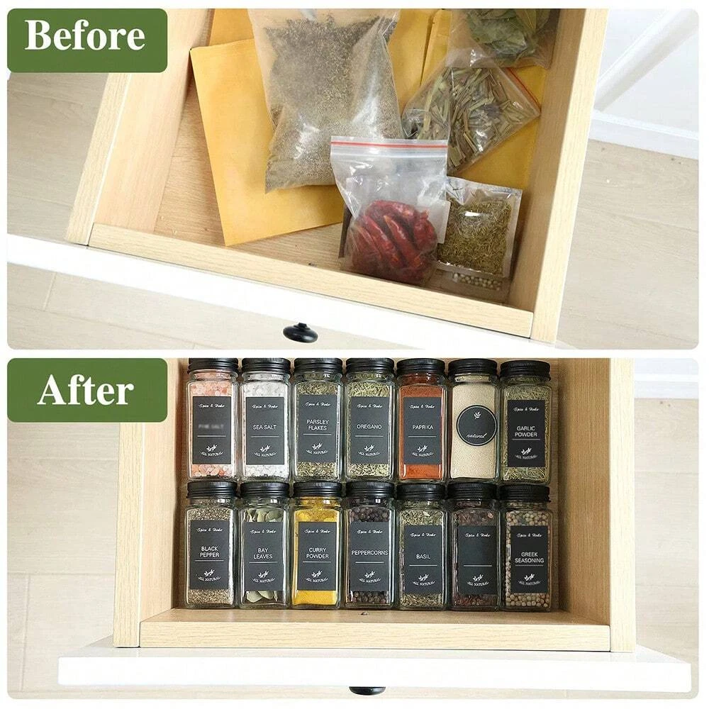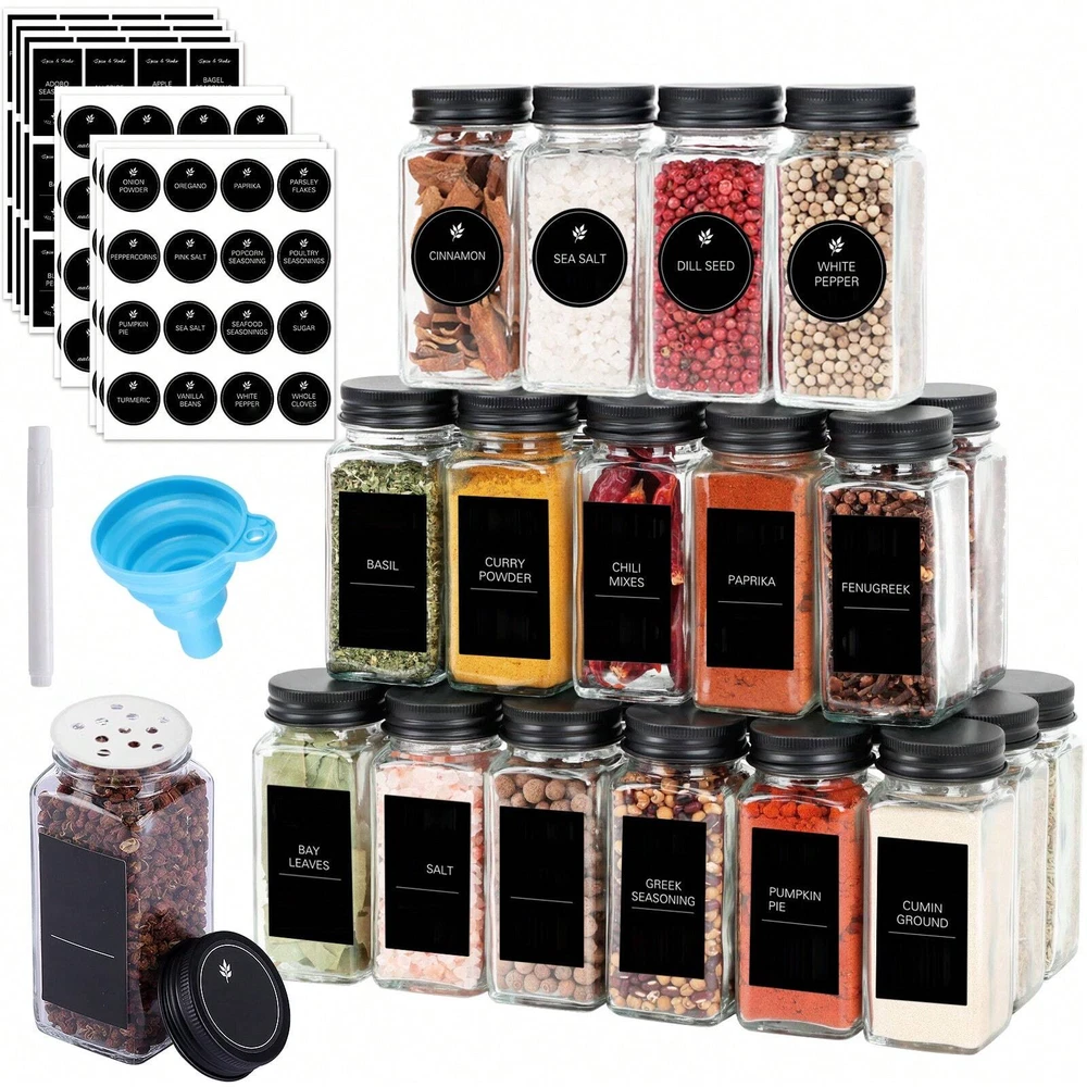 These spice jars are a game-changer for my kitchen! The 4oz size is perfect, the labels keep everything organized, and the shaker lids make seasoning a breeze. The collapsible funnel and brush are handy extras—no more messy spills. Sturdy glass and a sleek look make them great for any spice rack or drawer. Highly recommend!